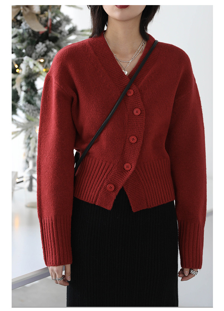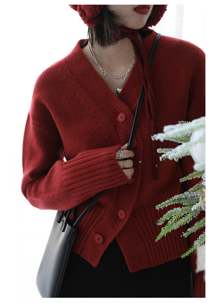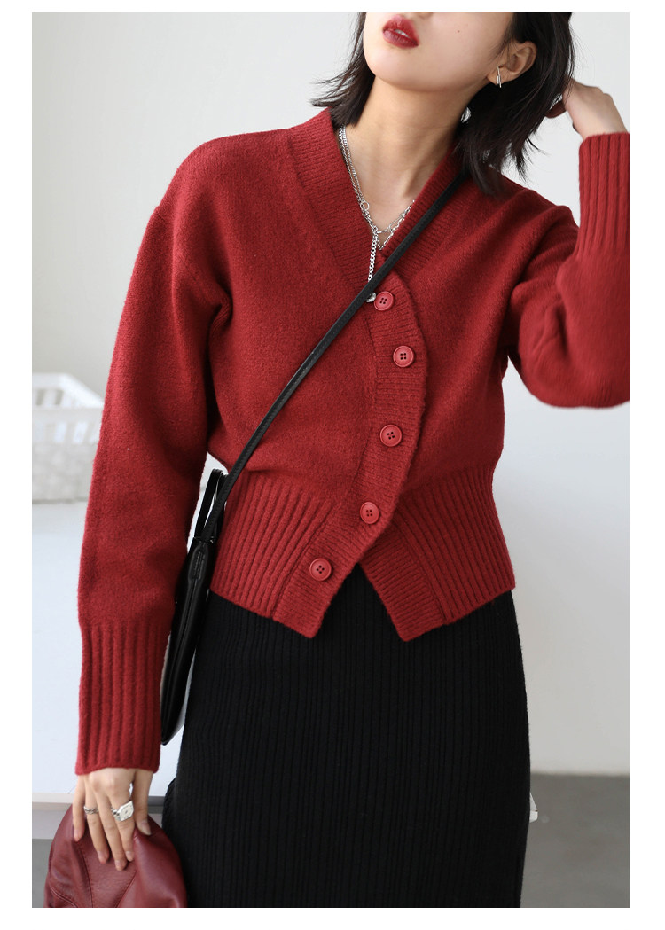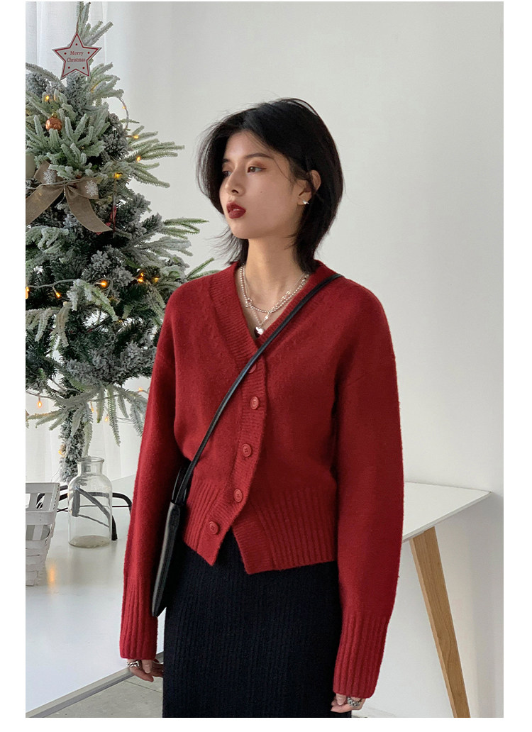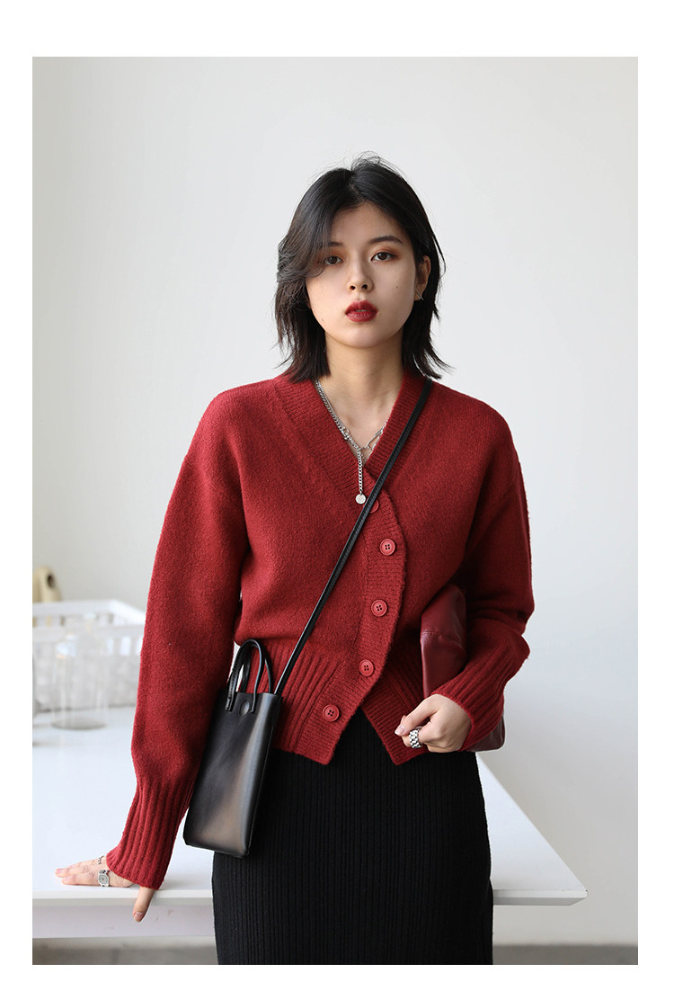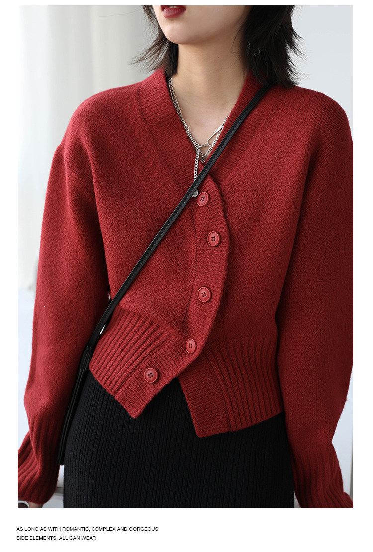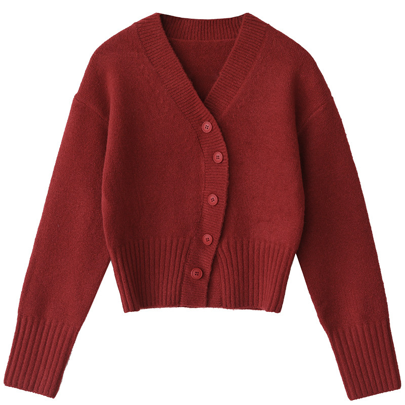 Короткий красный кардиган, весенний свитер, V-образный вырез, коллекция 2022