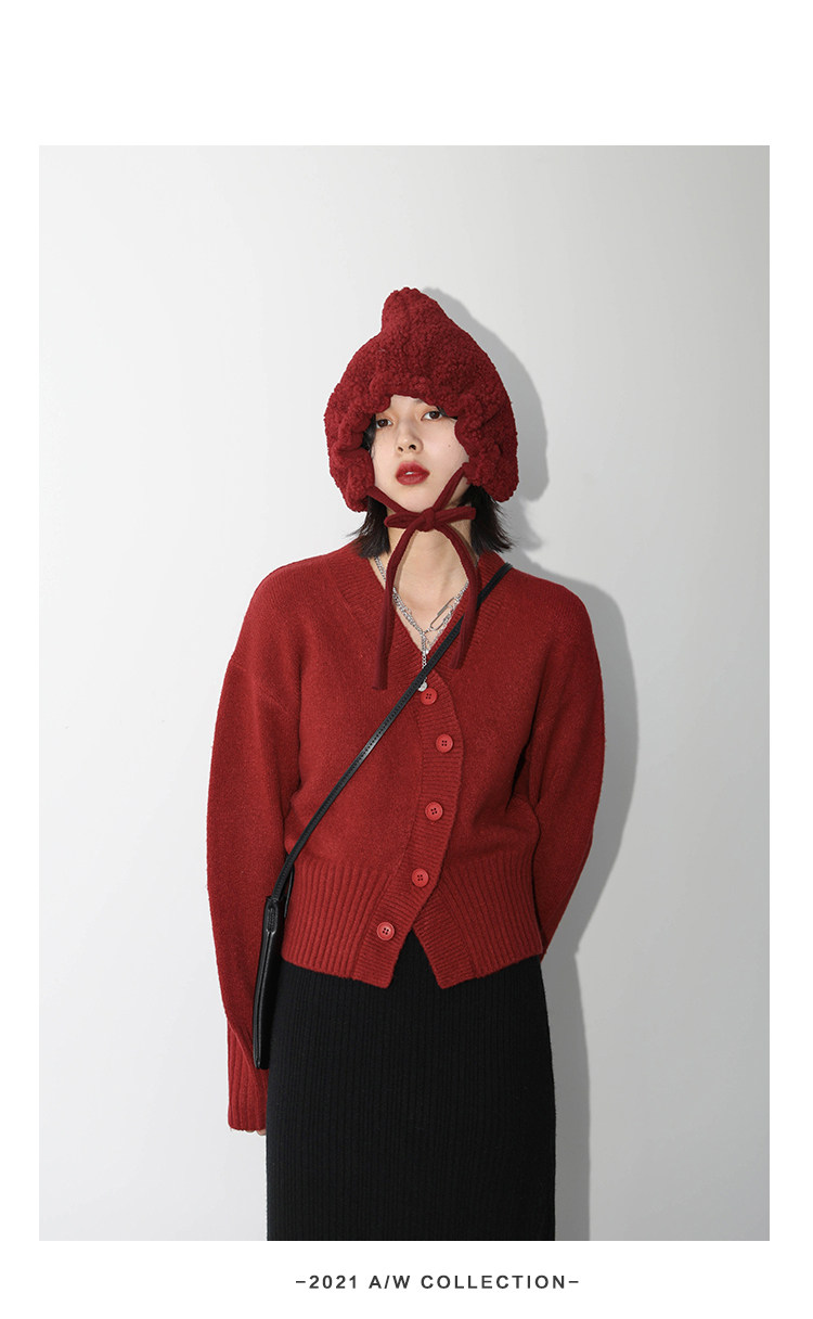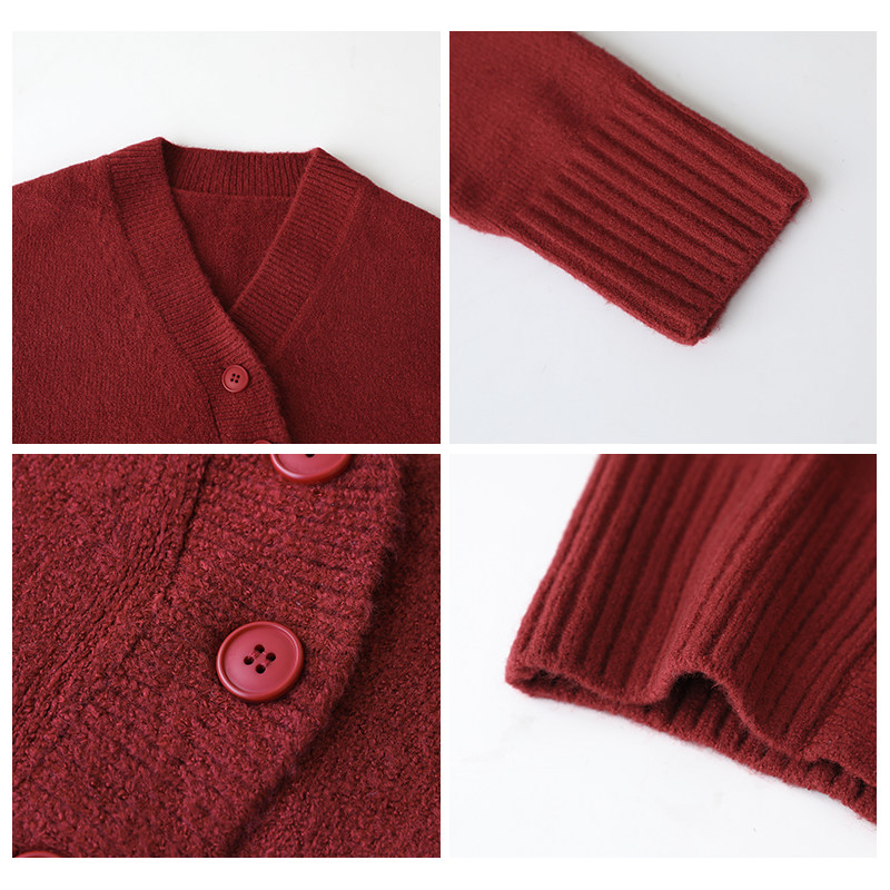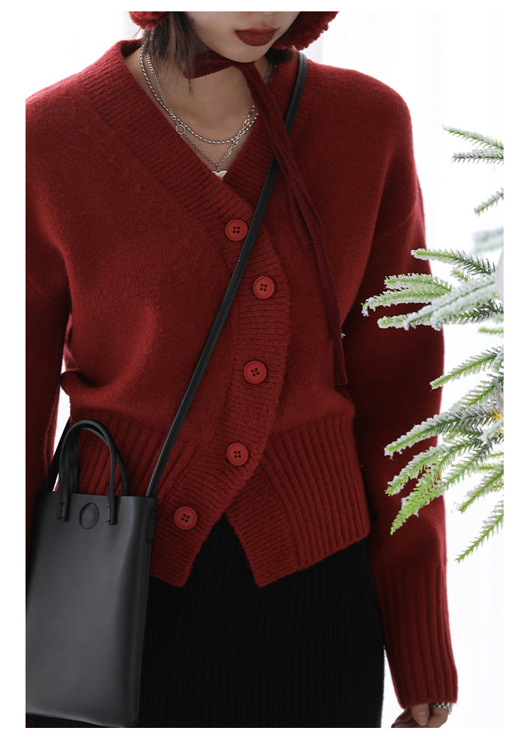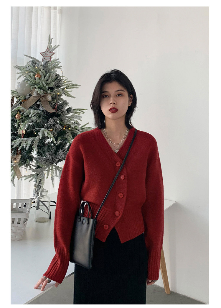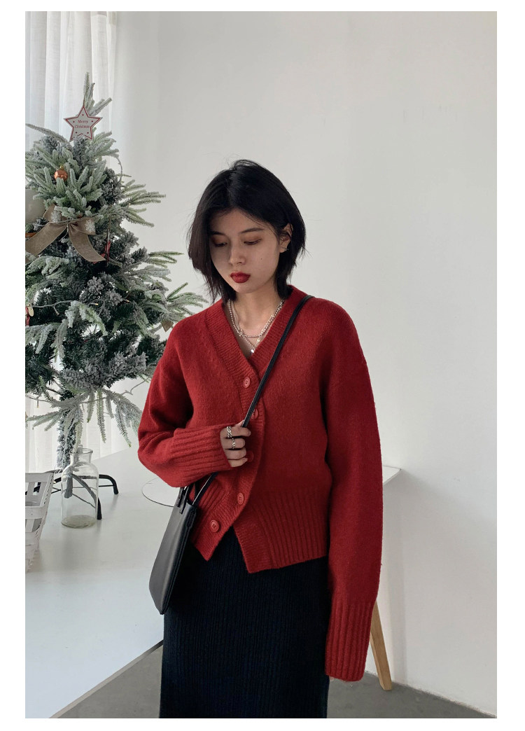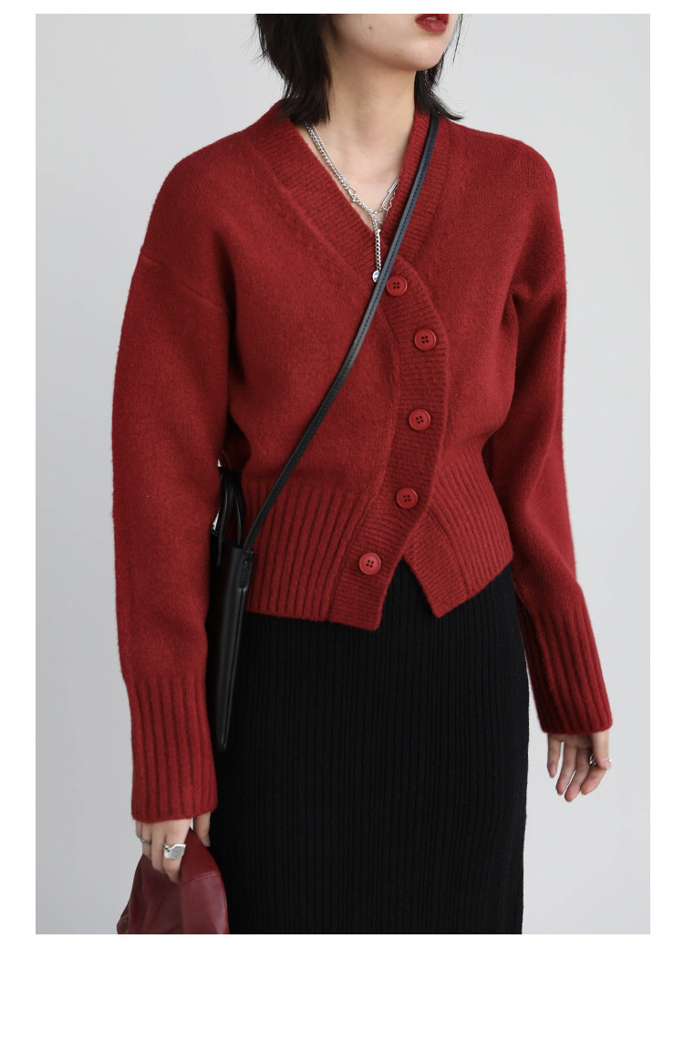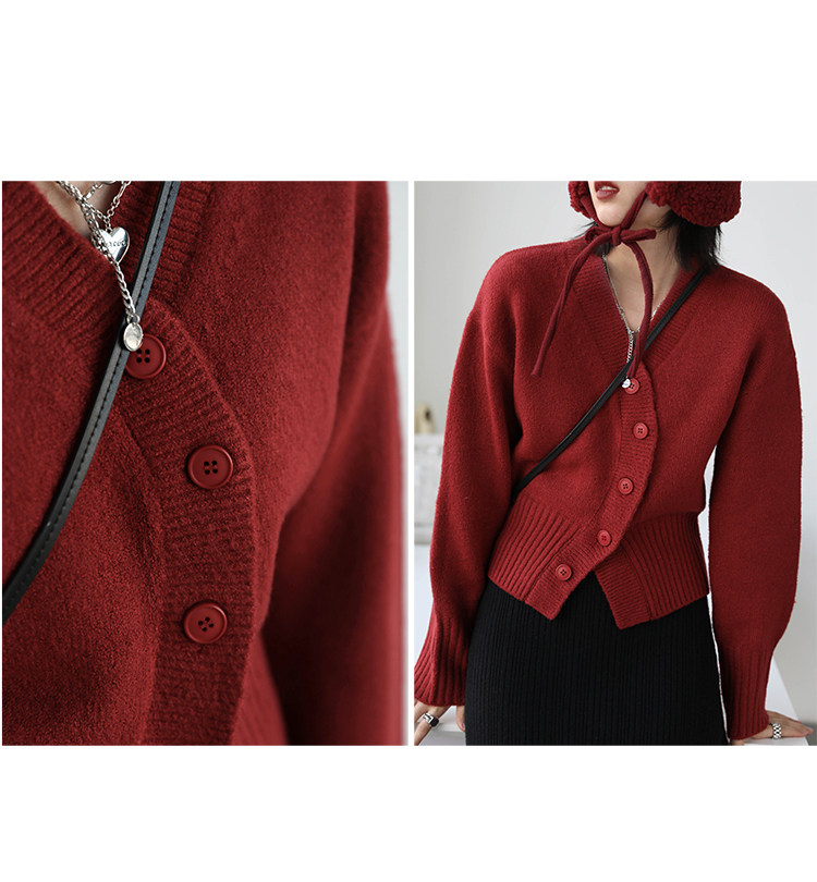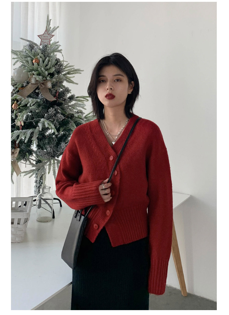 Короткий красный кардиган, весенний свитер, V-образный вырез, коллекция 2022