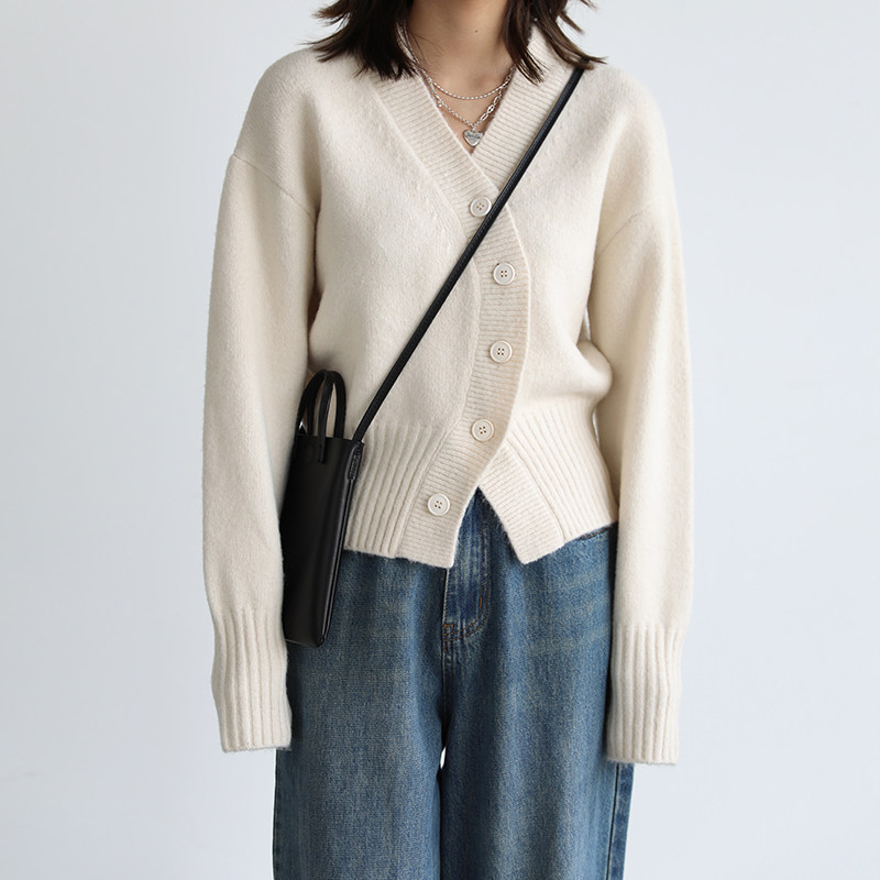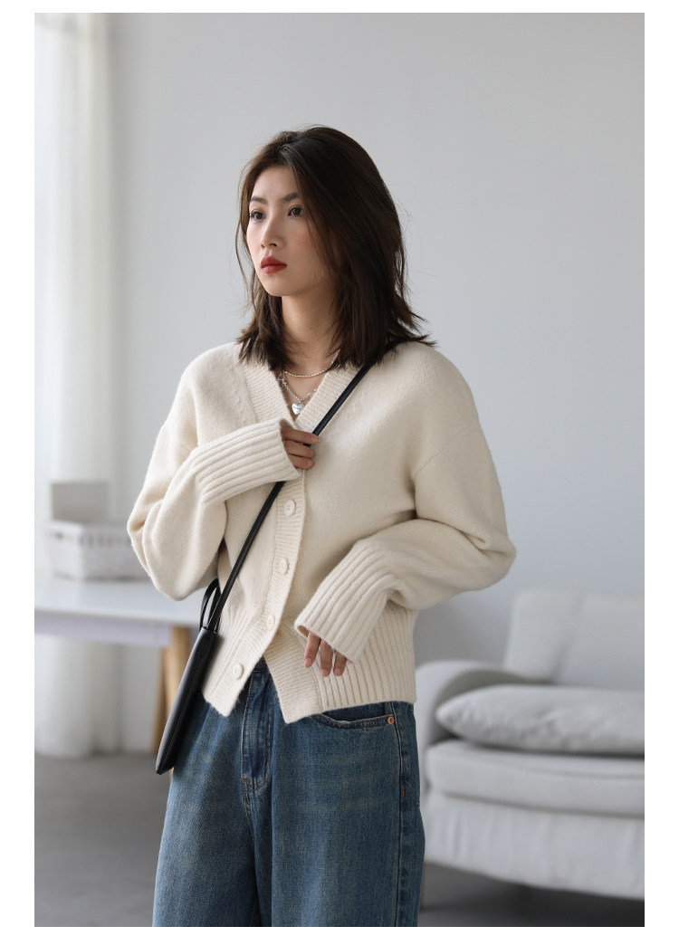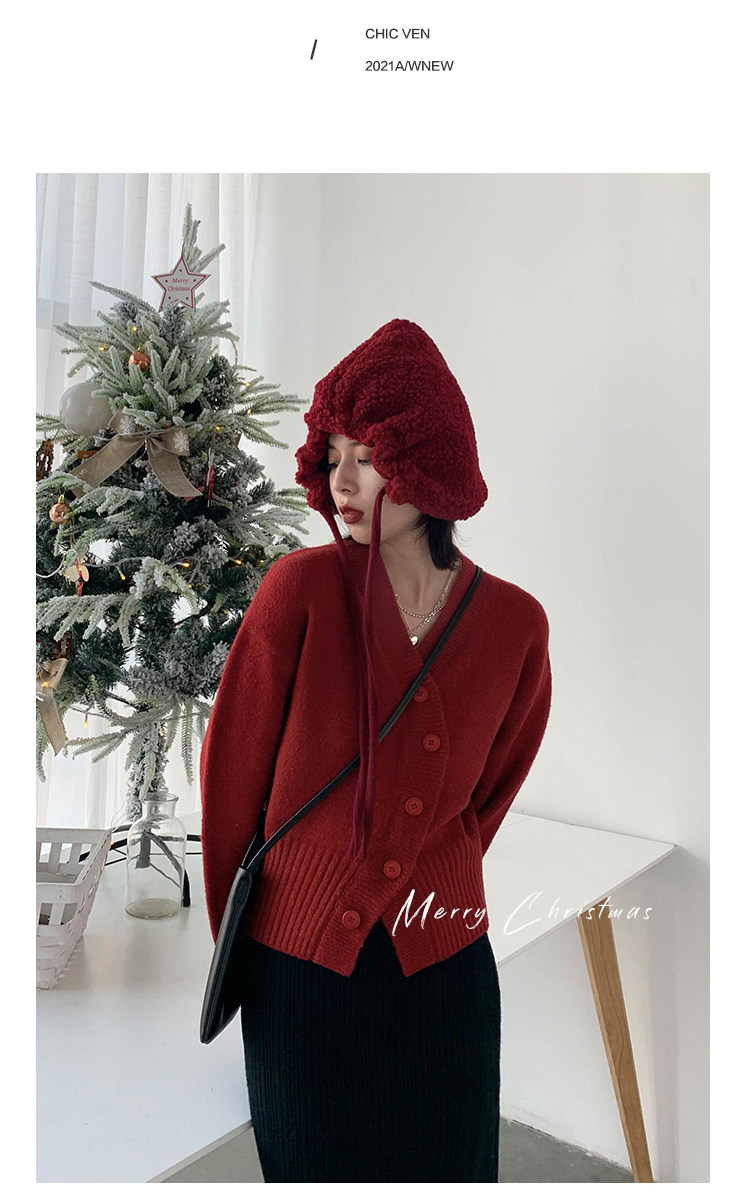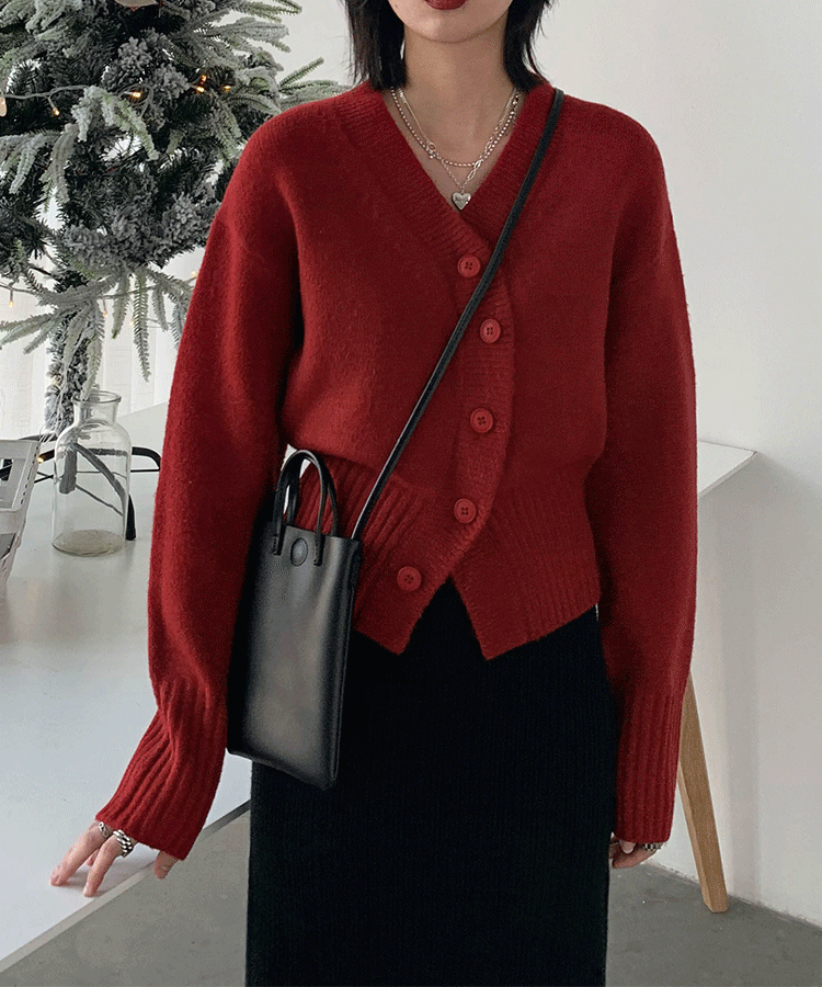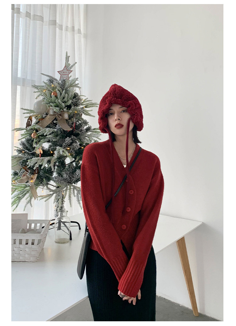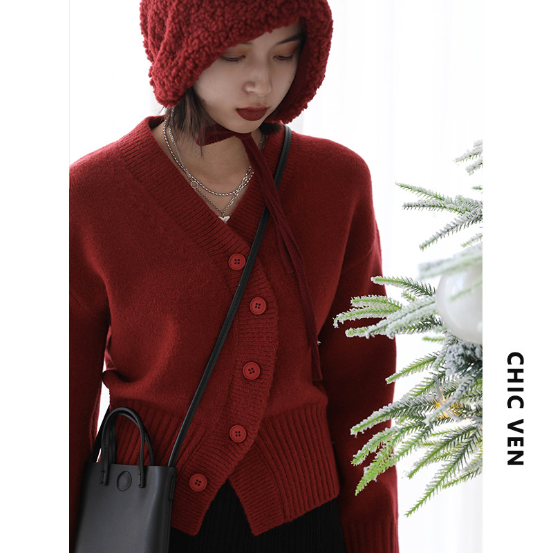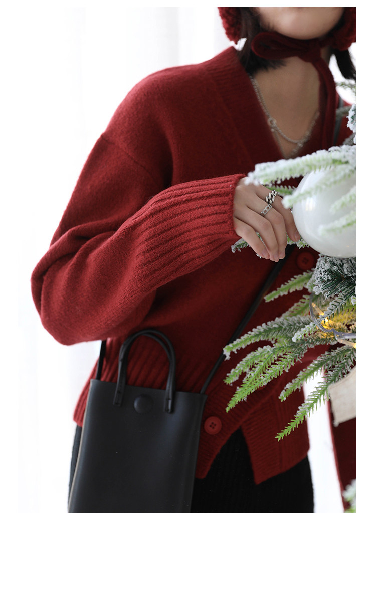 Короткий красный кардиган, весенний свитер, V-образный вырез, коллекция 2022