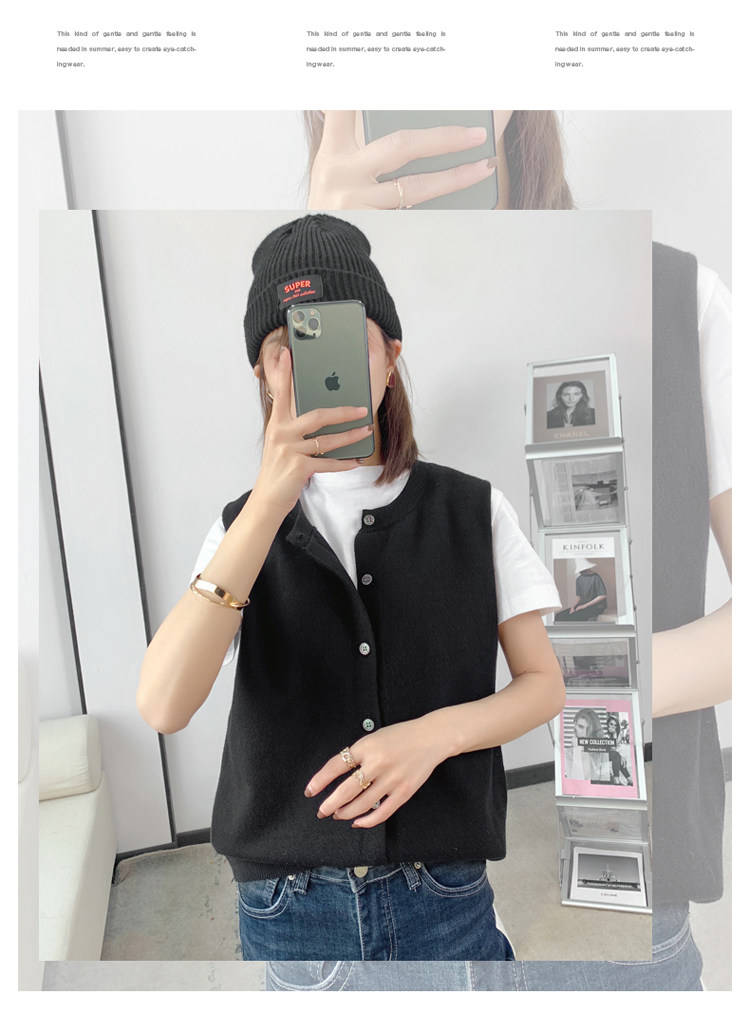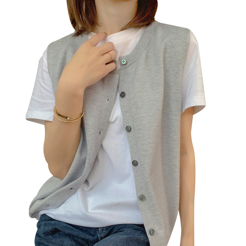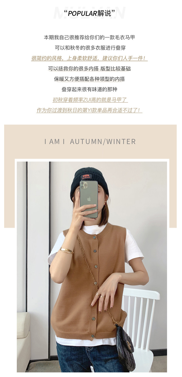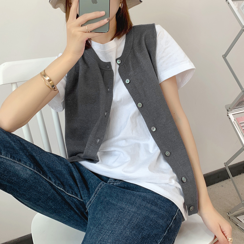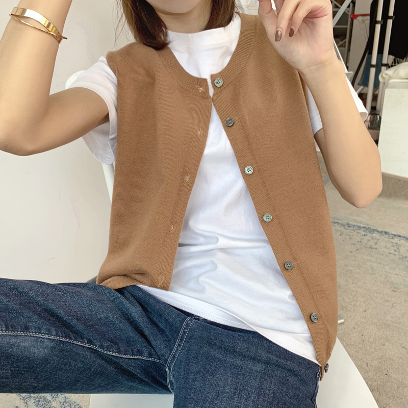 Весенний шерстяной жилет с круглым воротником, трикотажная майка, кардиган, в корейском стиле
