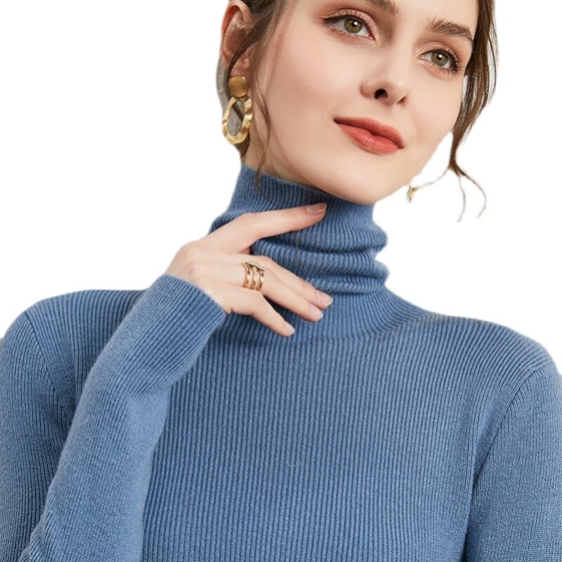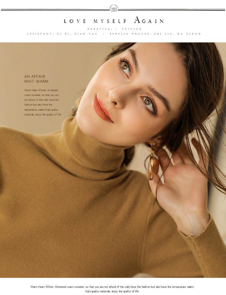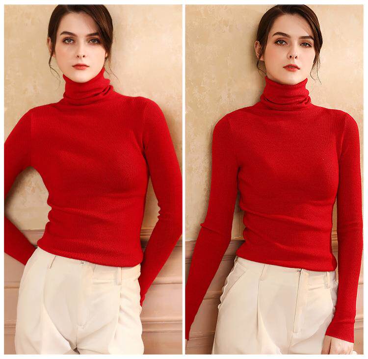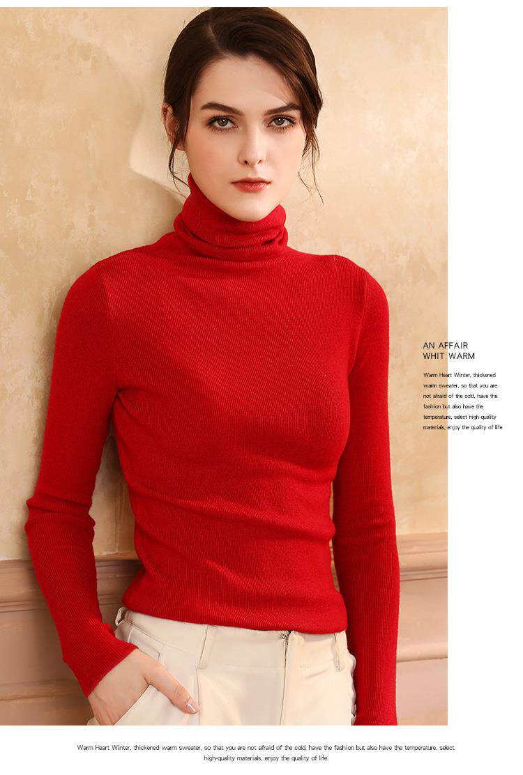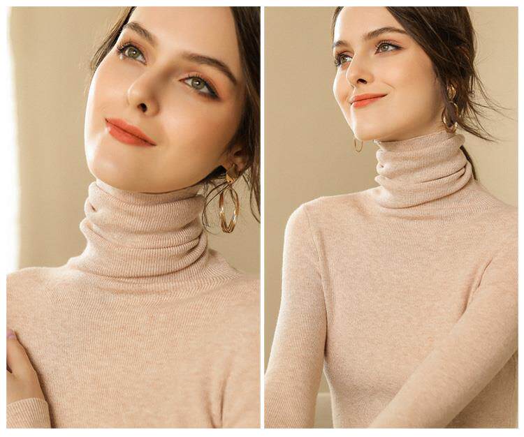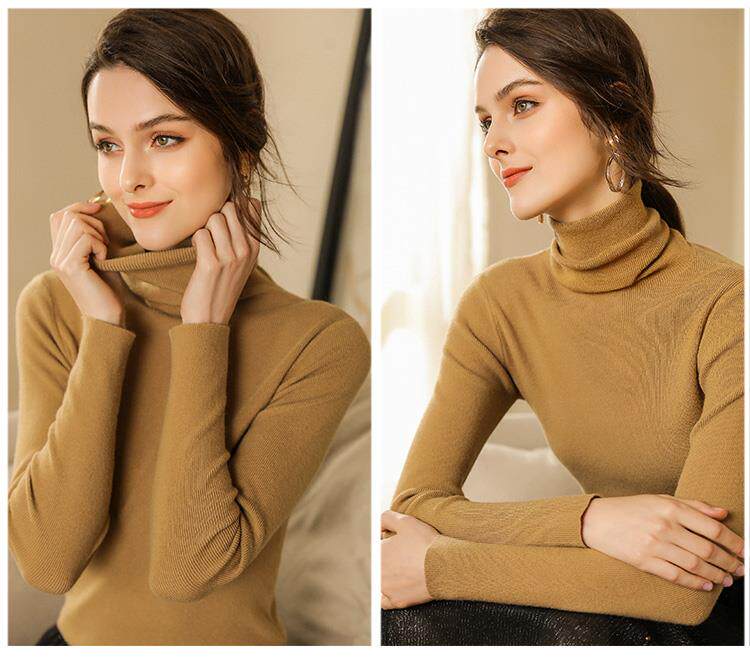 Шерстяной демисезонный базовый приятный телу кашемировый свитер, в западном стиле, в обтяжку, облегающий крой, высокий воротник