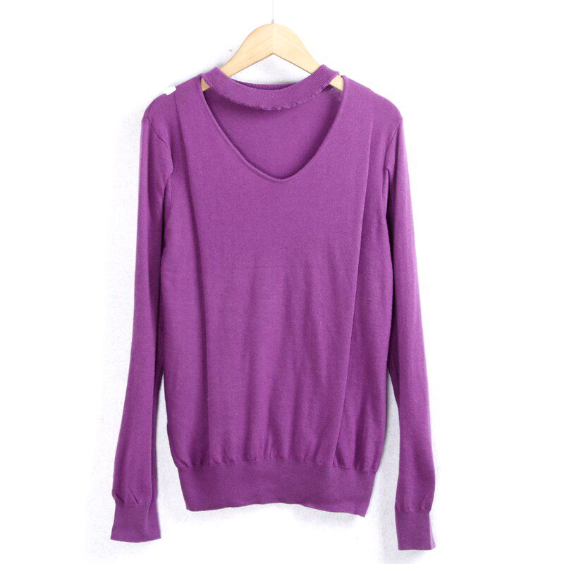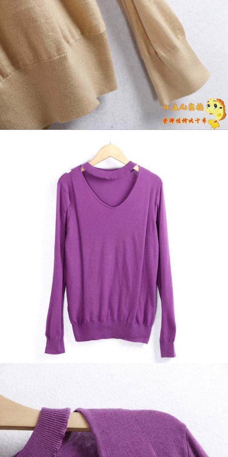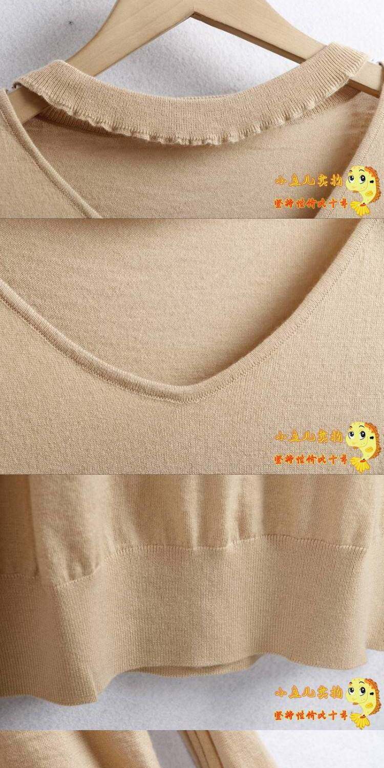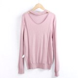 (Трансграничная торговля), трикотажный эластичный однотонный базовый приятный телу свитер, V-образный вырез, большой размер, оверсайз