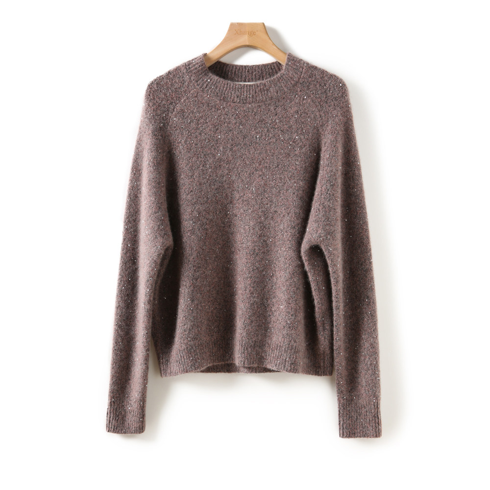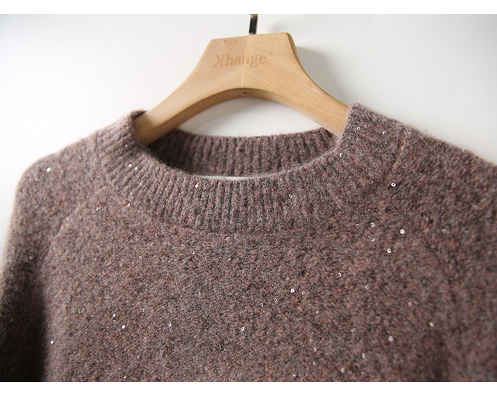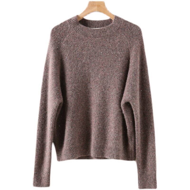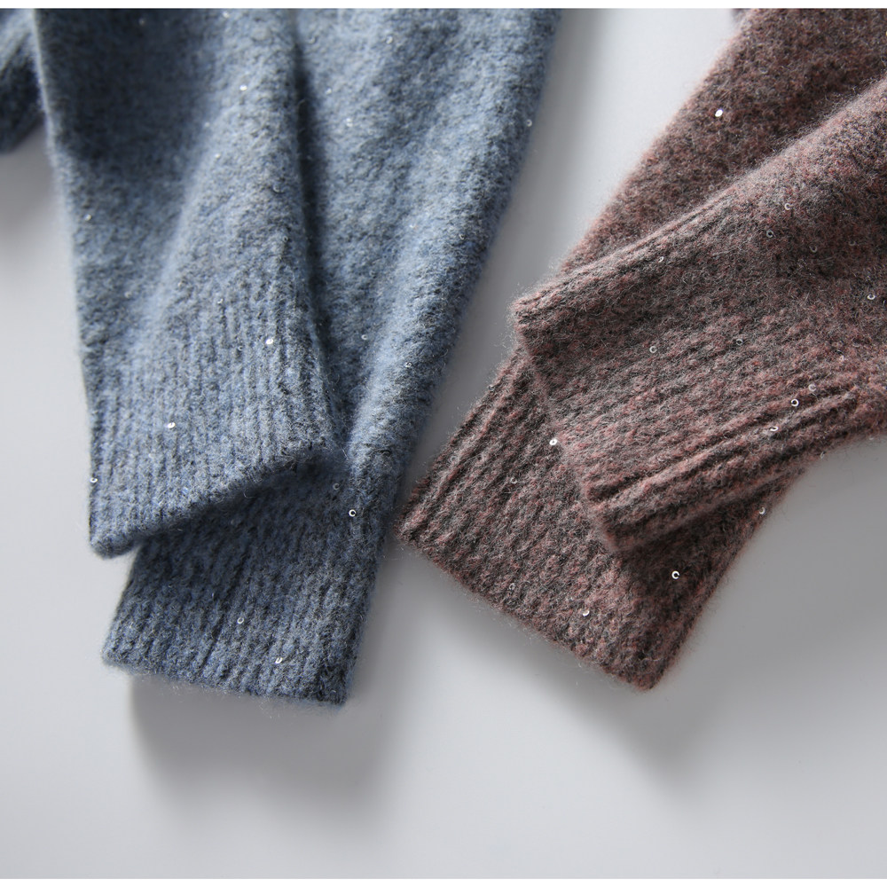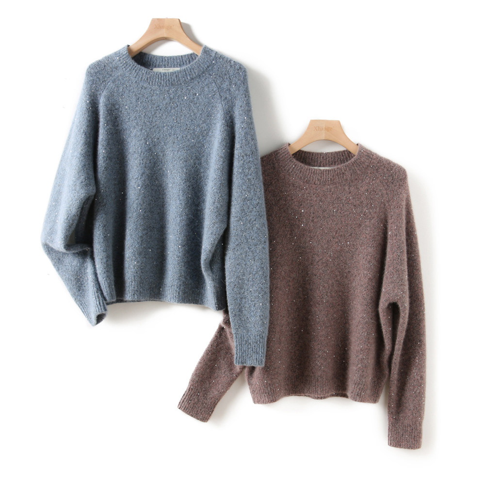 @[ZY258731AG] Павильон Сяхан ленивый, случайный, свободный и яркий, сияющие жемчужные ломтики Q бомбардировщик вязаный свитер