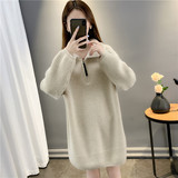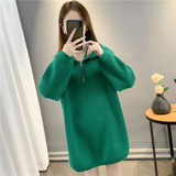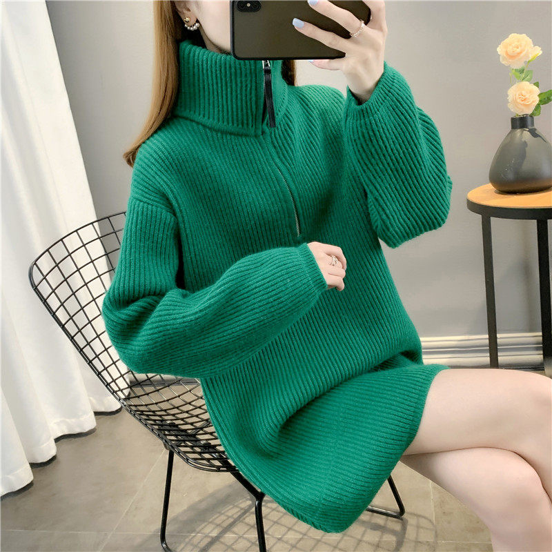 Демисезонный дизайнерский длинный трикотажный свитер с молнией, тренд сезона, средней длины