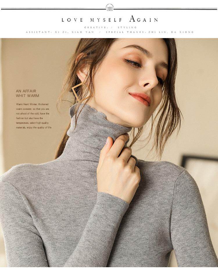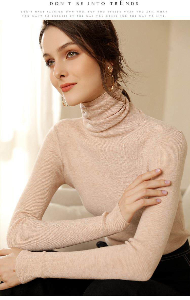 Шерстяной демисезонный базовый приятный телу кашемировый свитер, в западном стиле, в обтяжку, облегающий крой, высокий воротник