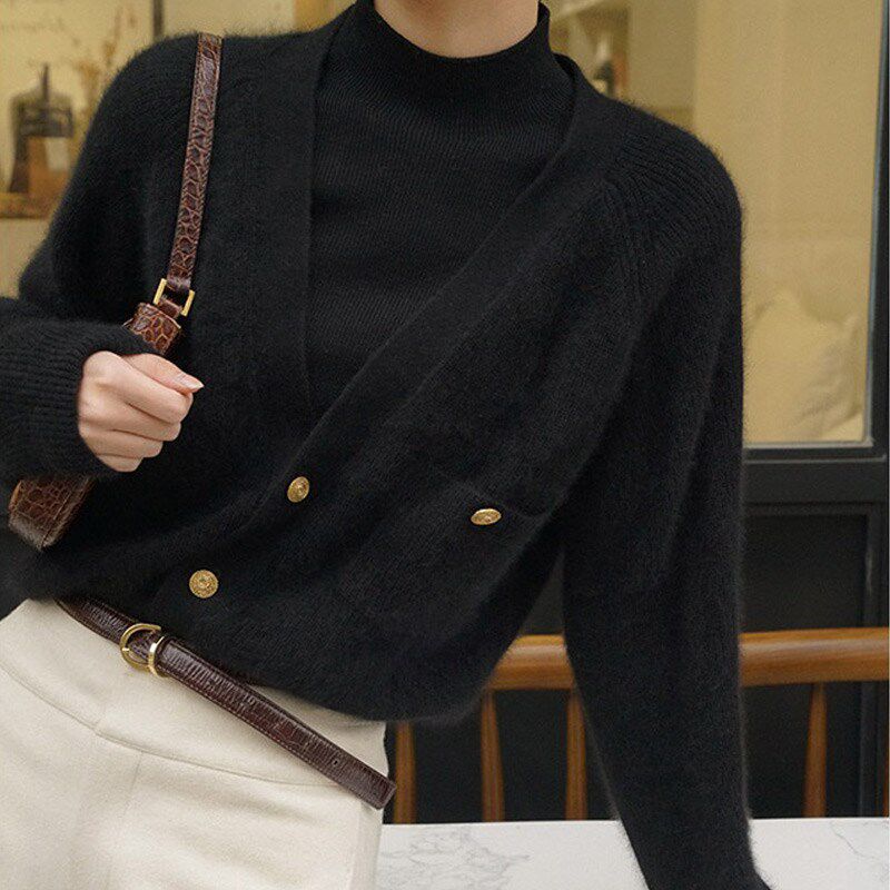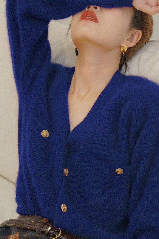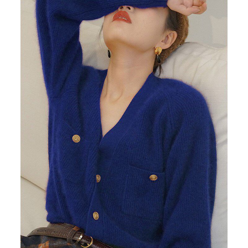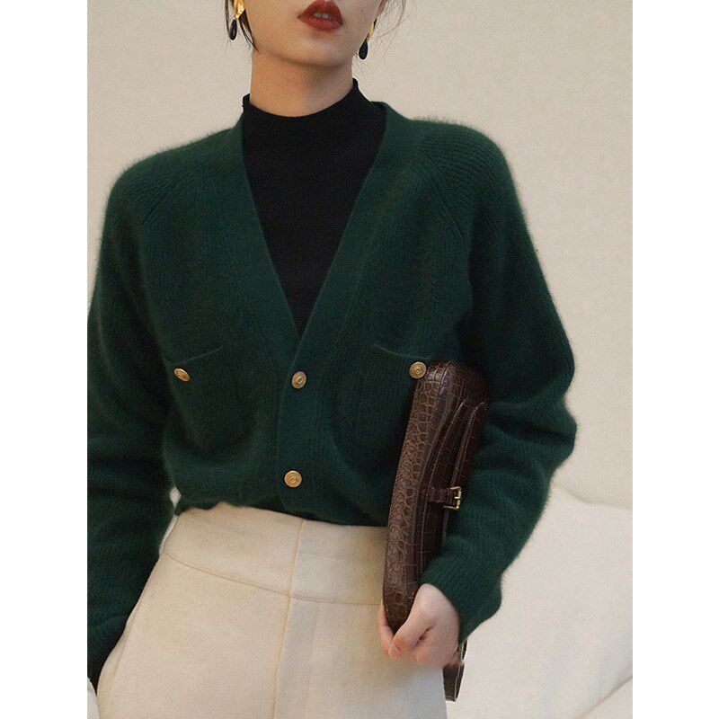 Ретро свитер, модный брендовый кардиган, французский стиль, V-образный вырез