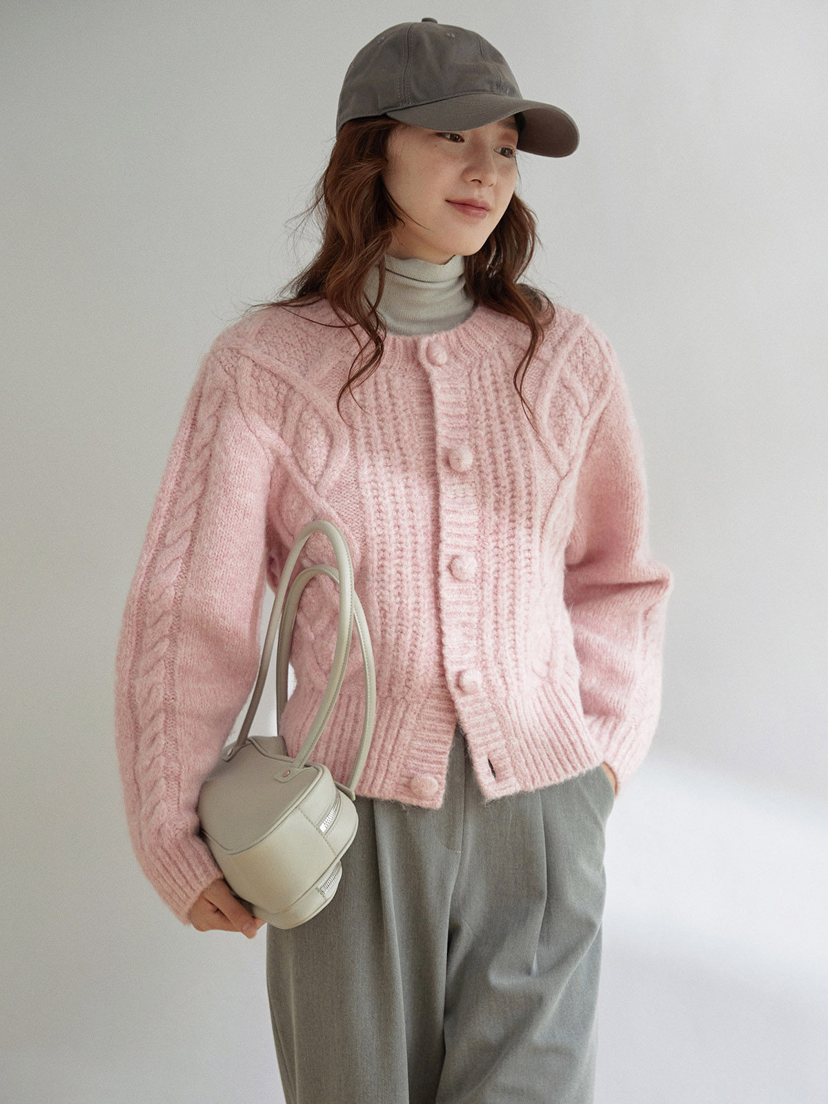 Розовый свитер, куртка, кардиган, ретро дизайнерская утепленный лонгслив с круглым воротником, тренд сезона