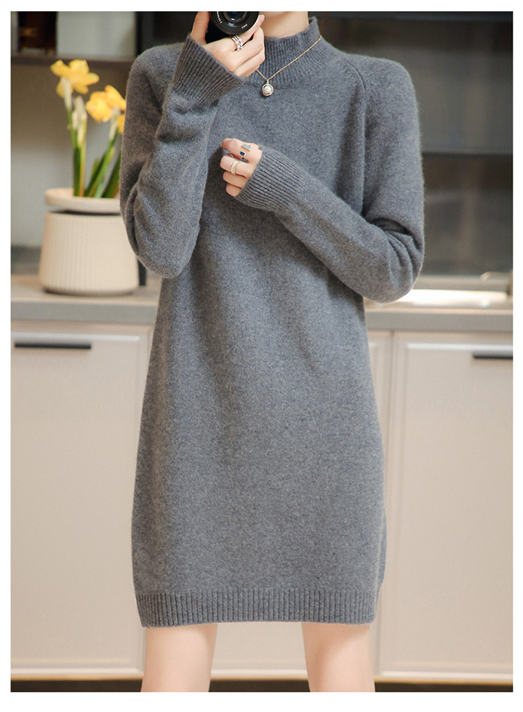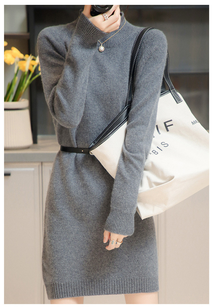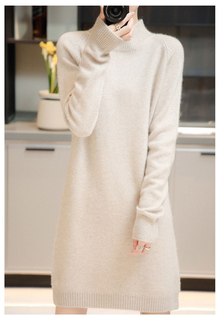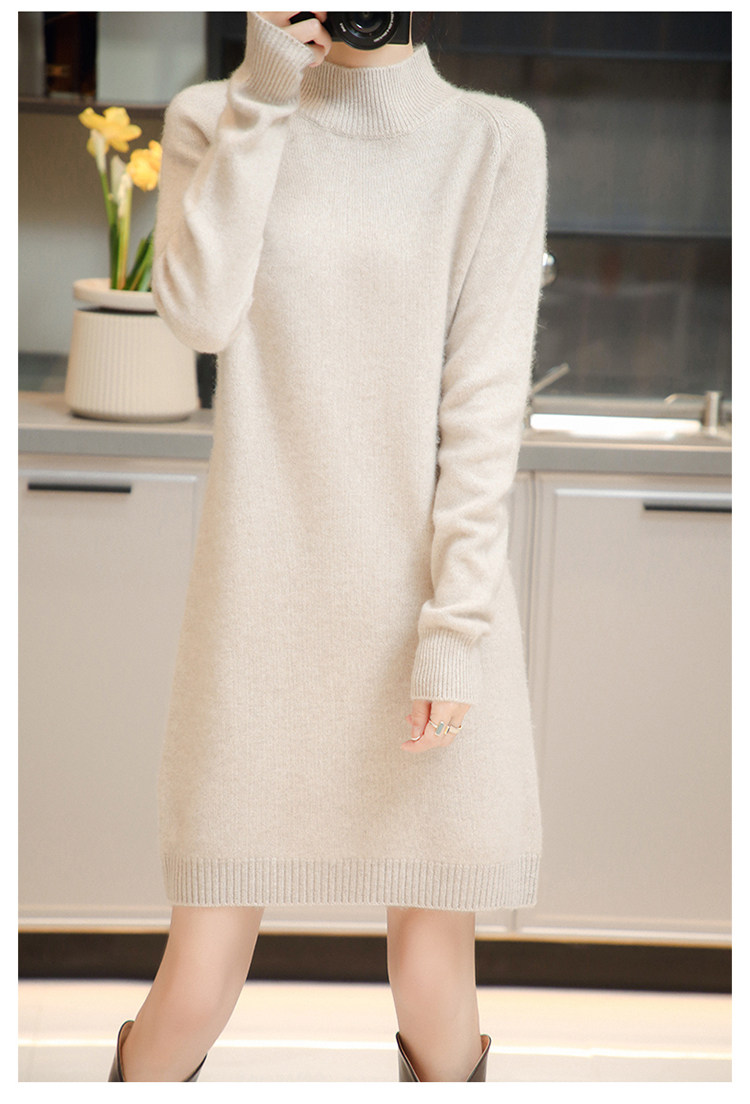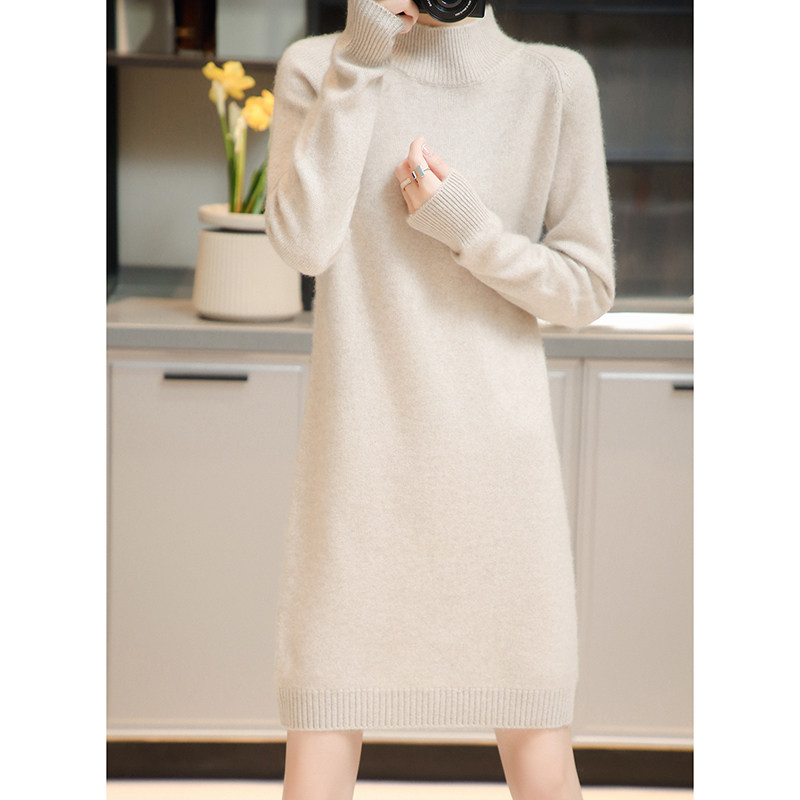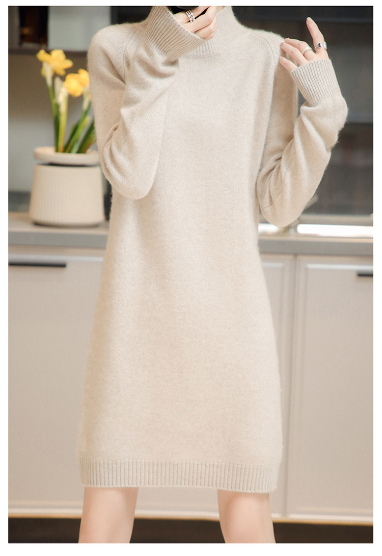 Демисезонное кашемировое трикотажное платье-свитер, высокий воротник, увеличенная толщина, длина миди, размер
