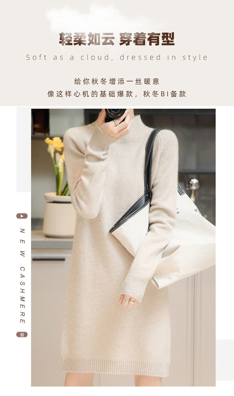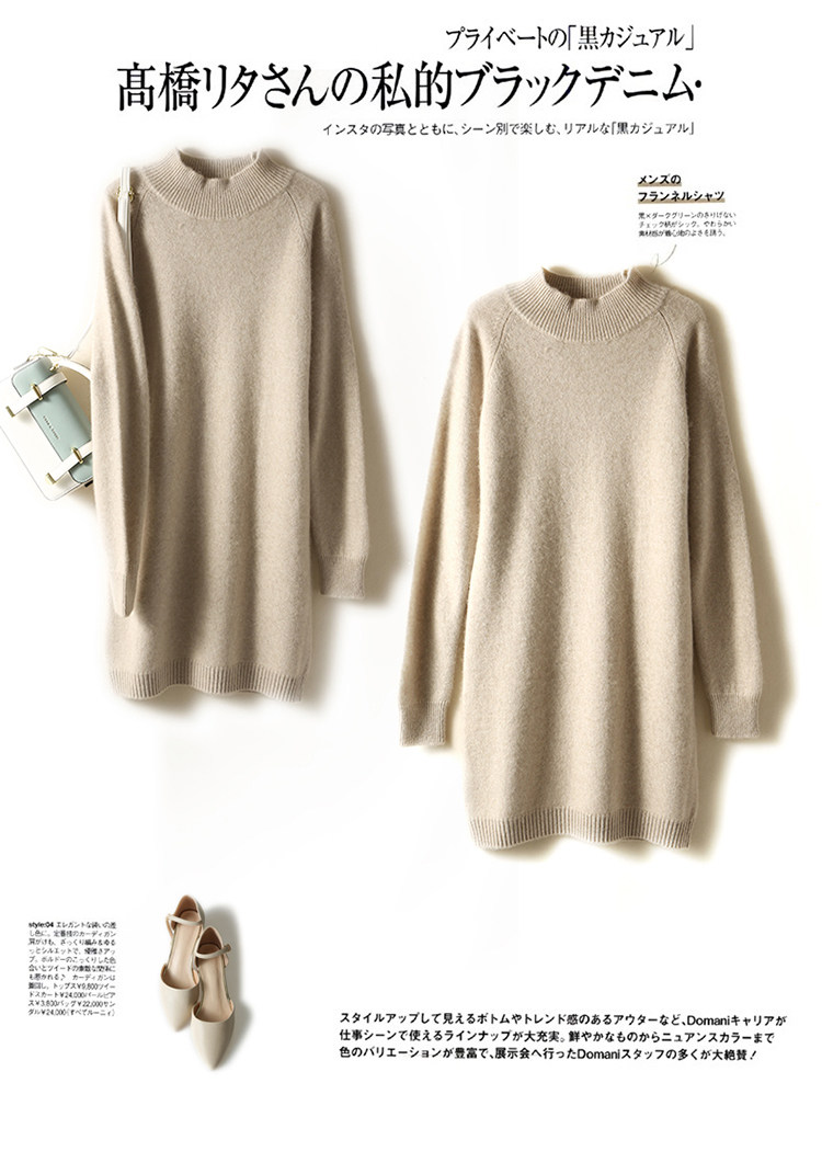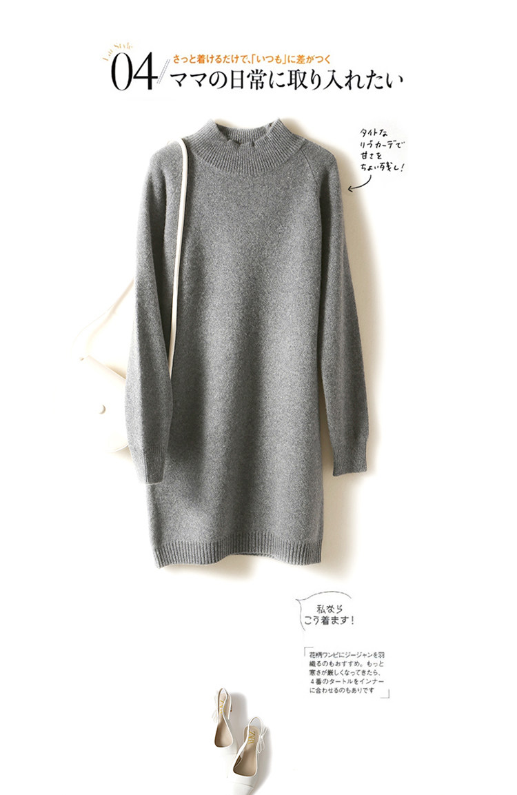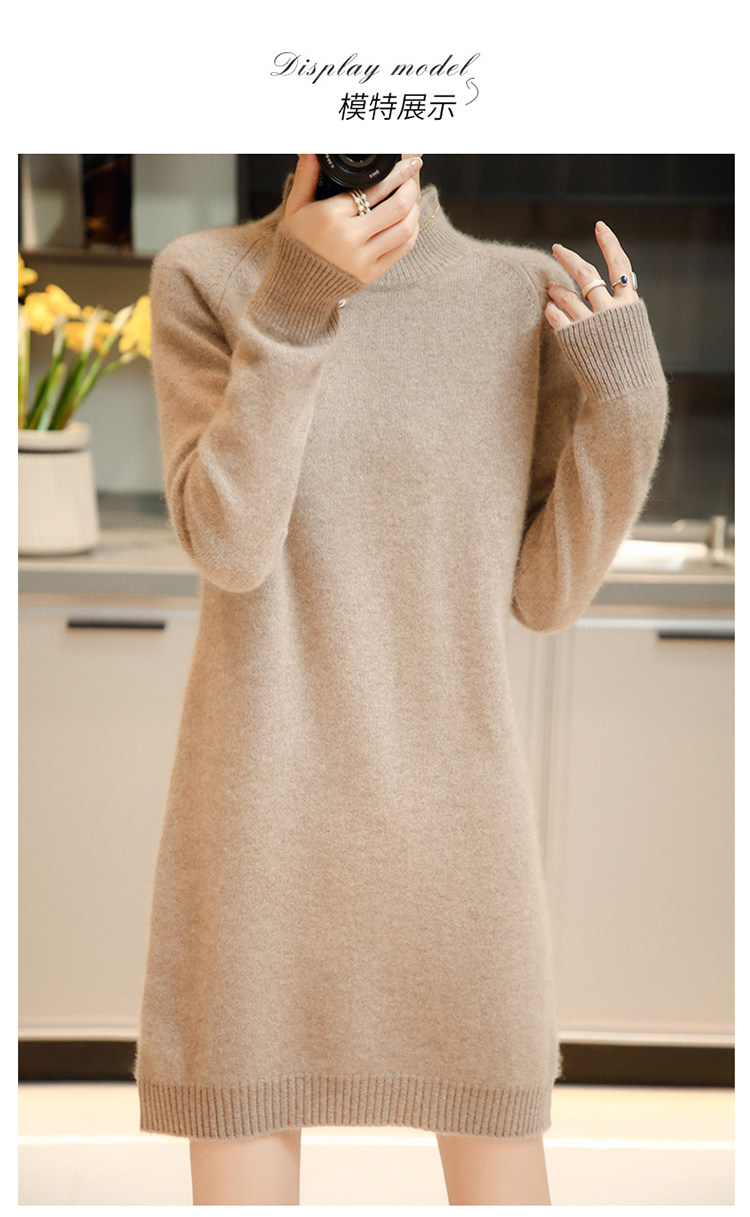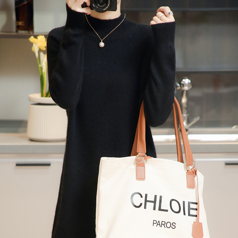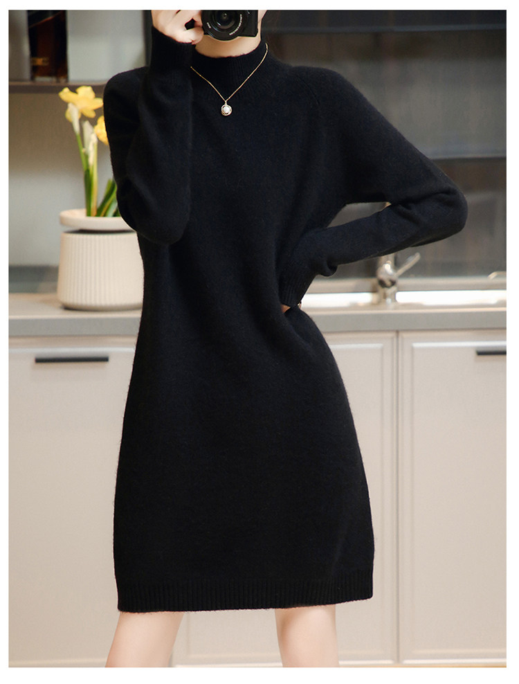 Демисезонное кашемировое трикотажное платье-свитер, высокий воротник, увеличенная толщина, длина миди, размер