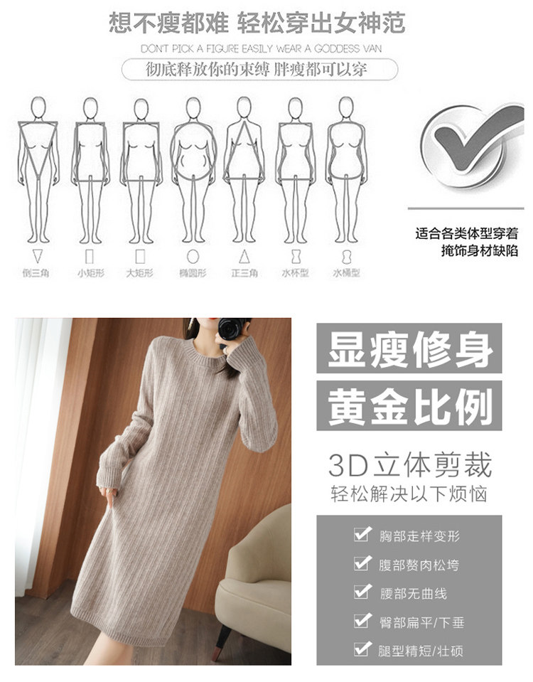 Шерстяной длинный свитер, трикотажное кашемировое платье, средней длины