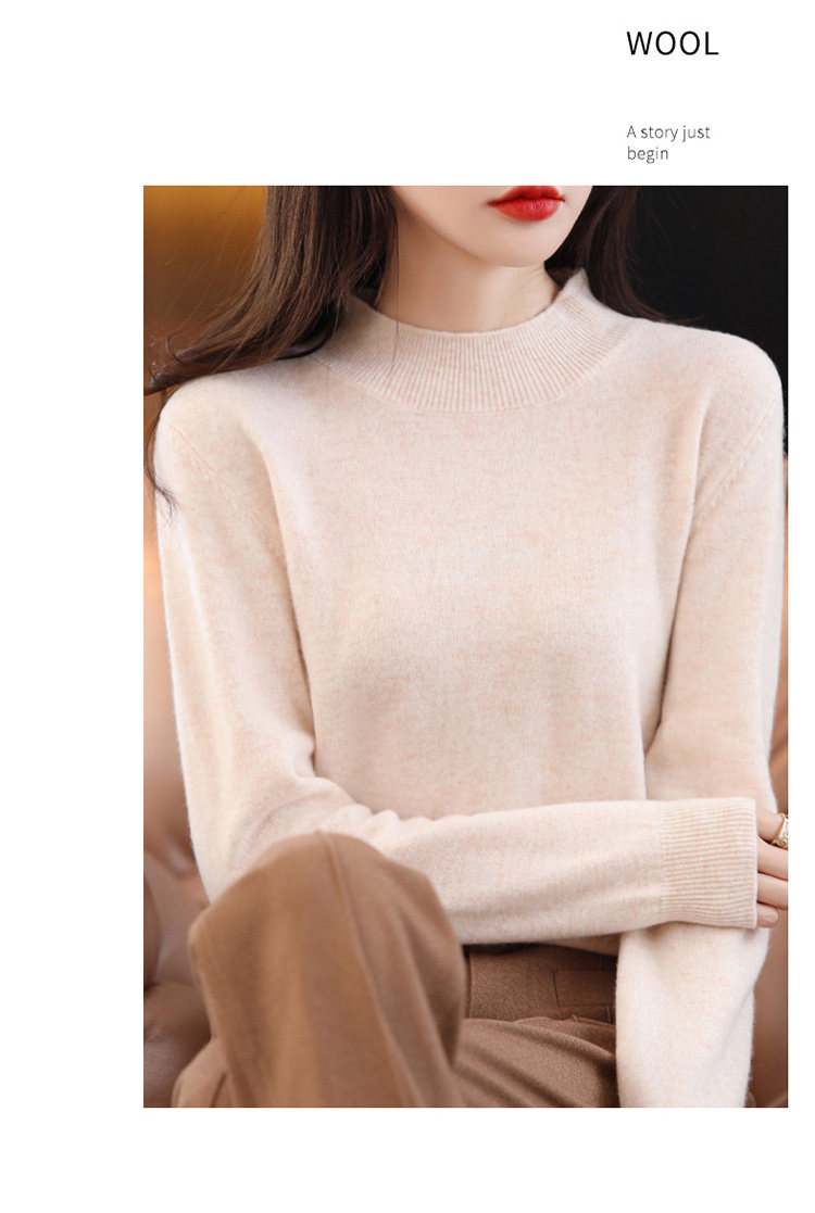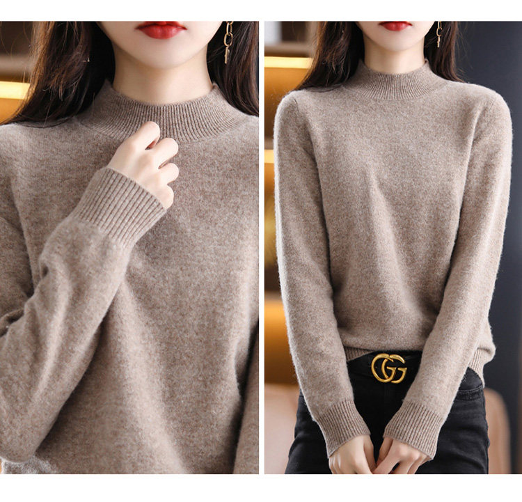 Шерстяной кашемировый трикотажный свитер, высокий воротник, свободный крой