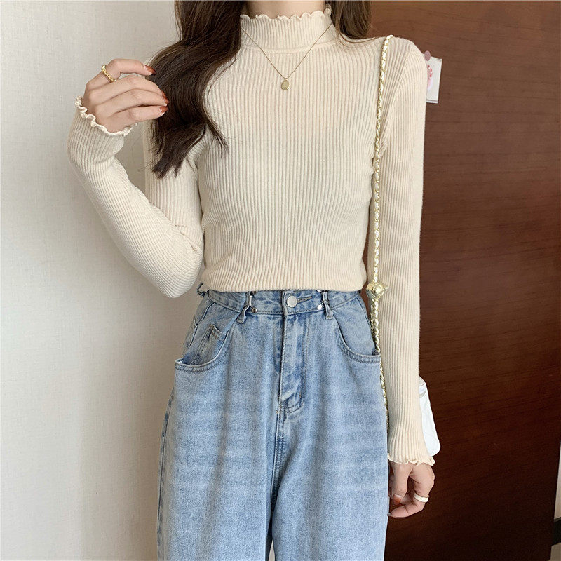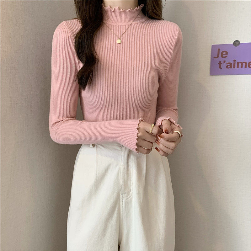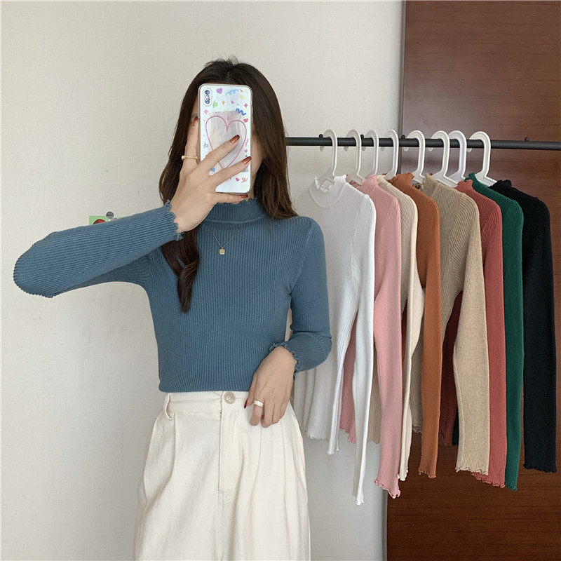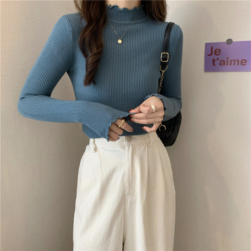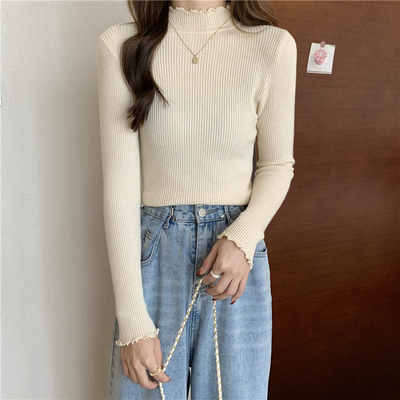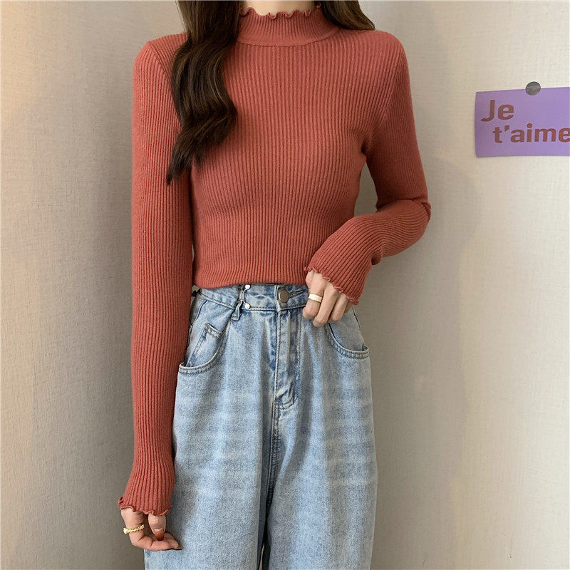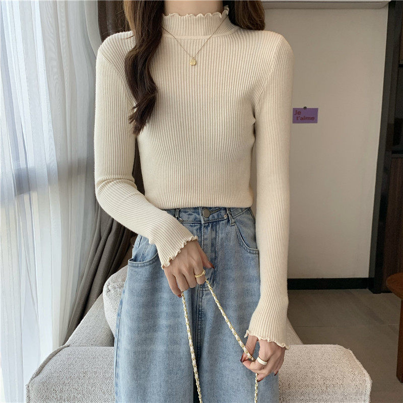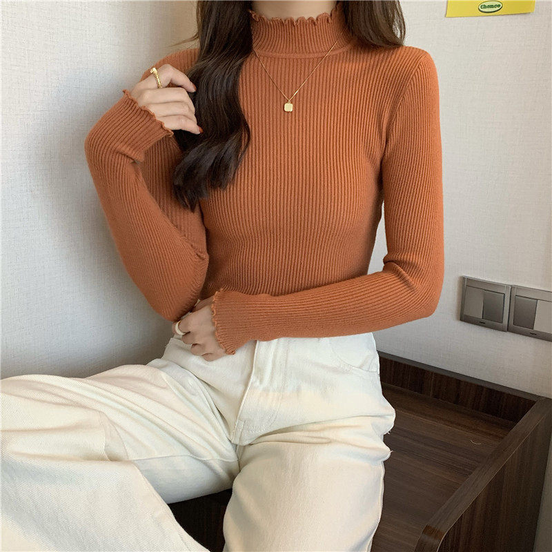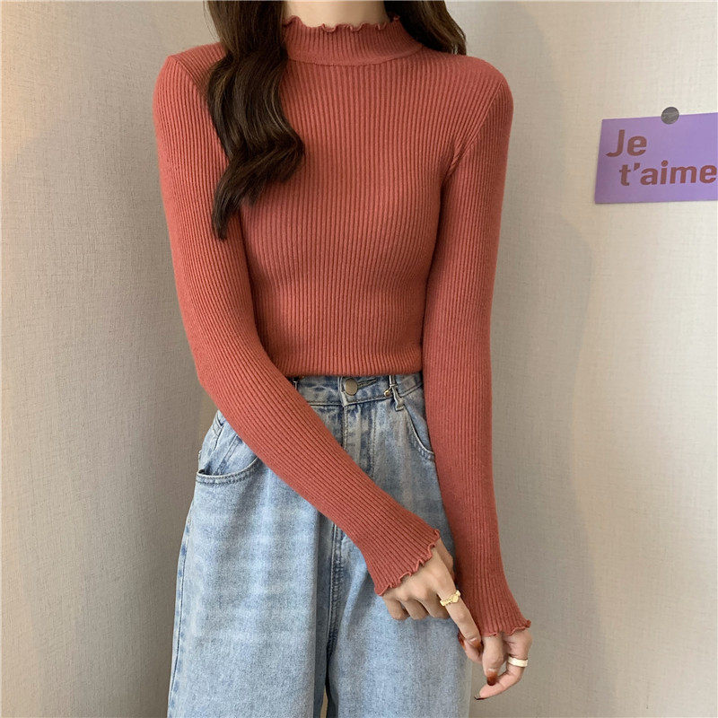 Базовый приятный телу весенний осенний демисезонный трикотажный свитер, высокий воротник, 2024 года, в западном стиле