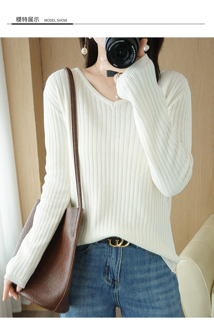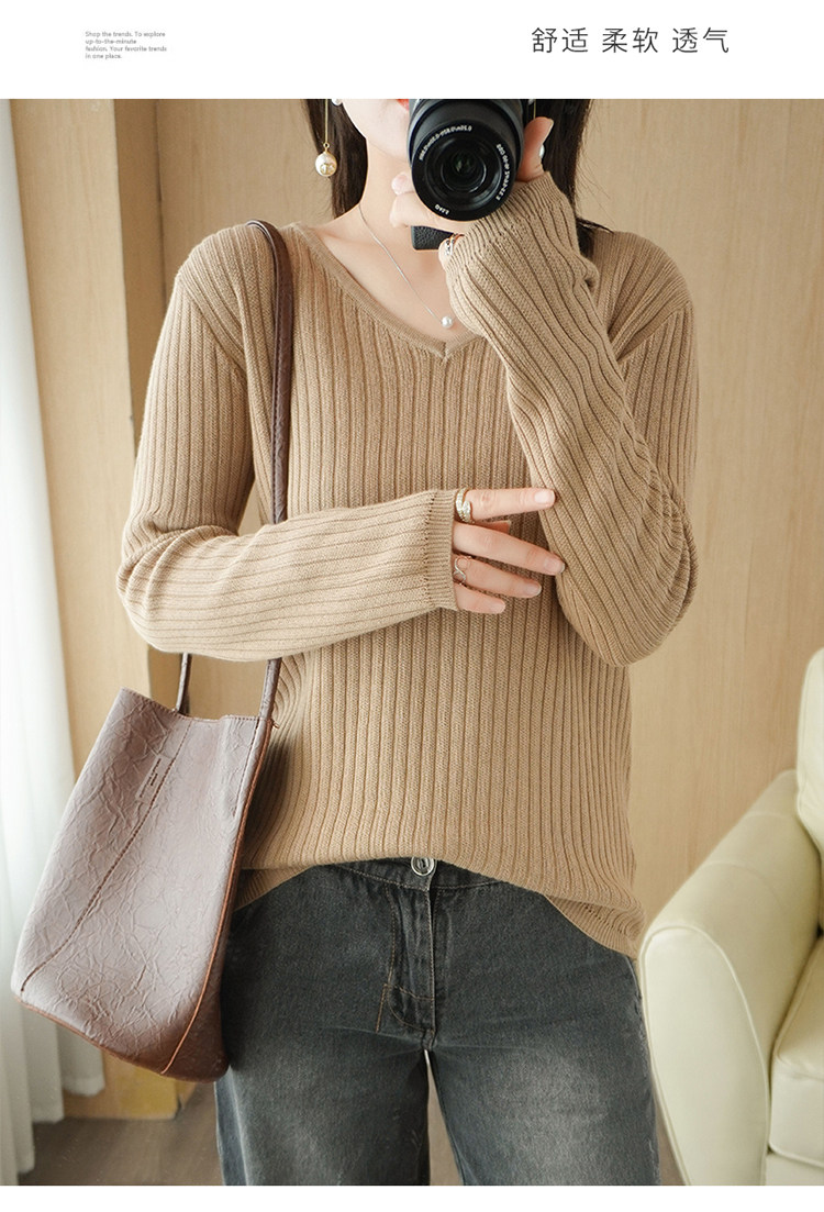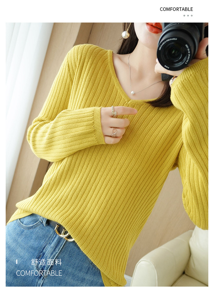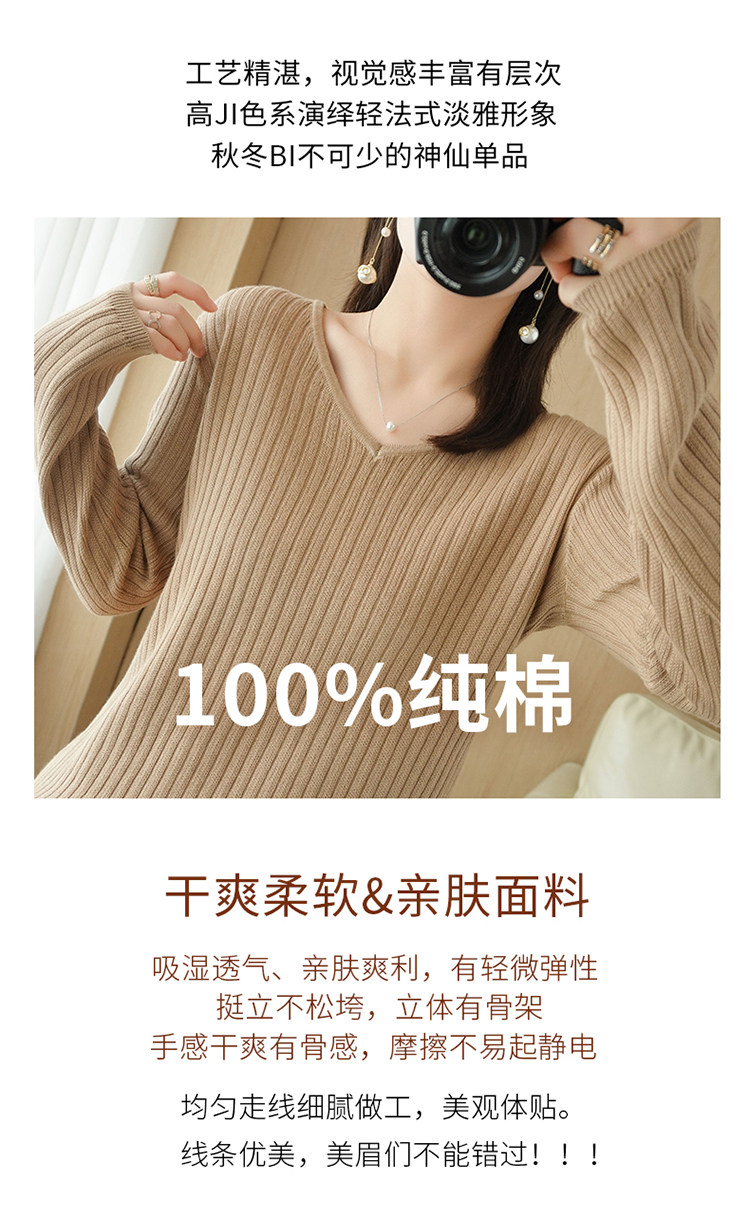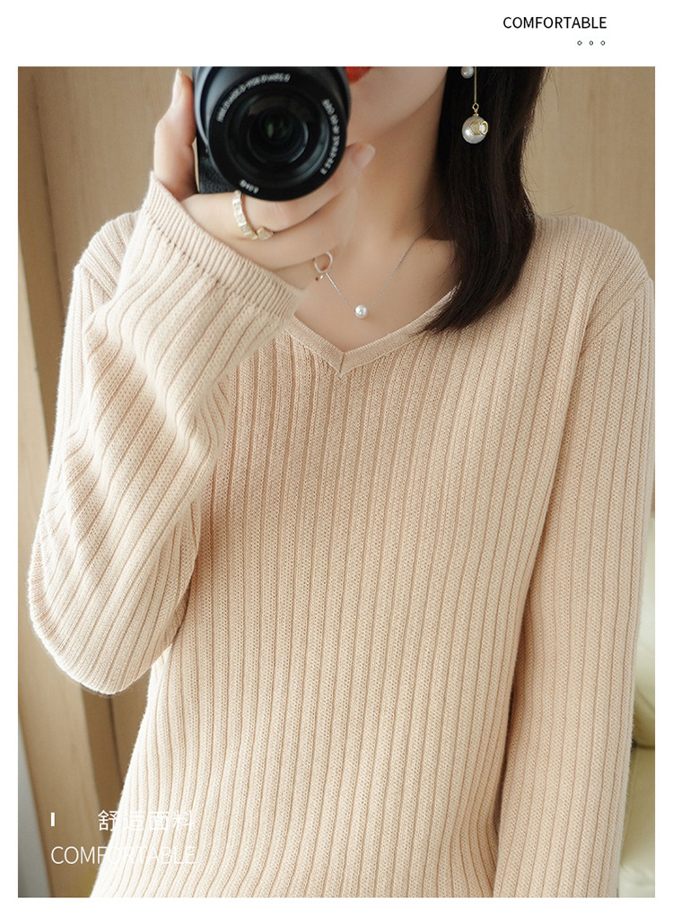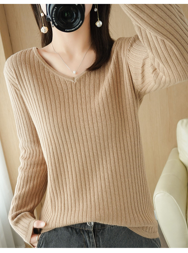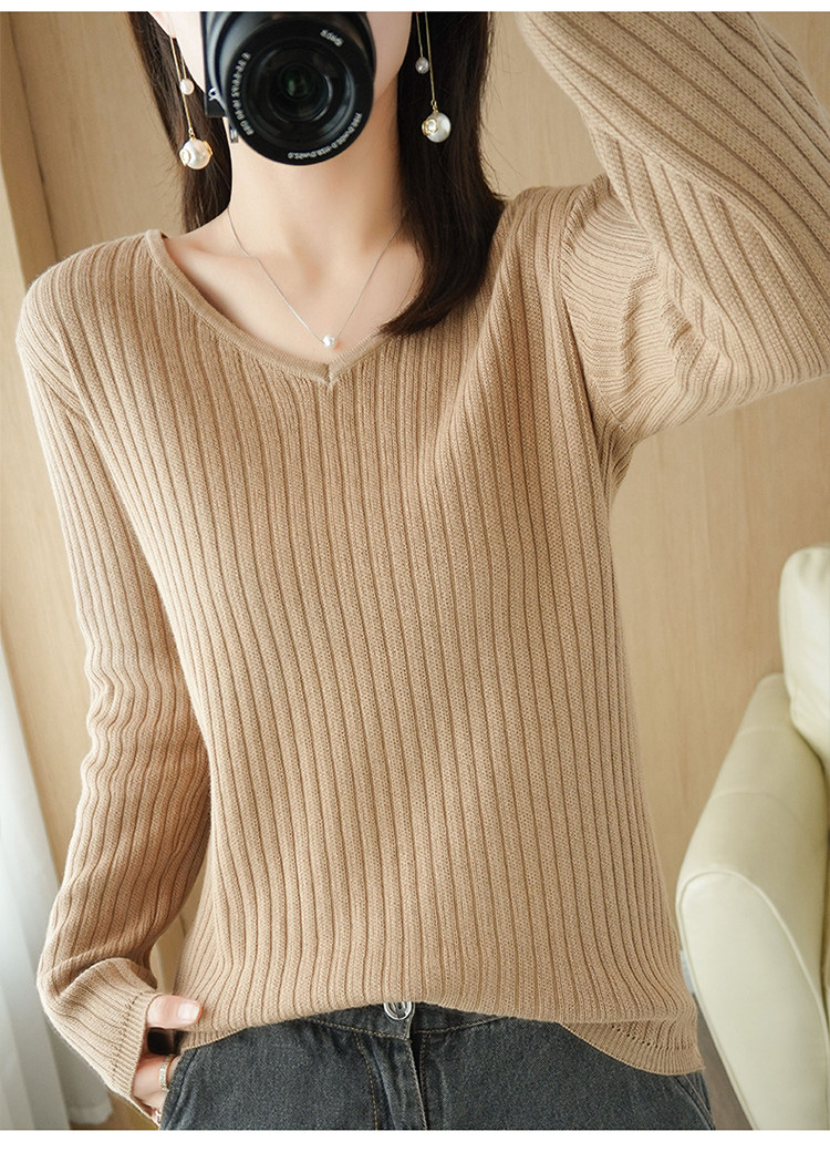 Хлопковый осенний базовый приятный телу трикотажный свитер, увеличенная толщина, V-образный вырез, оверсайз