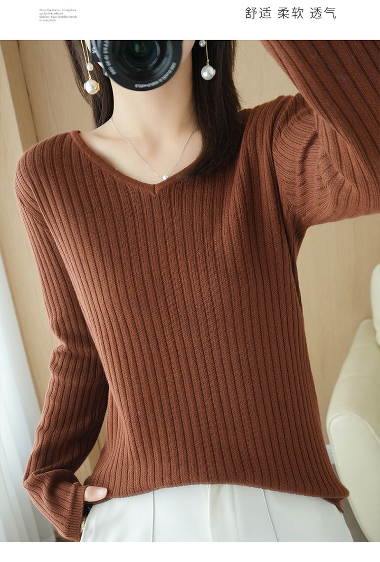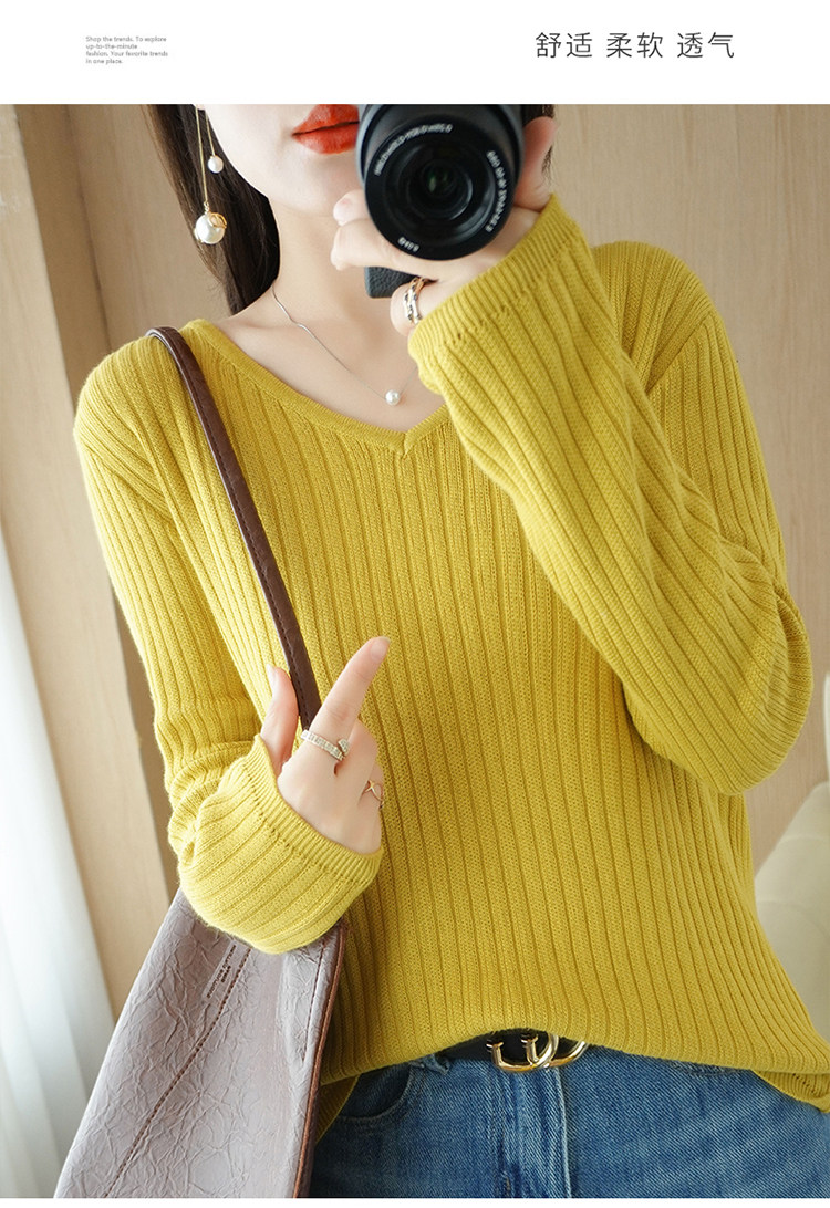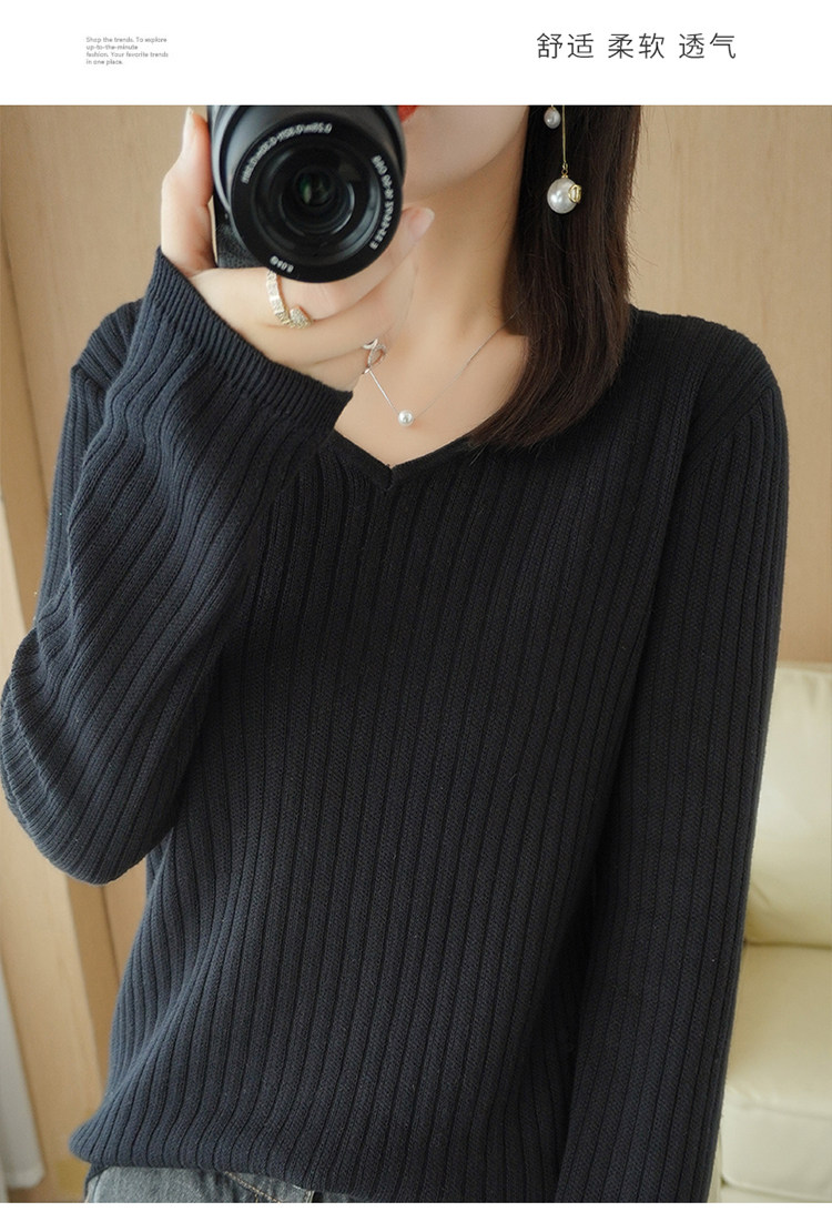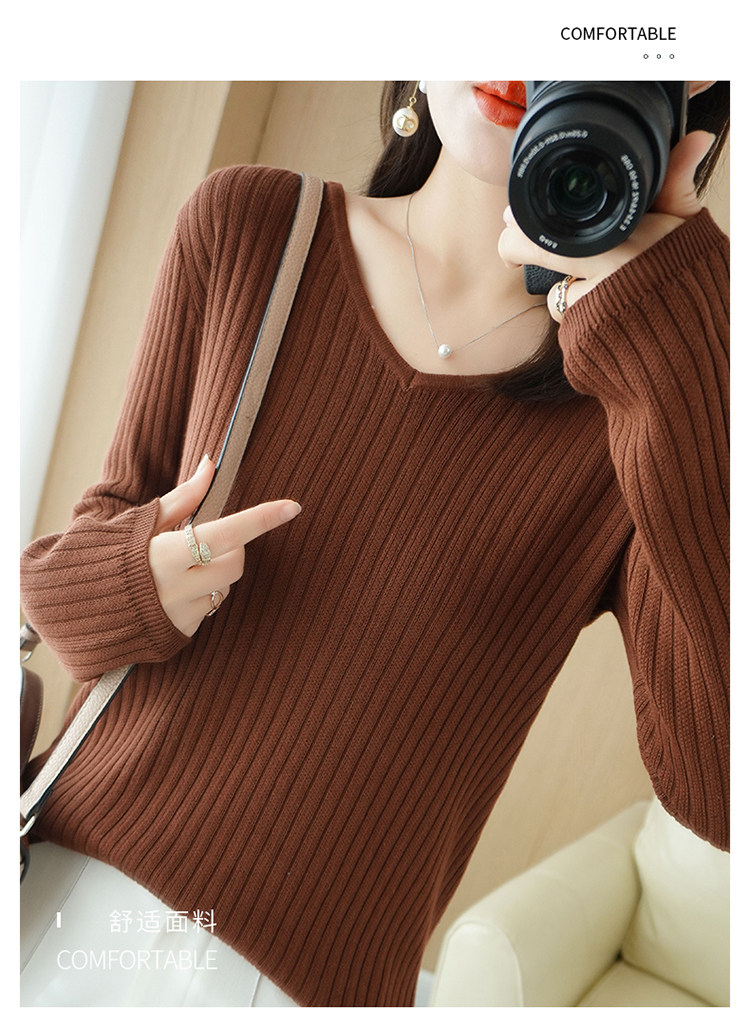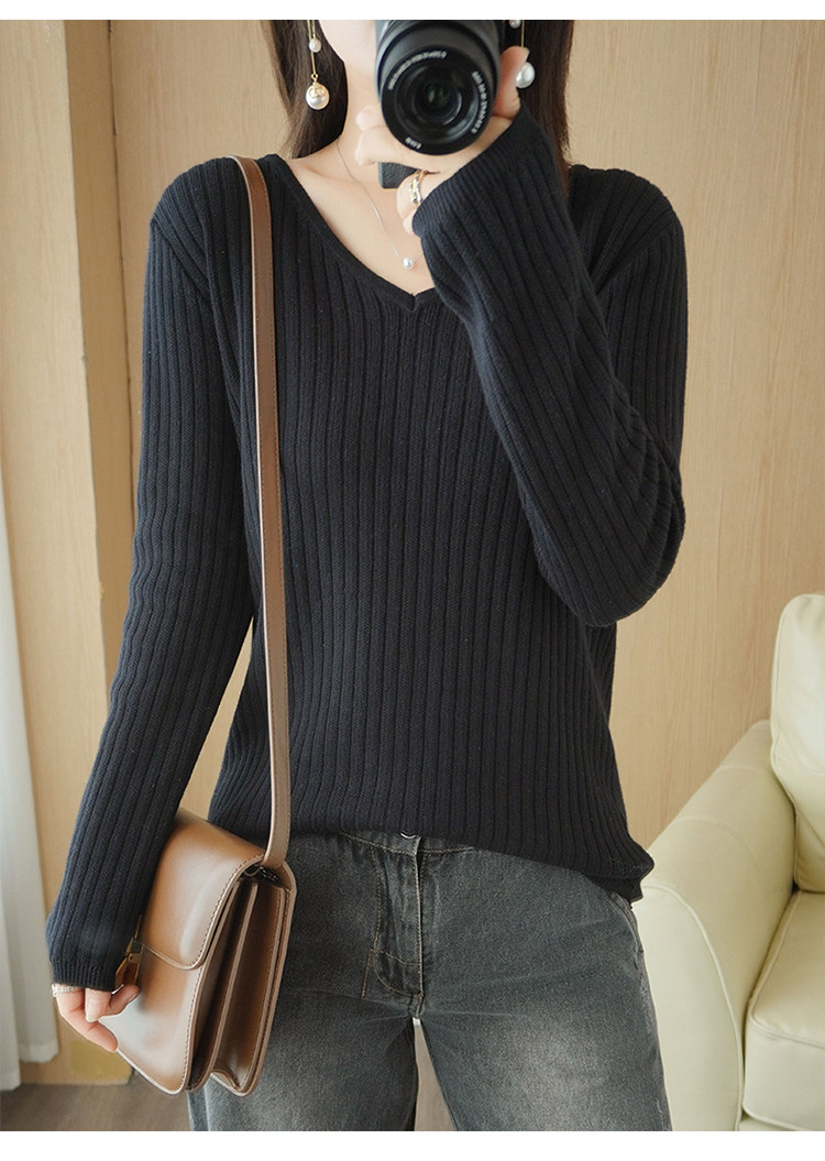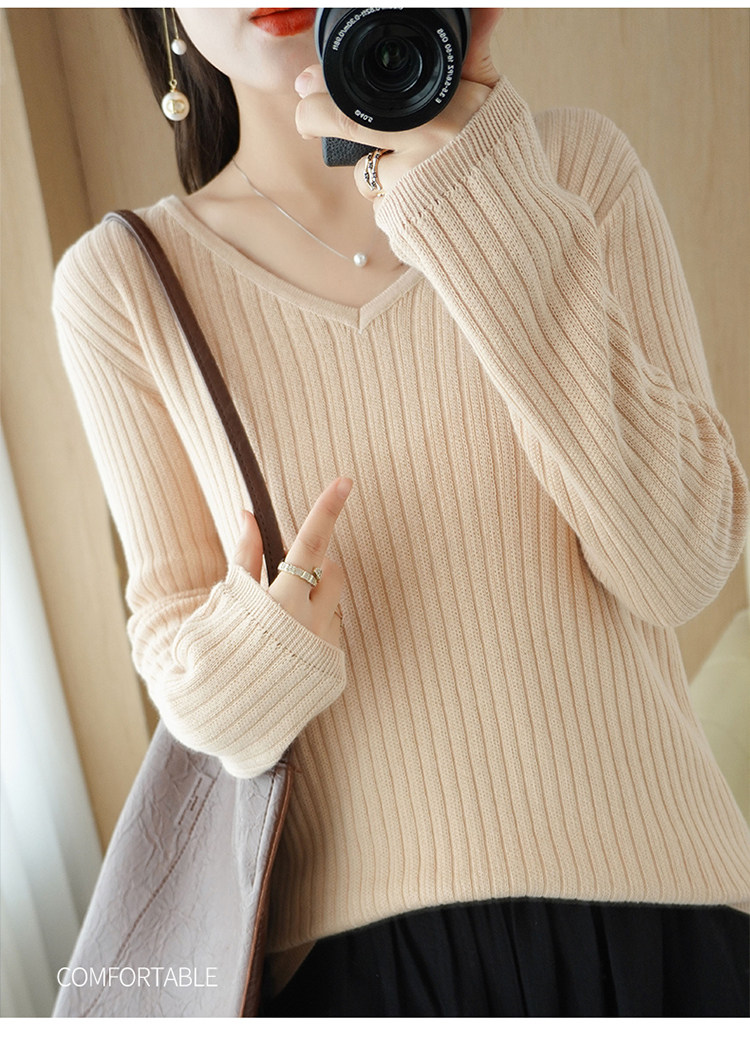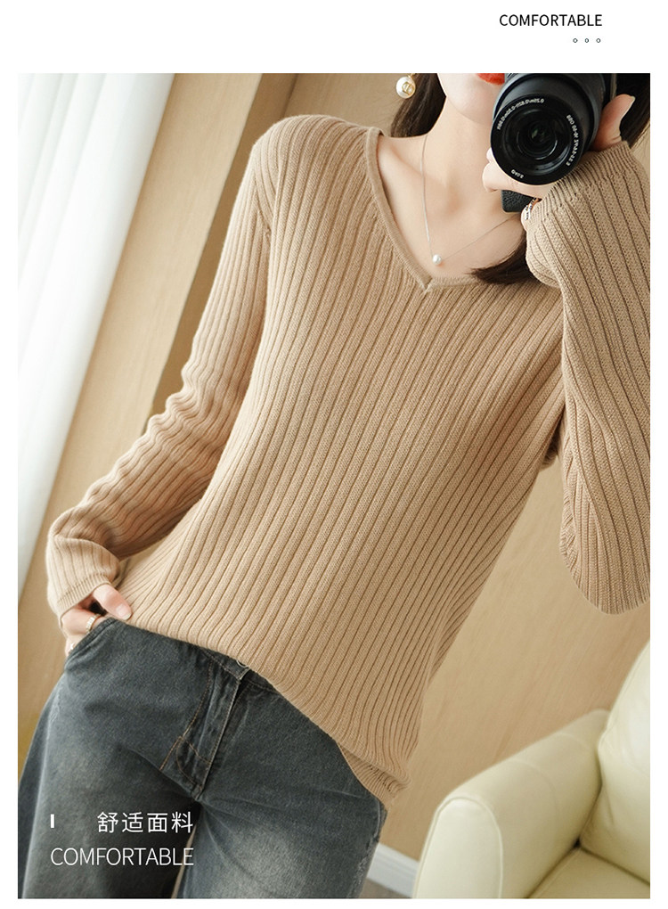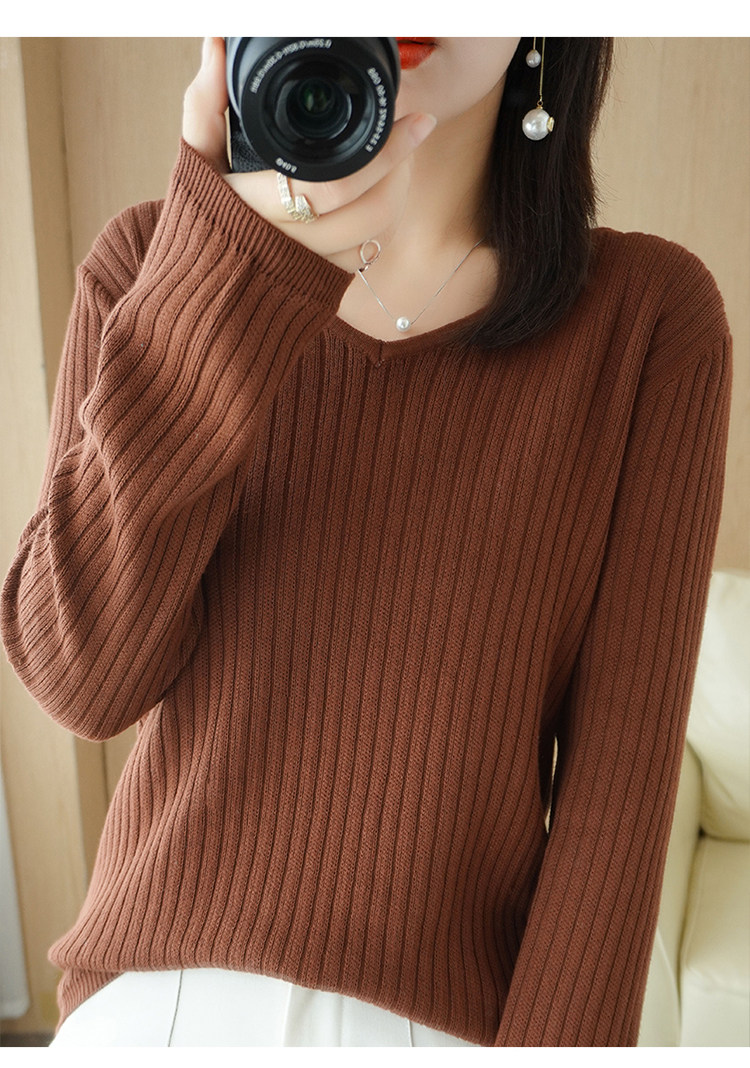 Хлопковый осенний базовый приятный телу трикотажный свитер, увеличенная толщина, V-образный вырез, оверсайз