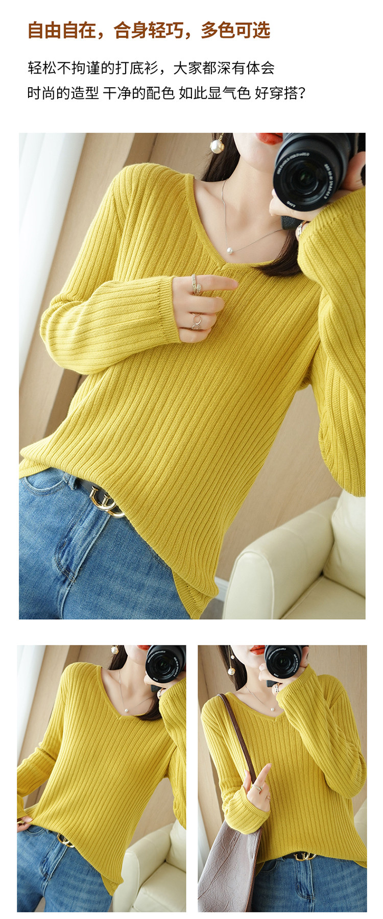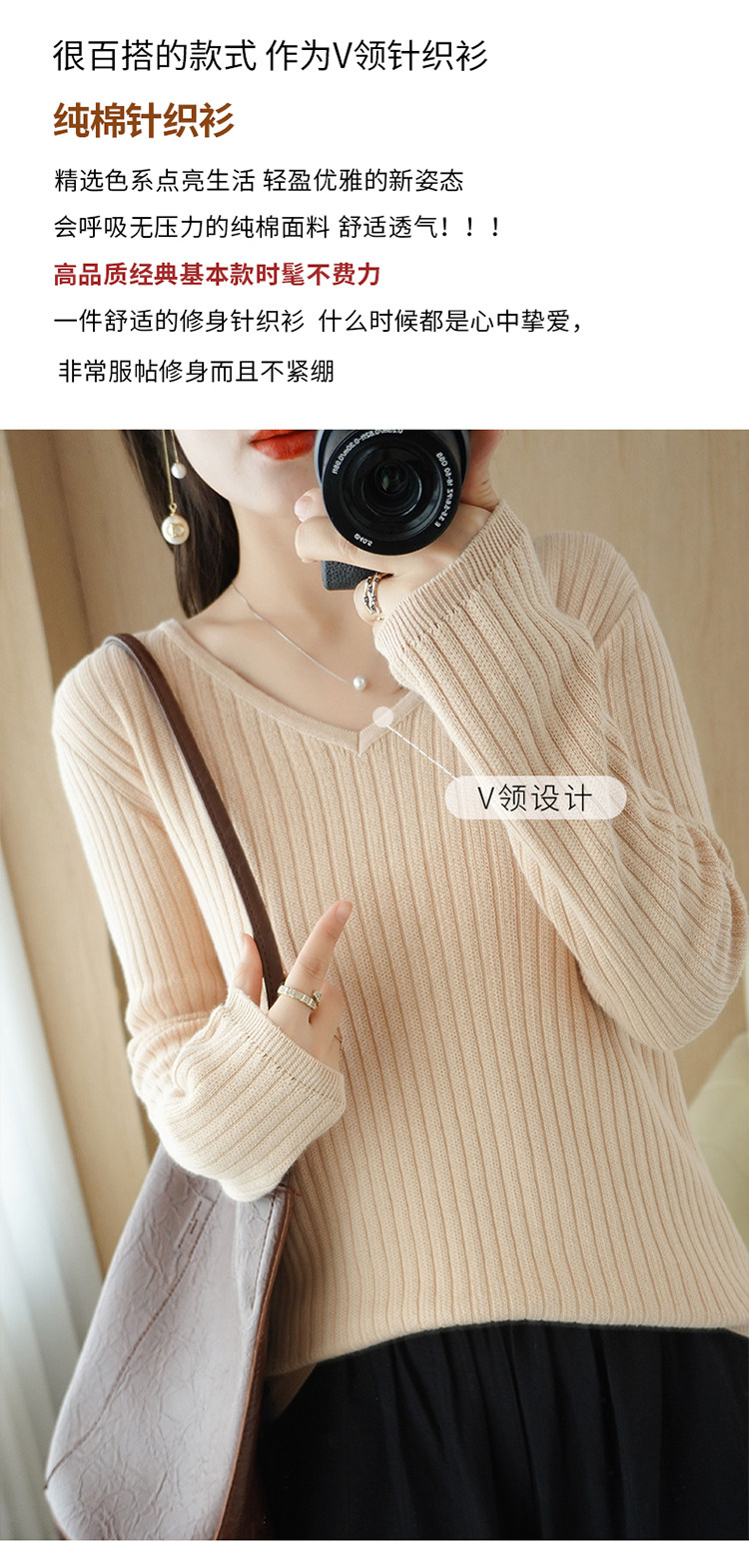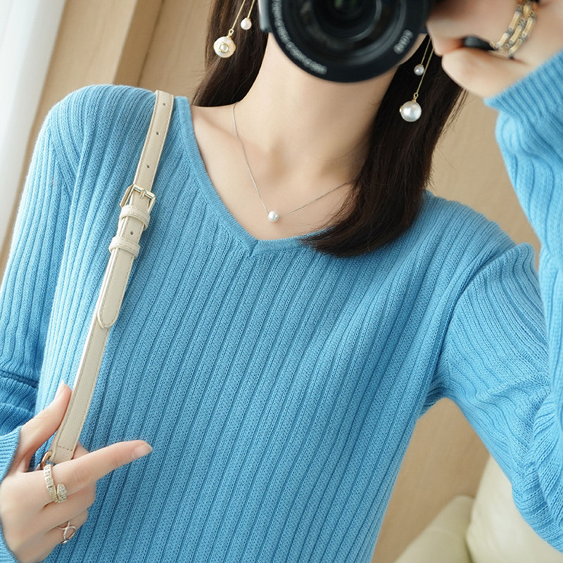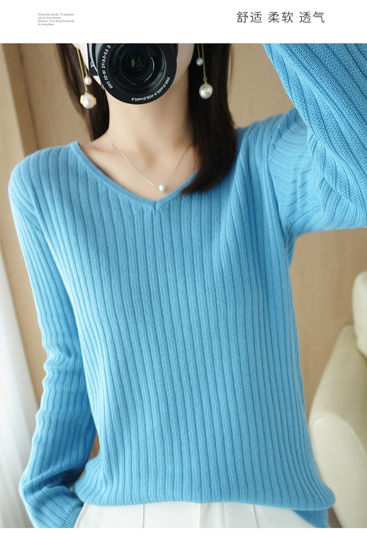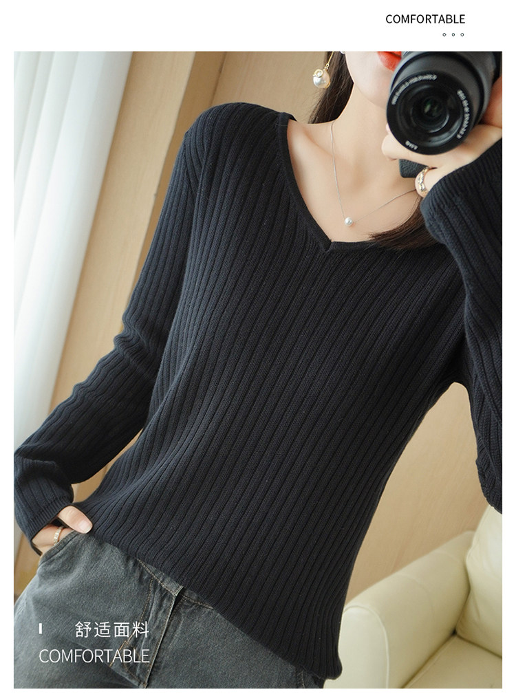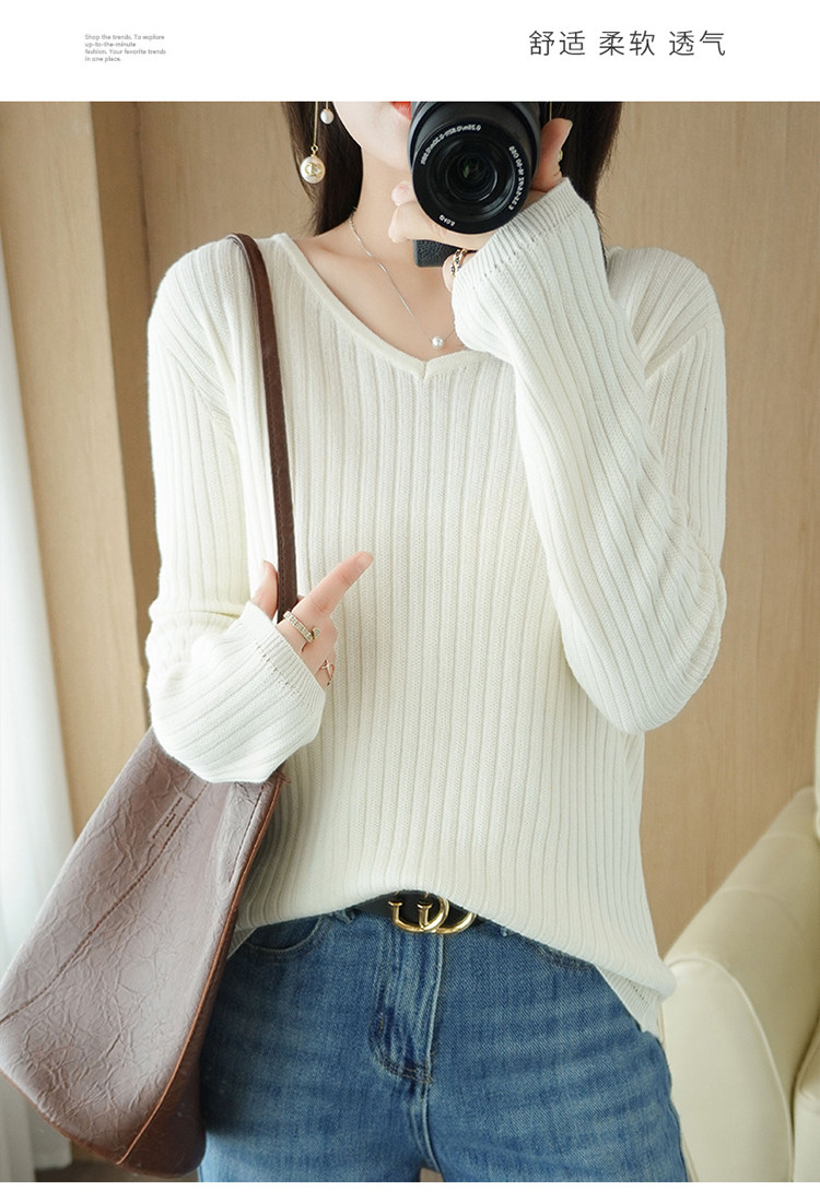 Хлопковый осенний базовый приятный телу трикотажный свитер, увеличенная толщина, V-образный вырез, оверсайз
