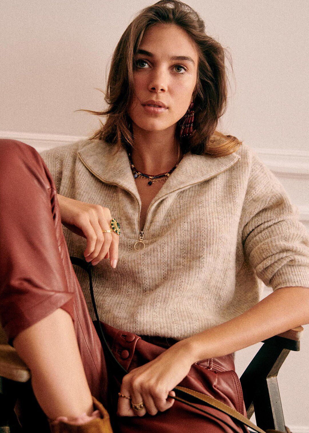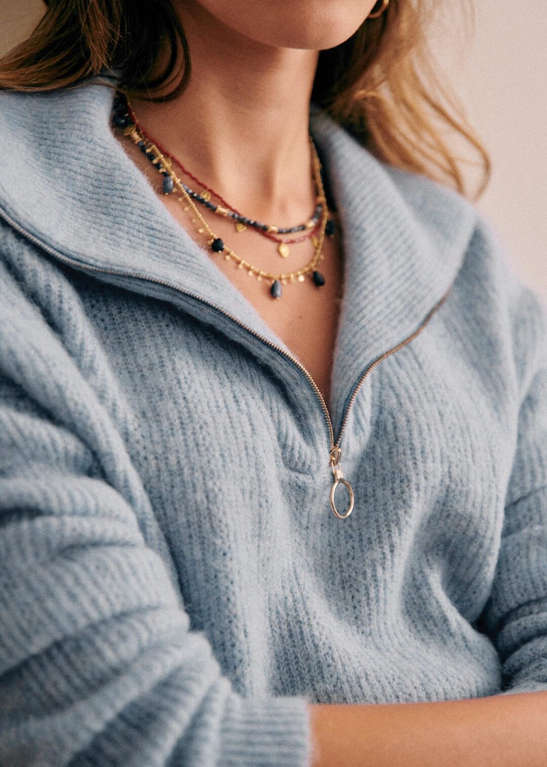 Трикотажный свитер с молнией, лонгслив, французский стиль, свободный крой, на молнии