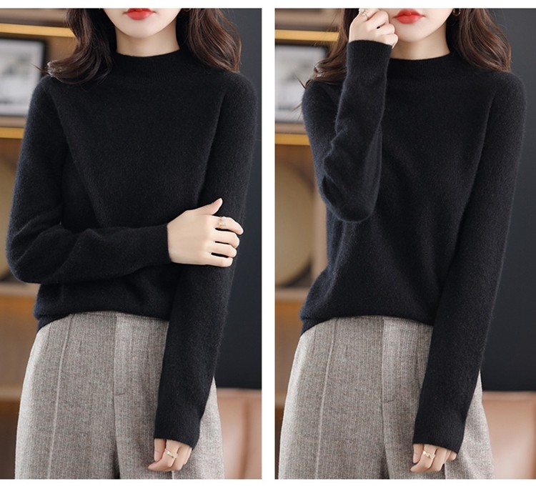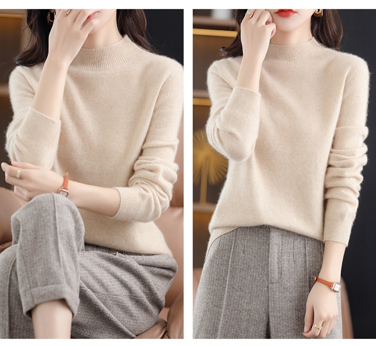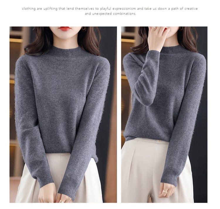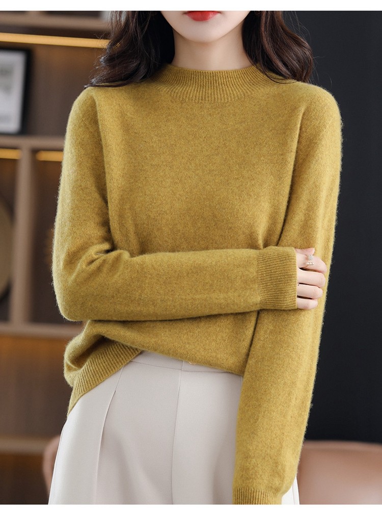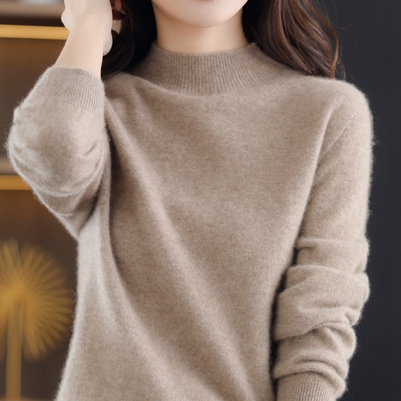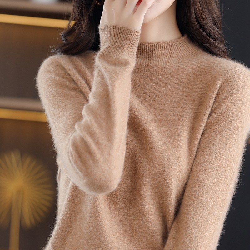 Демисезонный кашемировый шерстяной трикотажный свитер, высокий воротник, в западном стиле, оверсайз