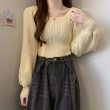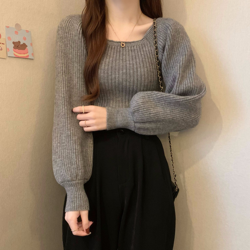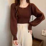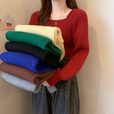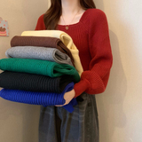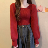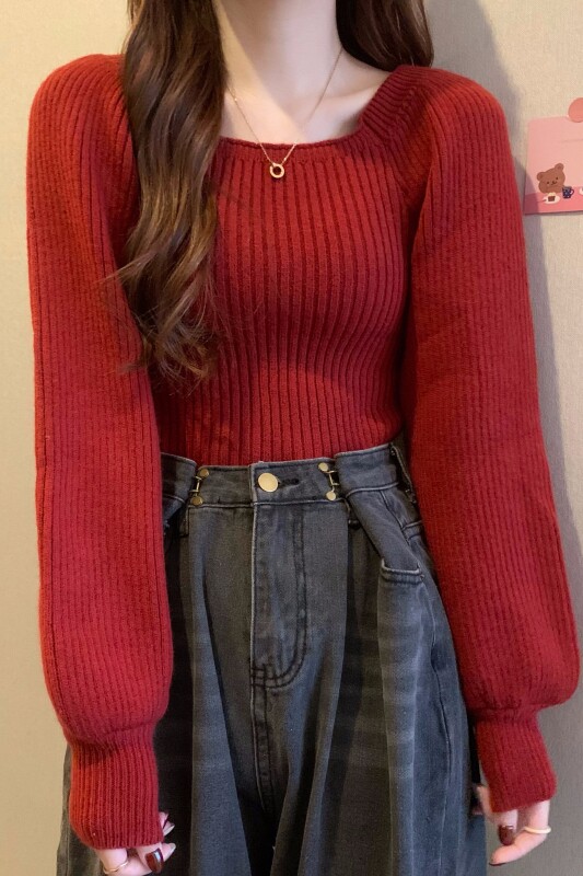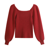 Красный демисезонный трикотажный дизайнерский свитер, квадратный вырез, в западном стиле, тренд сезона, рукава фонарики