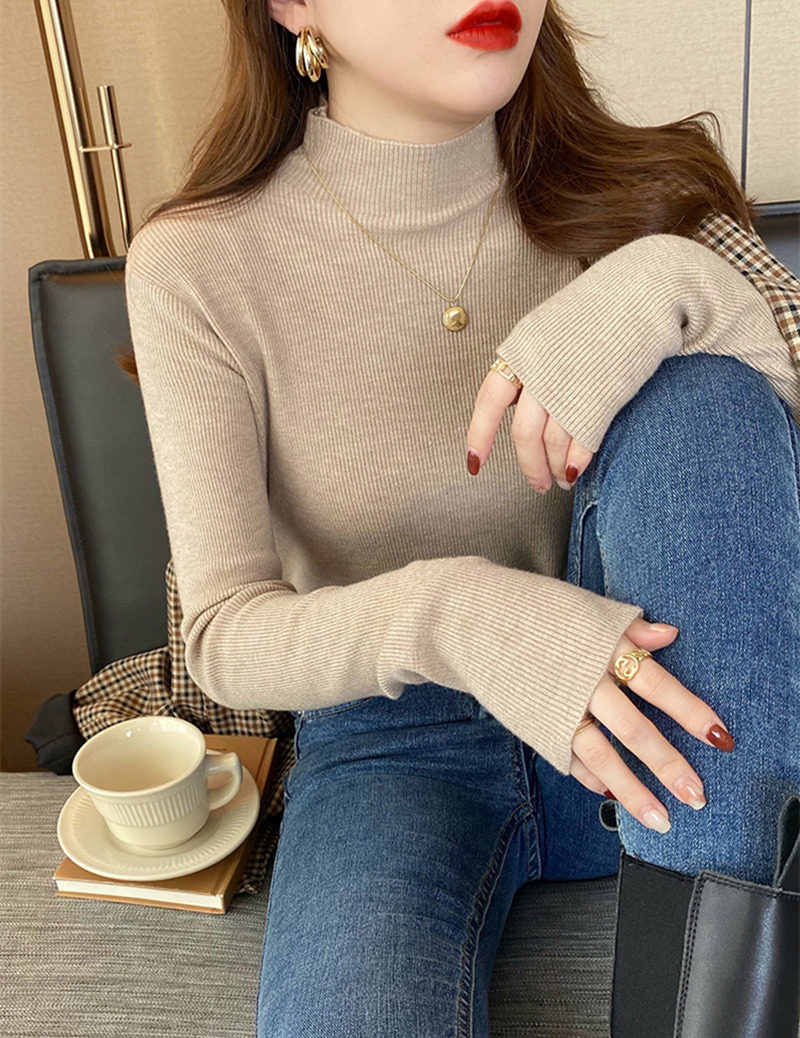 Базовый приятный телу весенний осенний демисезонный трикотажный свитер, высокий воротник, 2022