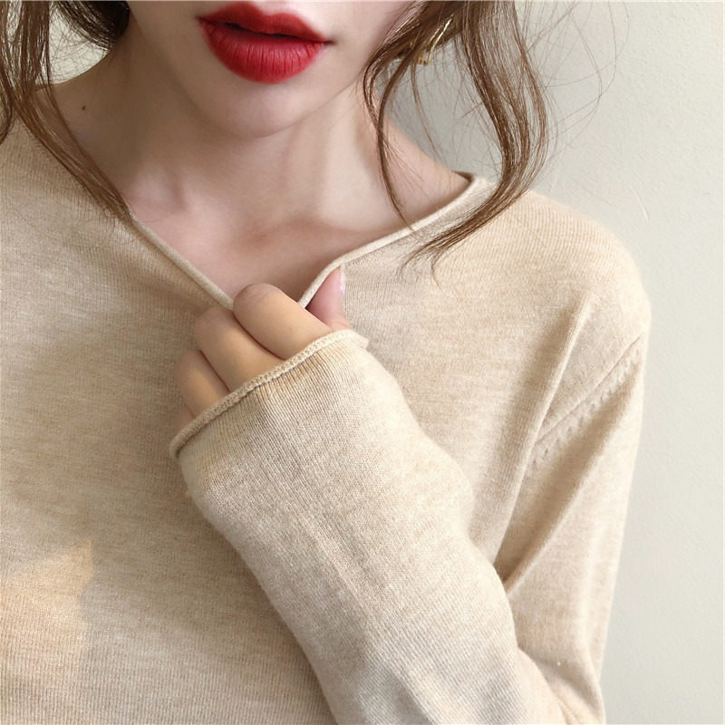 Весенний осенний демисезонный кашемировый небольшой дизайнерский трикотажный базовый приятный телу свитер, 2023 года, в западном стиле, тренд сезона
