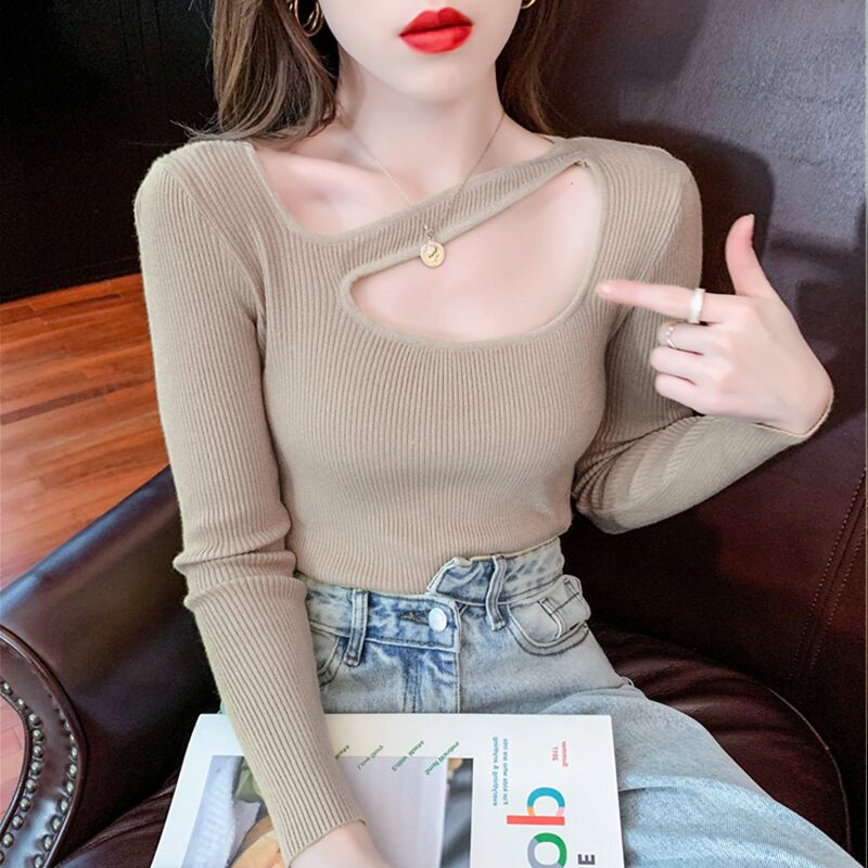 Демисезонный свитер, бархатный базовый приятный телу сексуальный атмосферный плащ, квадратный вырез, в западном стиле, французский стиль