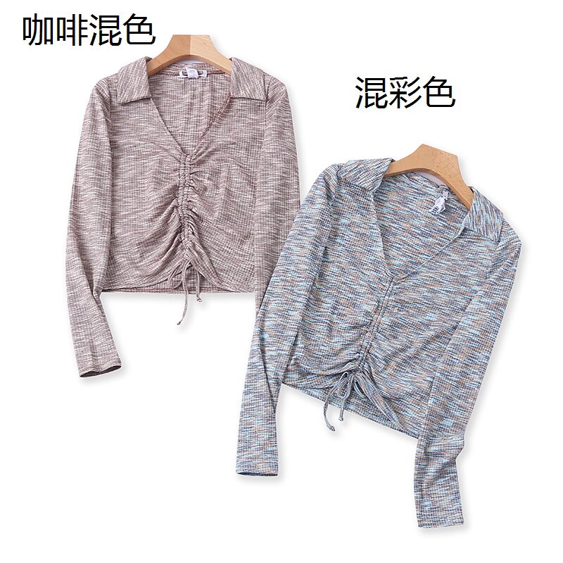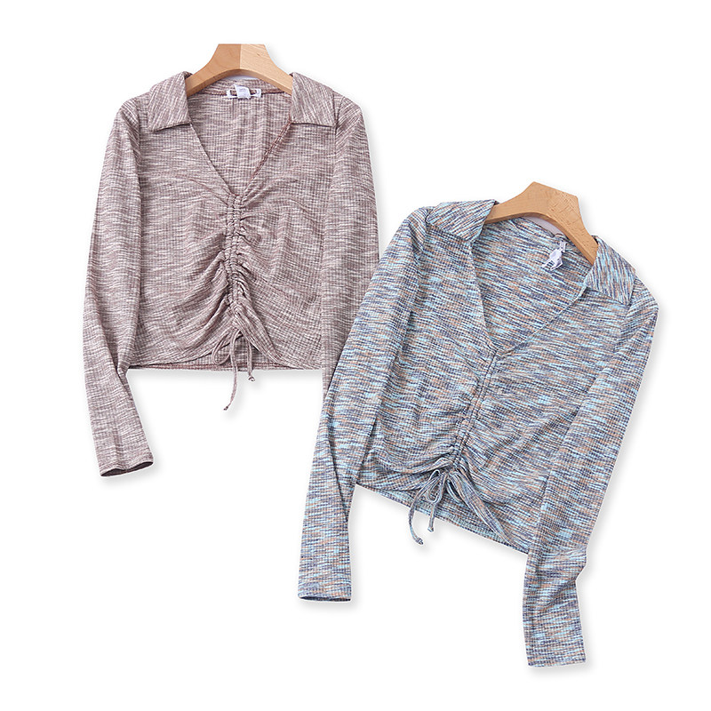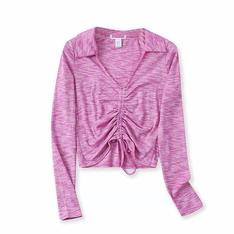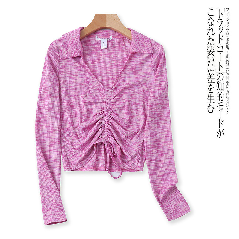 Вязаная рубашка для весеннего нового стиля, которую женский воротник, воротник поло, с плиссированным кружевным малым