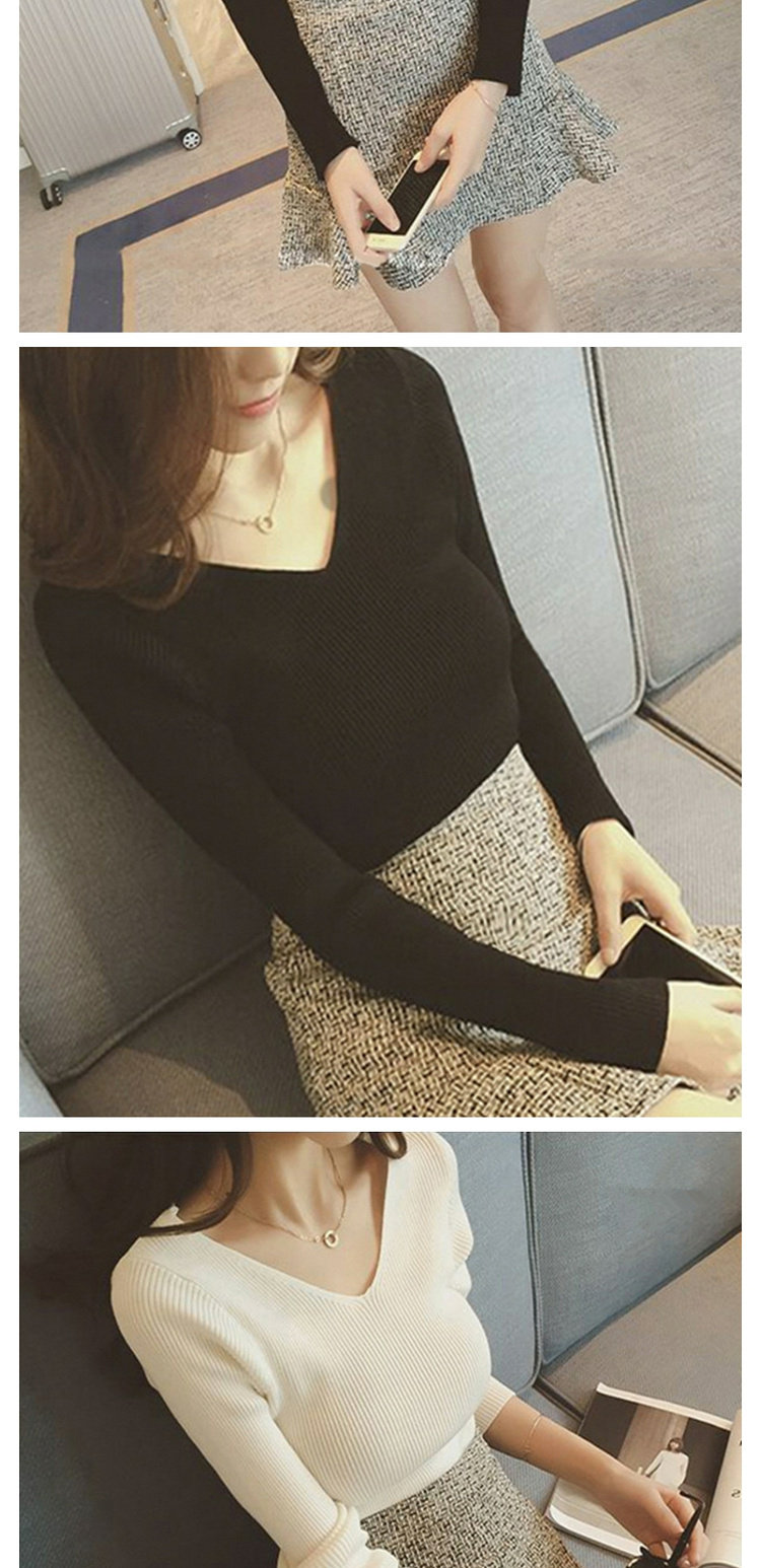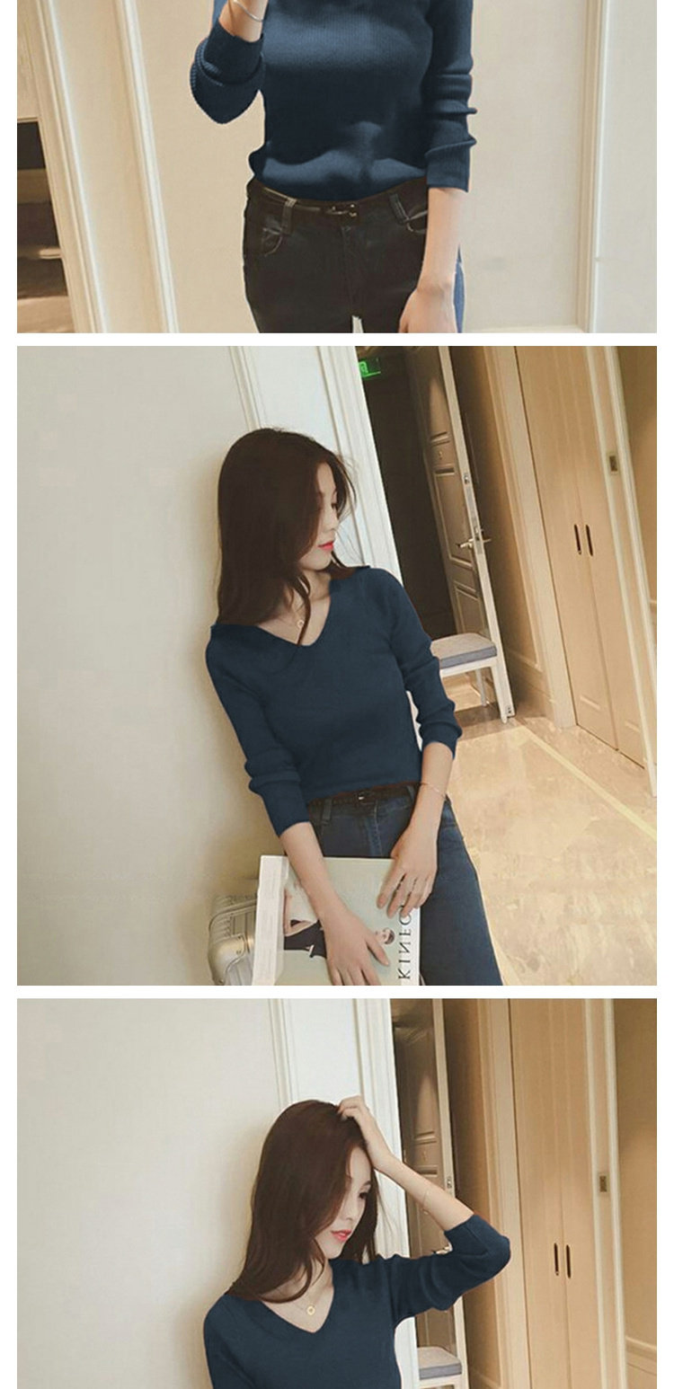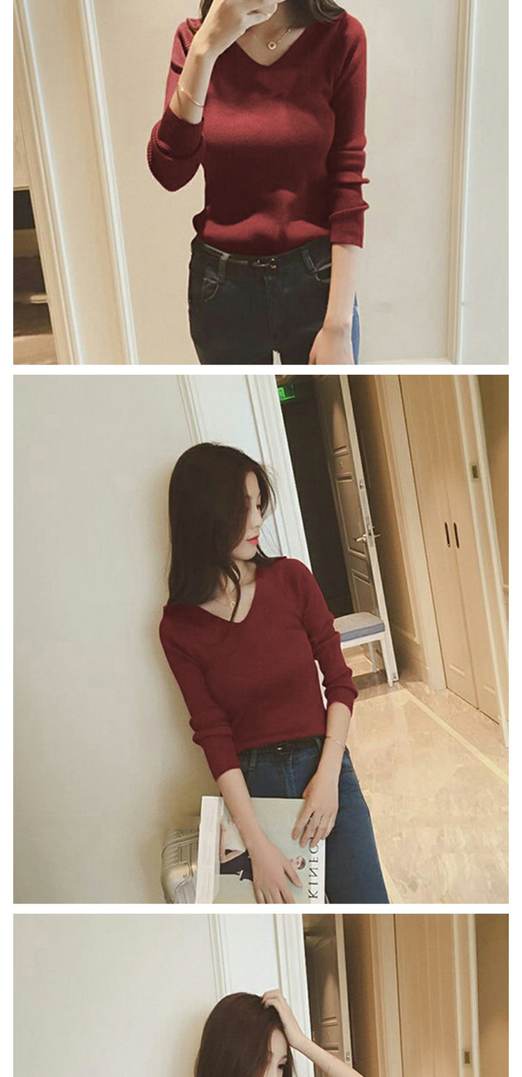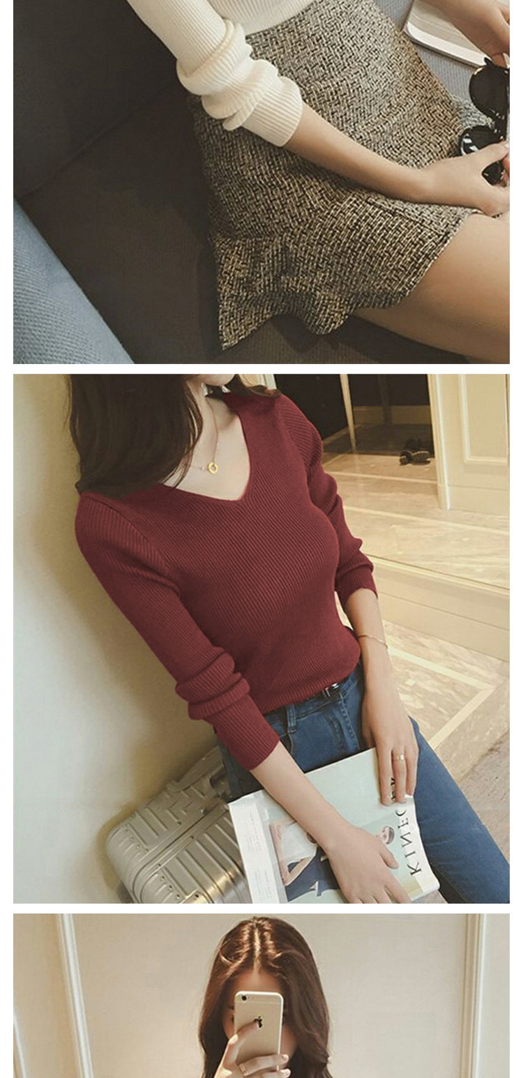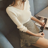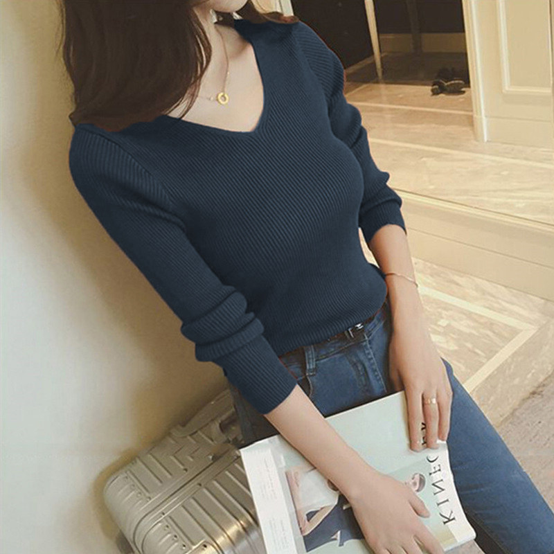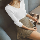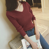 Демисезонный трикотажный лонгслив, свитер, облегающий крой, V-образный вырез, в западном стиле