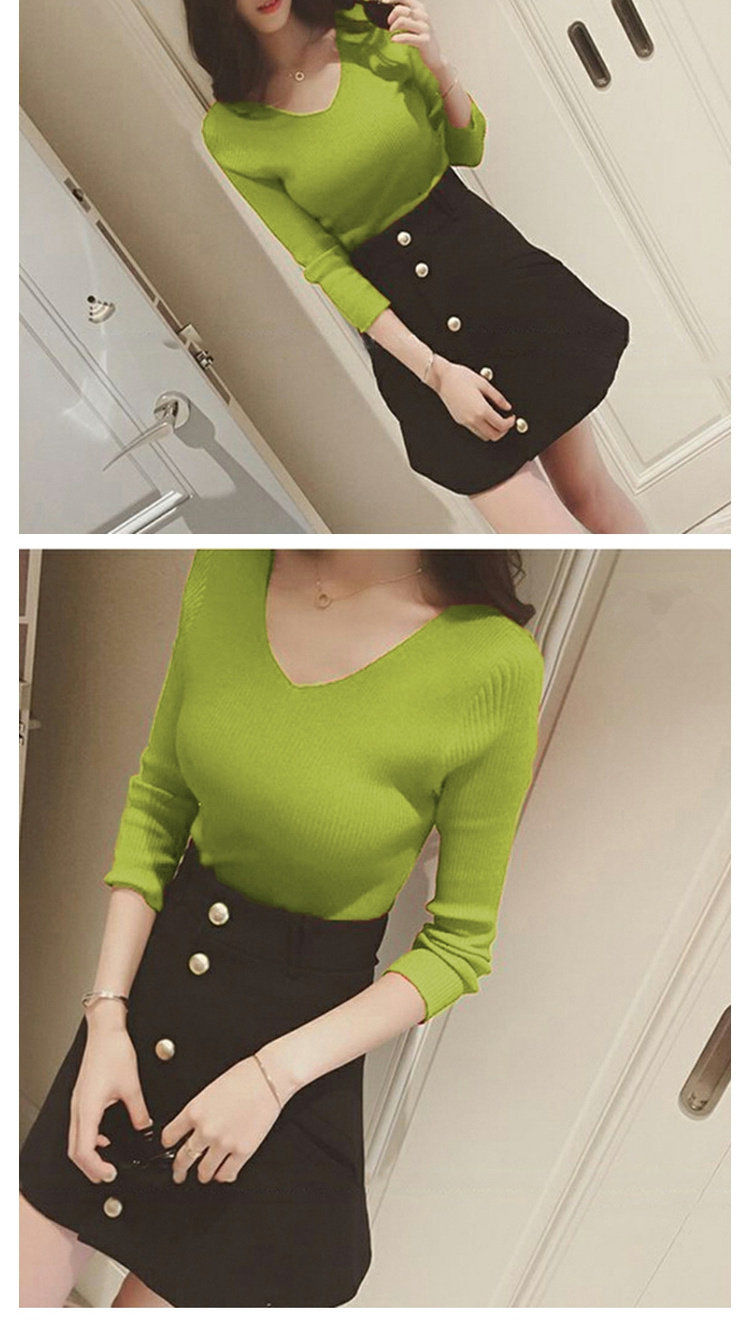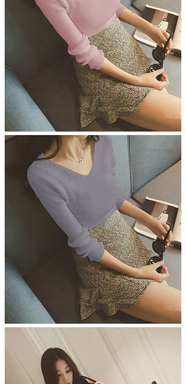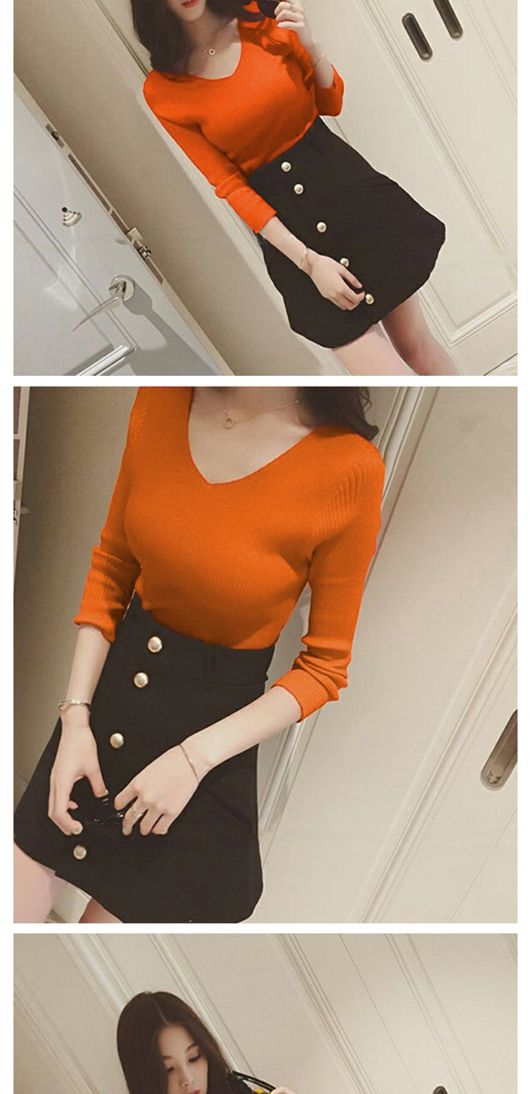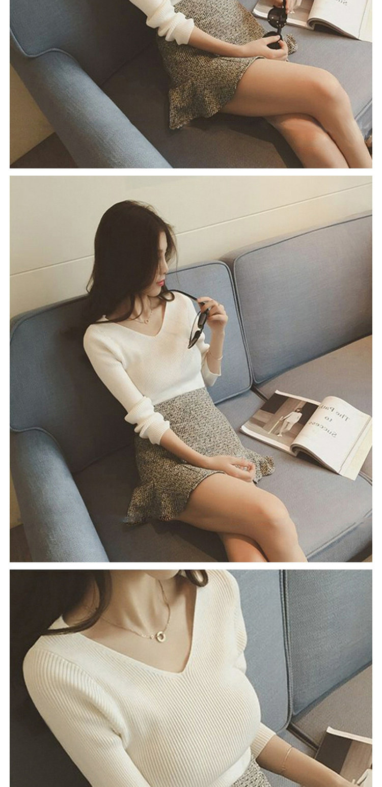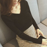 Демисезонный трикотажный лонгслив, свитер, облегающий крой, V-образный вырез, в западном стиле