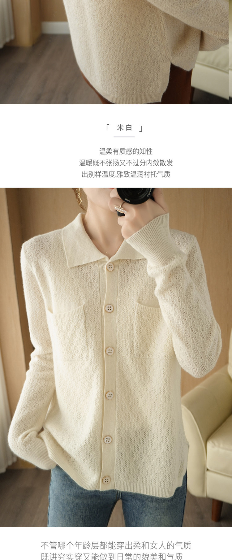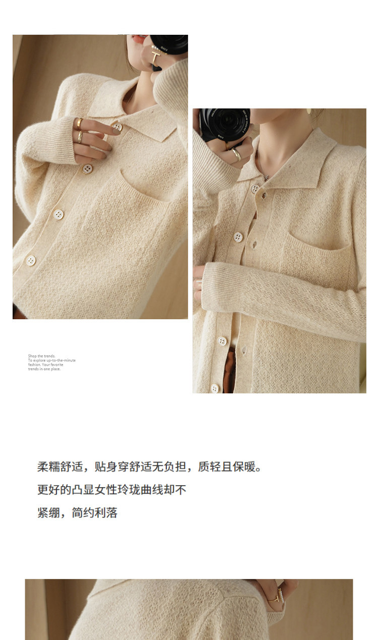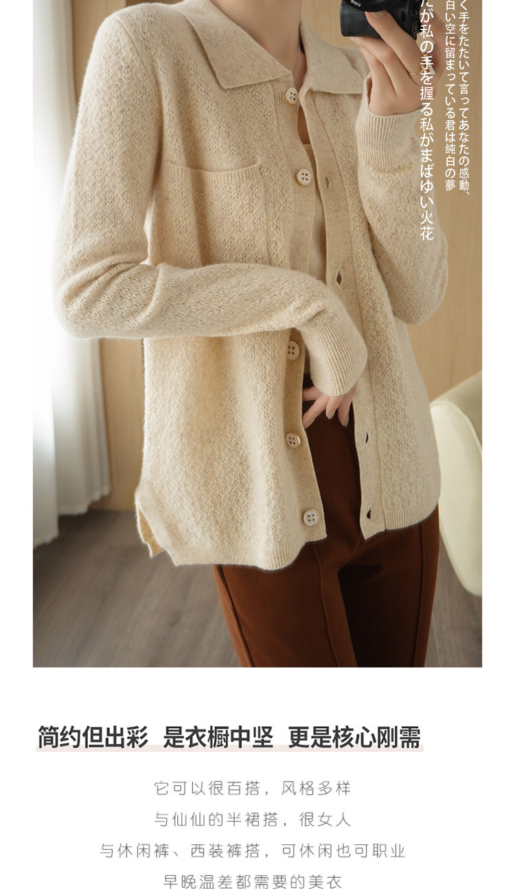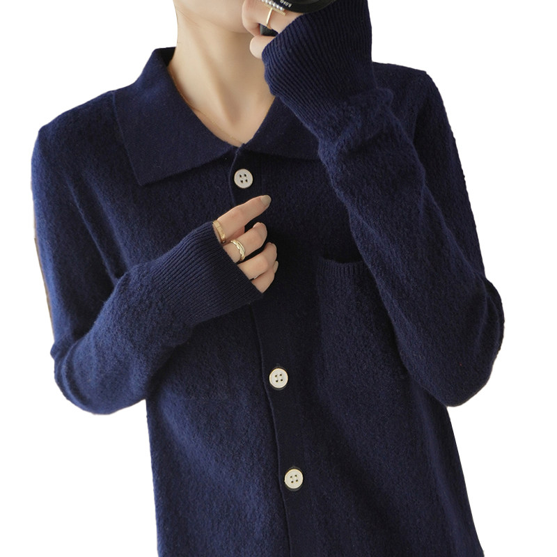 Шерстяной кардиган, кашемировая трикотажная куртка, свитер, воротник поло