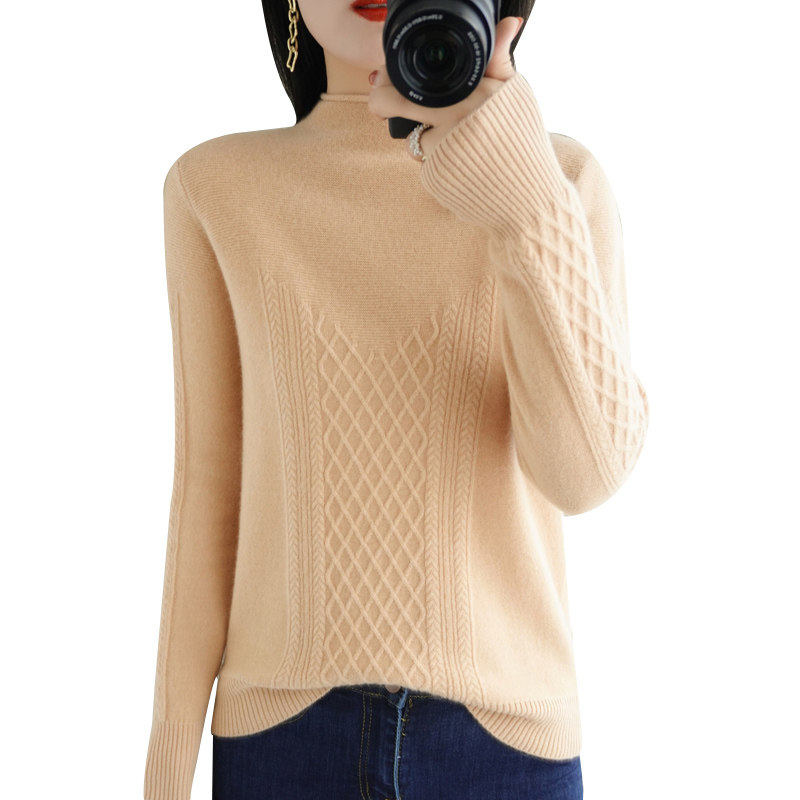 Шерстяной кашемировый трикотажный свитер, высокий воротник