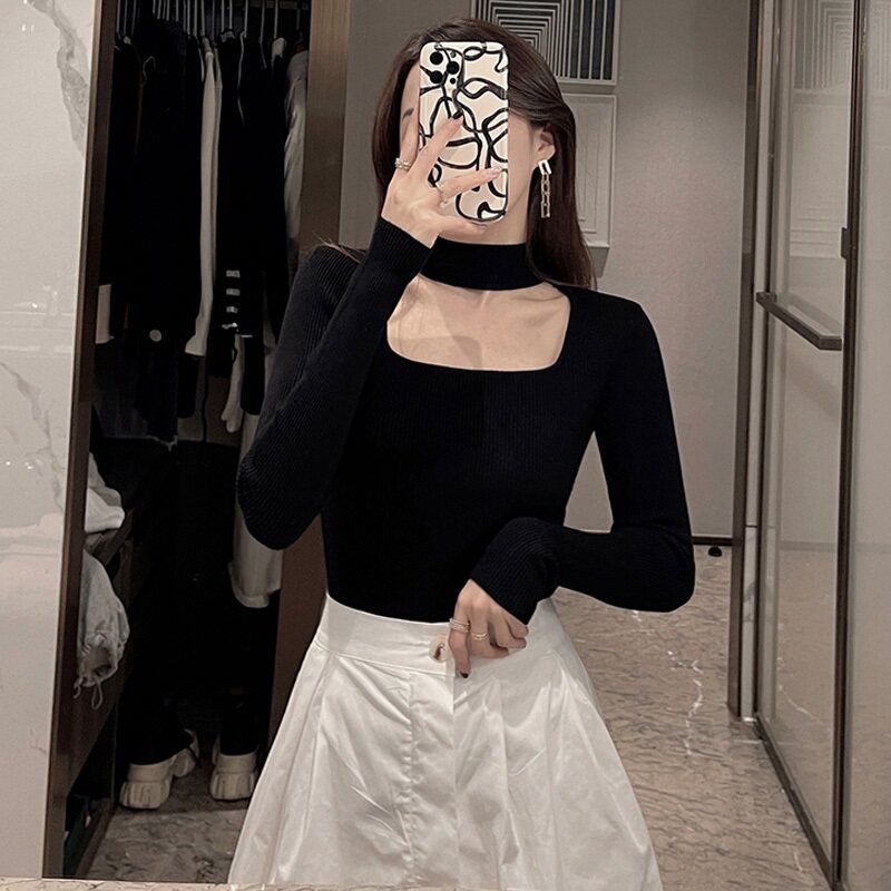 Базовый приятный телу демисезонный атмосферный свитер, квадратный вырез, в западном стиле, французский стиль