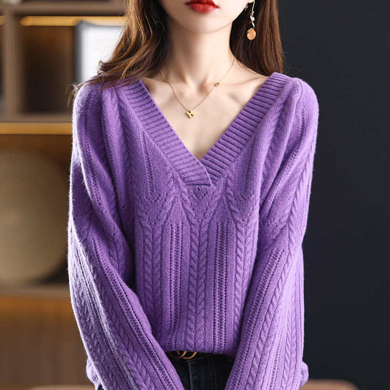 Шерстяной трикотажный кашемировый свитер, в корейском стиле, V-образный вырез