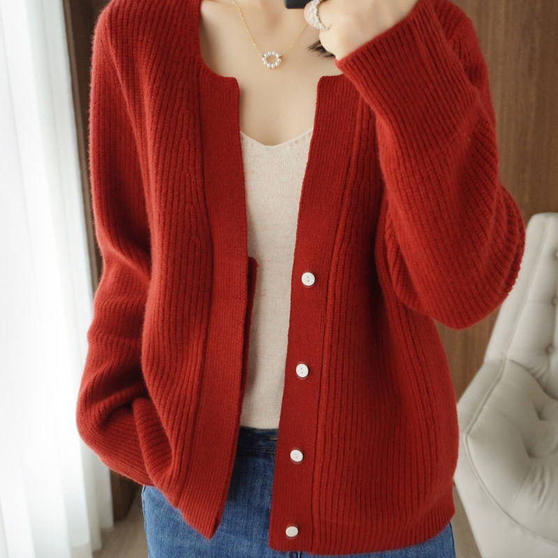 Шерстяной кардиган, куртка, короткий кашемировый трикотажный свитер, V-образный вырез, в западном стиле, свободный крой