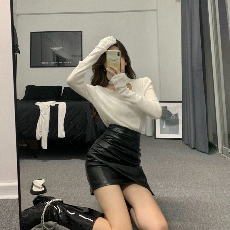 Демисезонный базовый приятный телу свитер, изысканный стиль, в западном стиле, высокий воротник, французский стиль