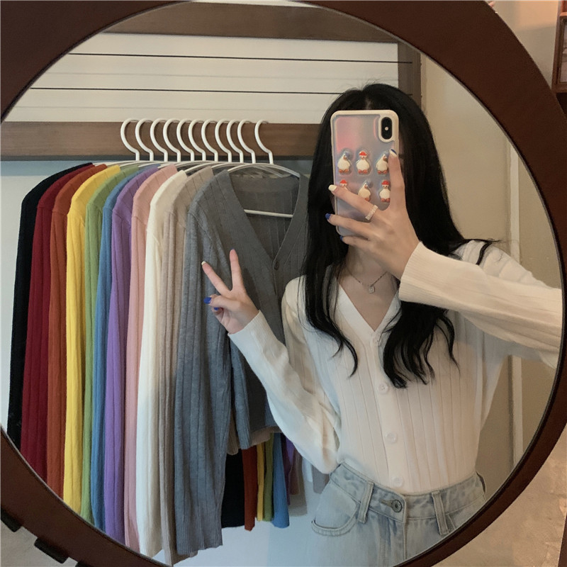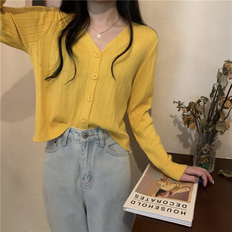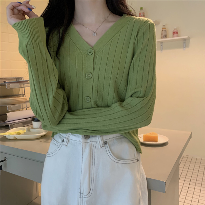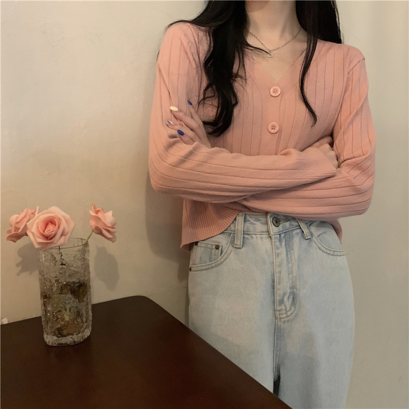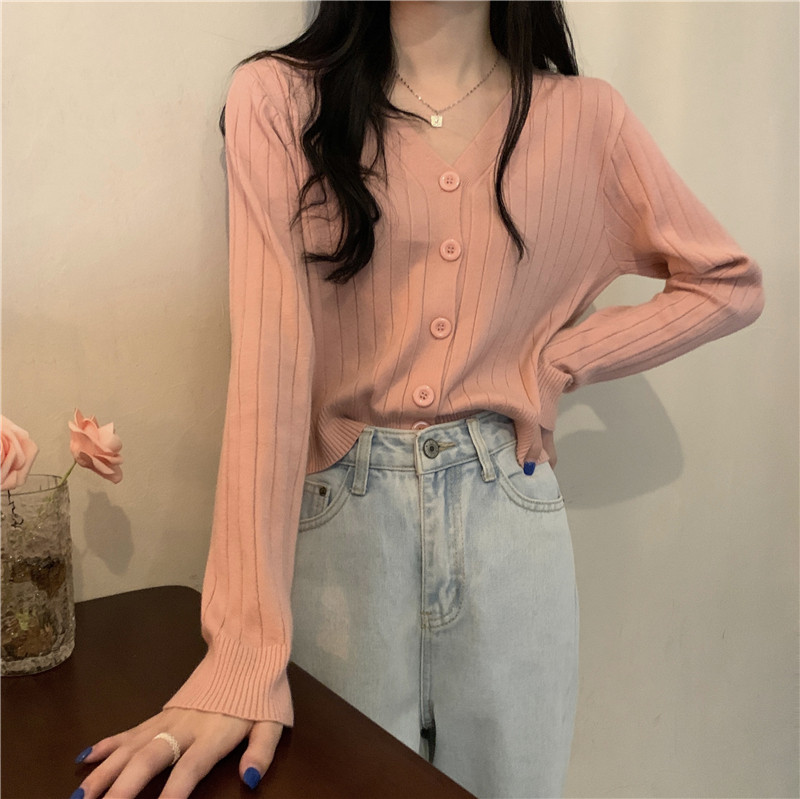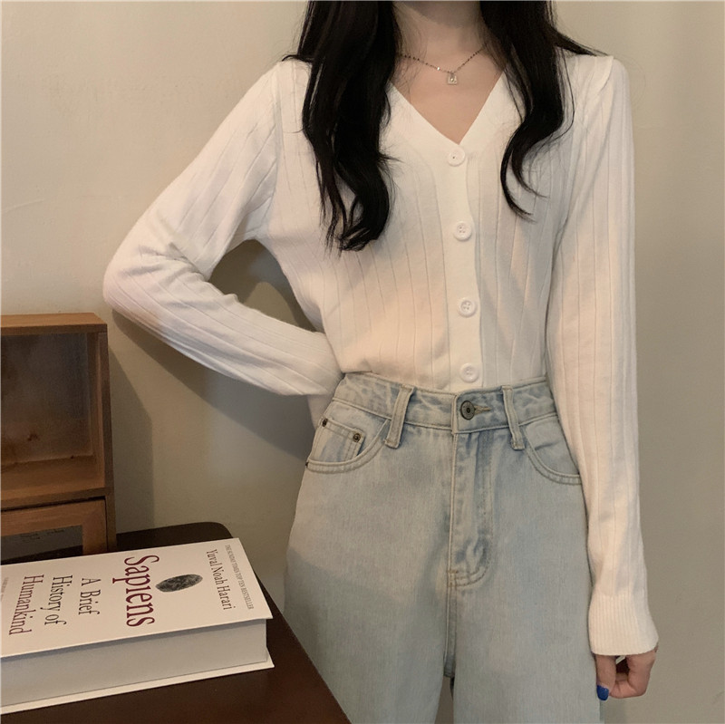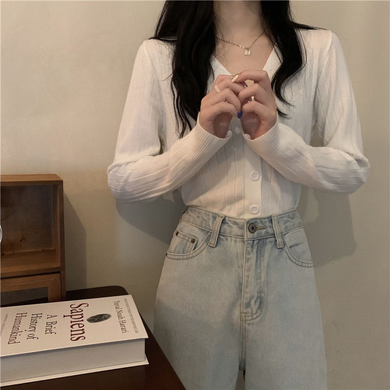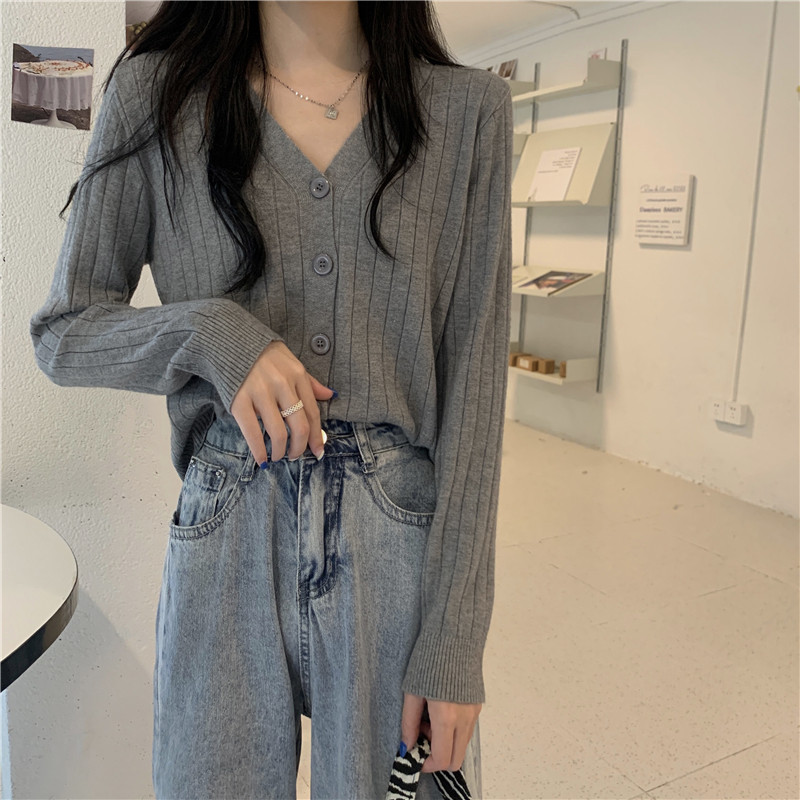 Трикотажный приятный телу весенний дизайнерский свитер, кардиган, 2026 года, V-образный вырез, тренд сезона