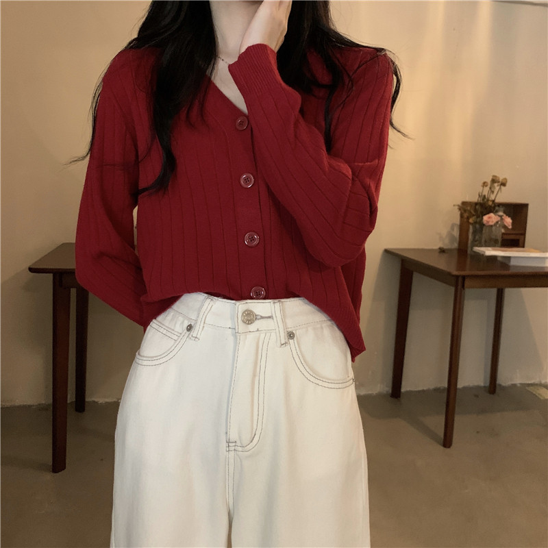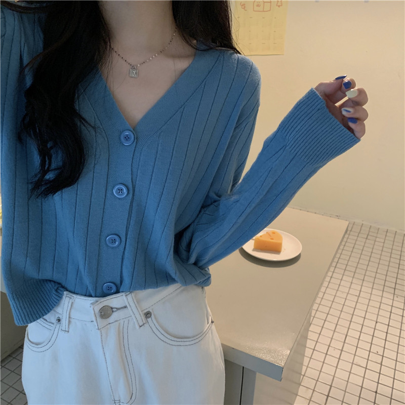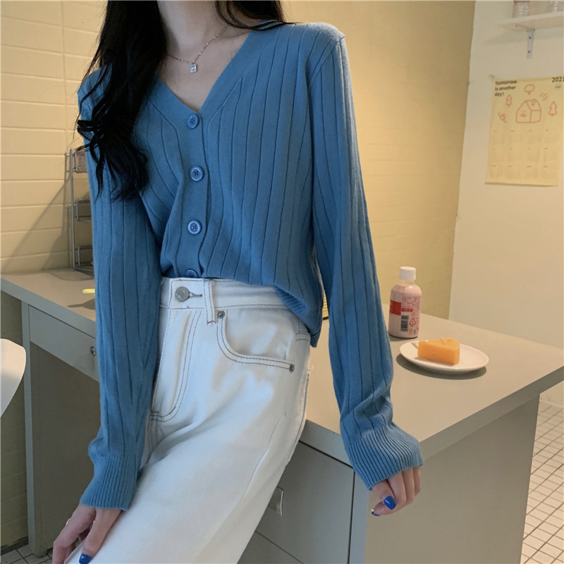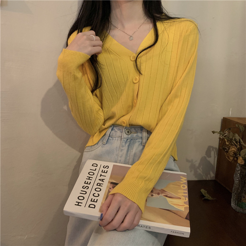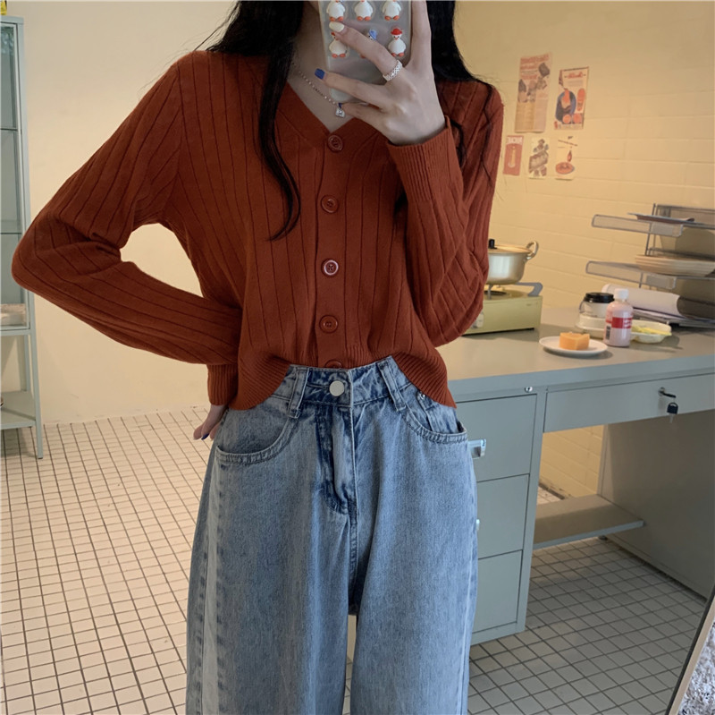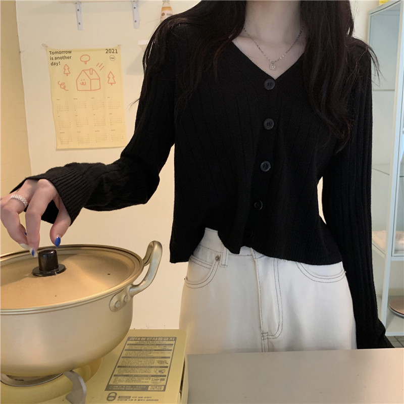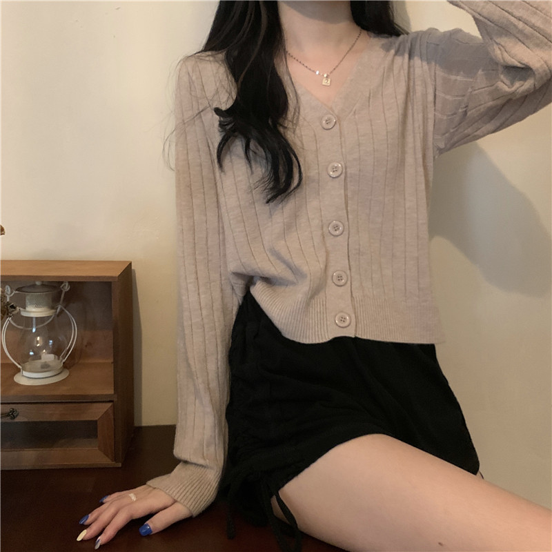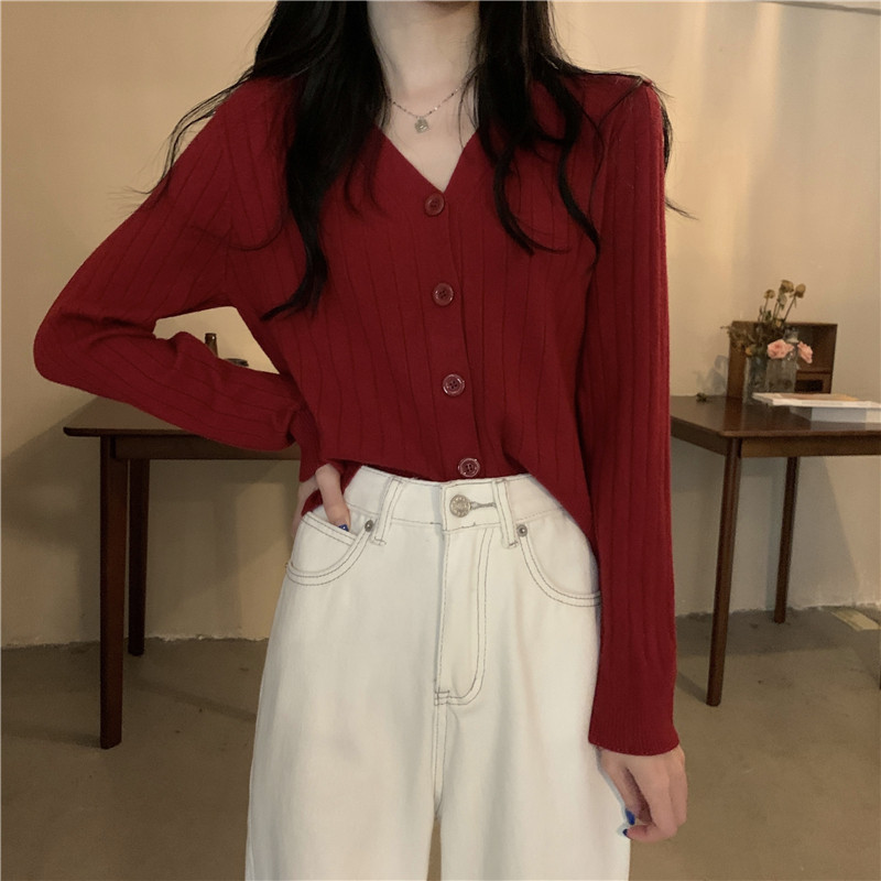 Трикотажный приятный телу весенний дизайнерский свитер, кардиган, 2026 года, V-образный вырез, тренд сезона