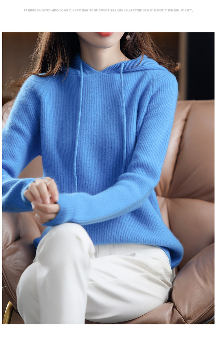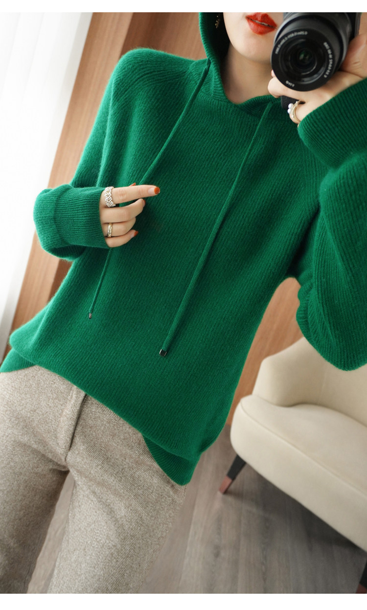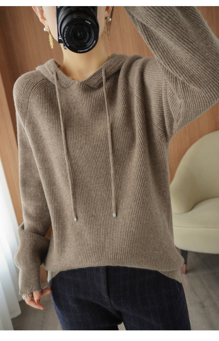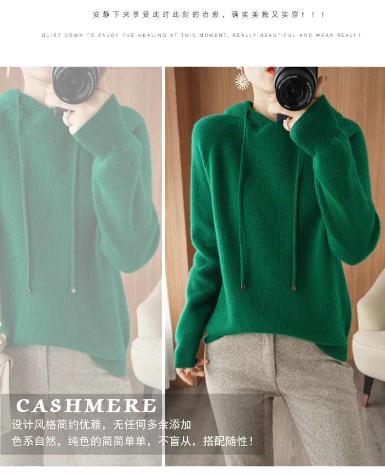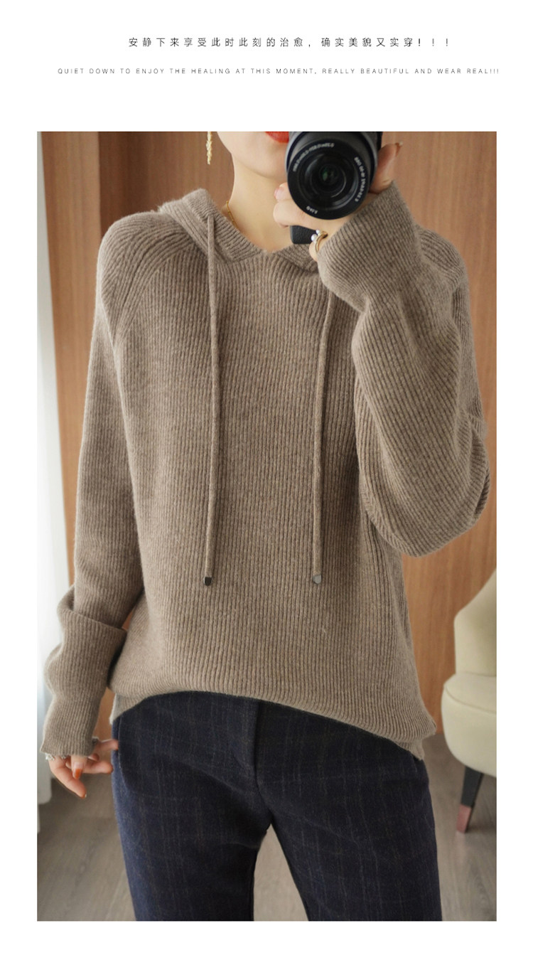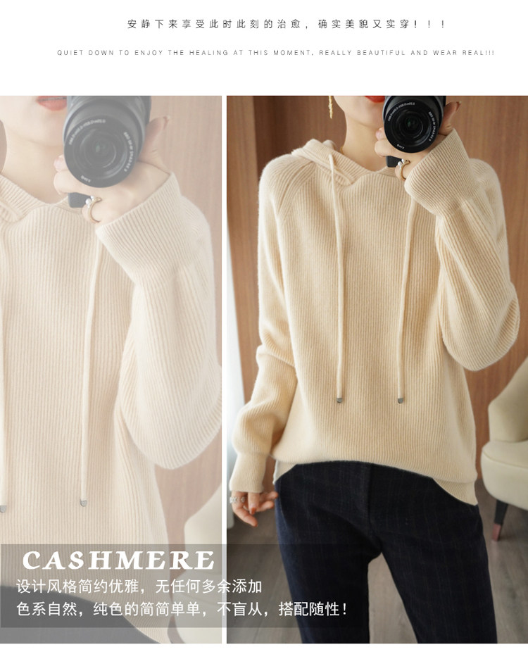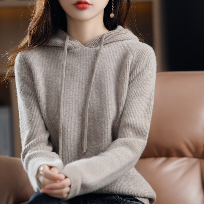 Осенне-зимний ленивый утолщенный кашемировый свитер женский однотонный с капюшоном в корейском стиле свободный вязаный нижний свитер из 100% чистой шерсти