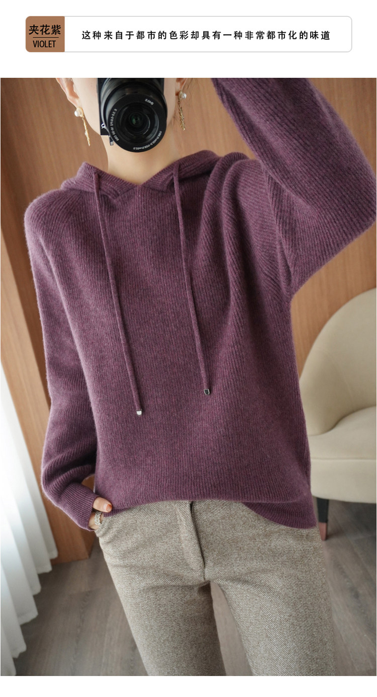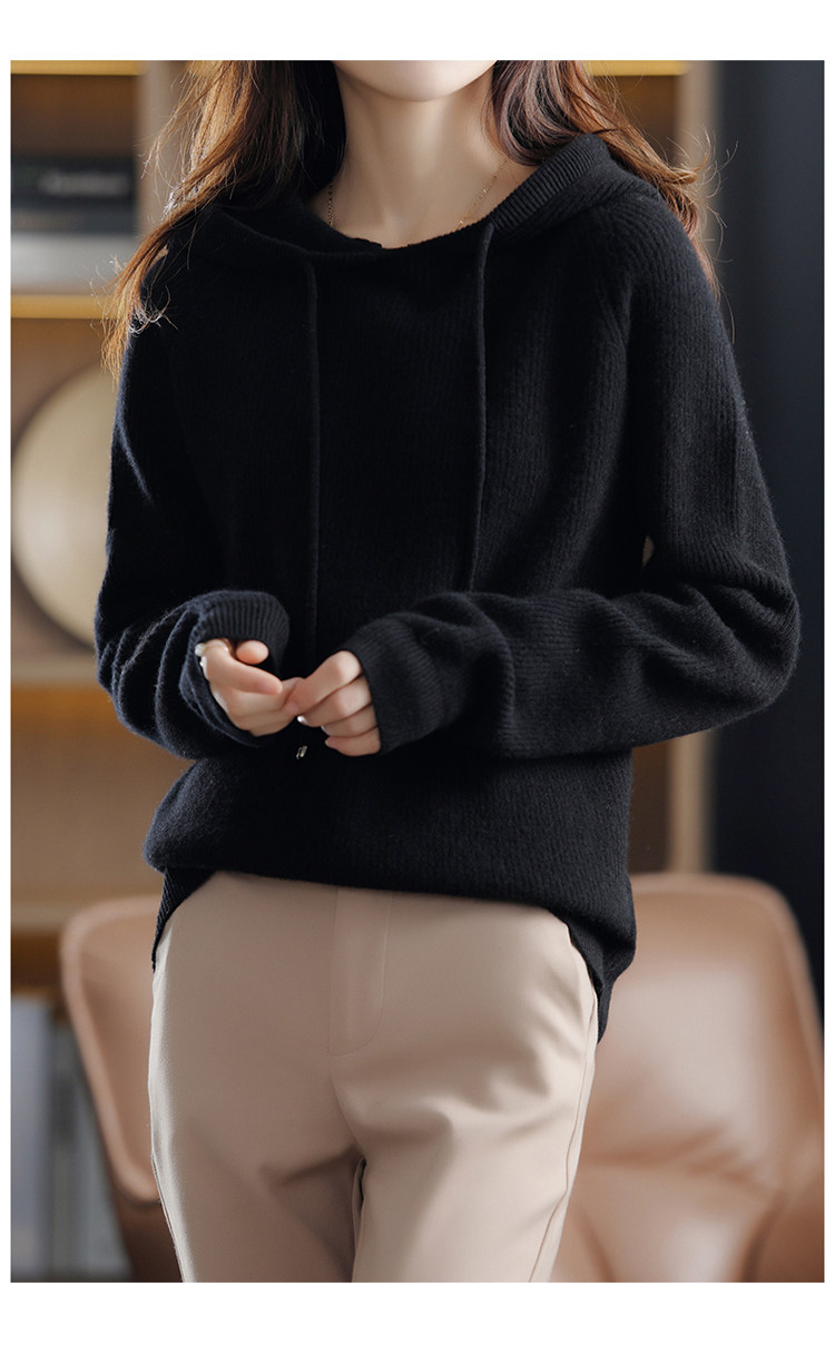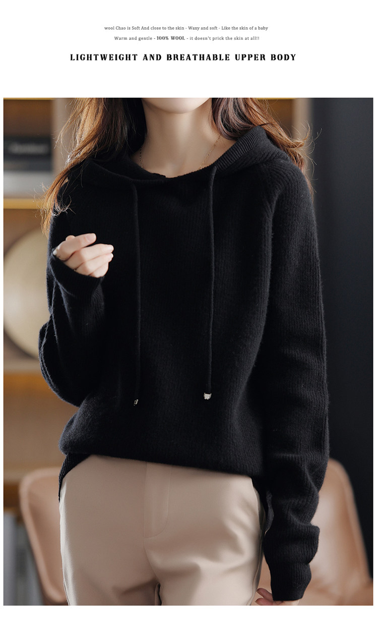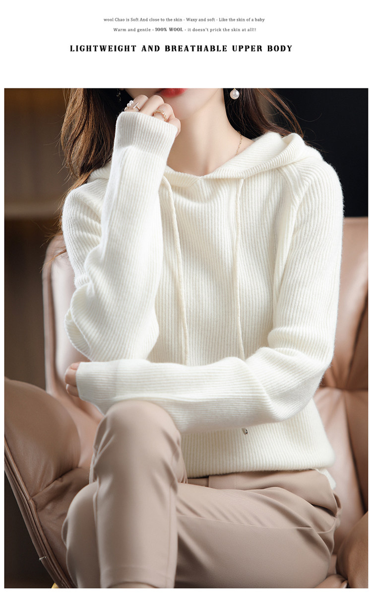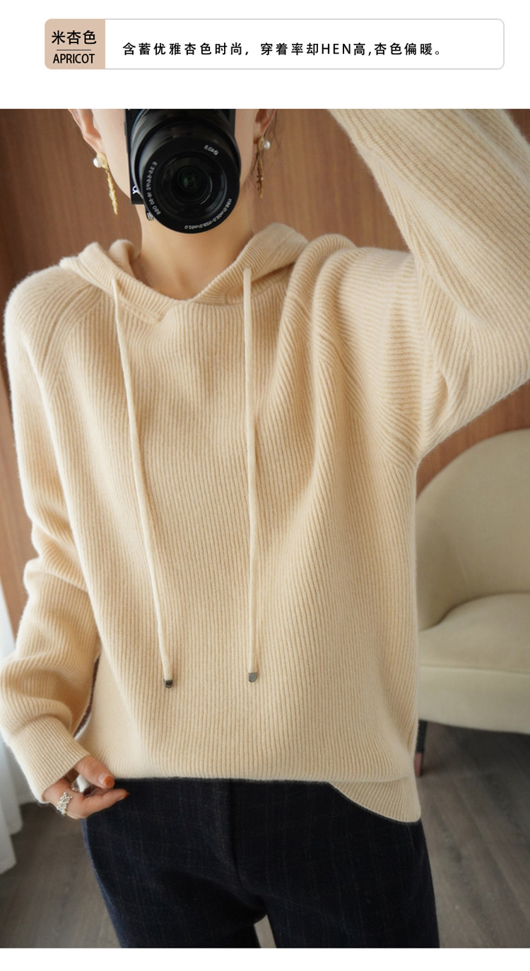 Осенне-зимний ленивый утолщенный кашемировый свитер женский однотонный с капюшоном в корейском стиле свободный вязаный нижний свитер из 100% чистой шерсти