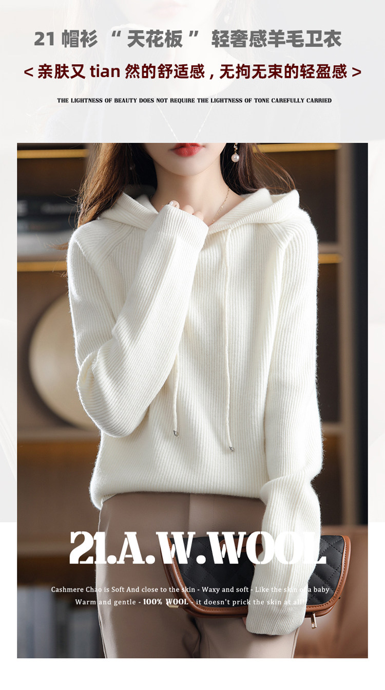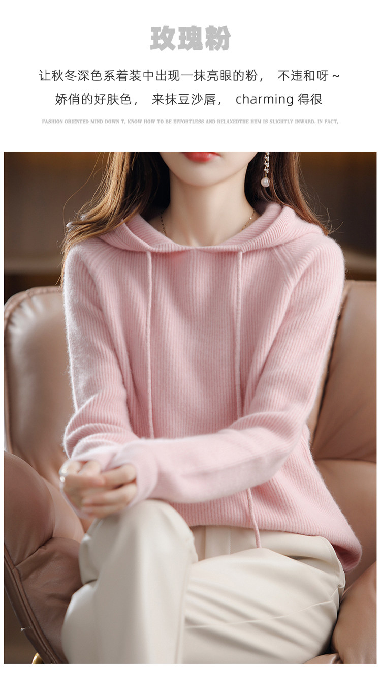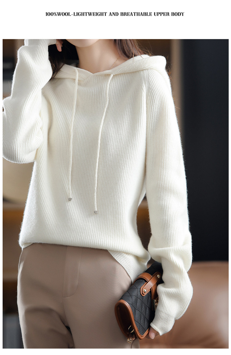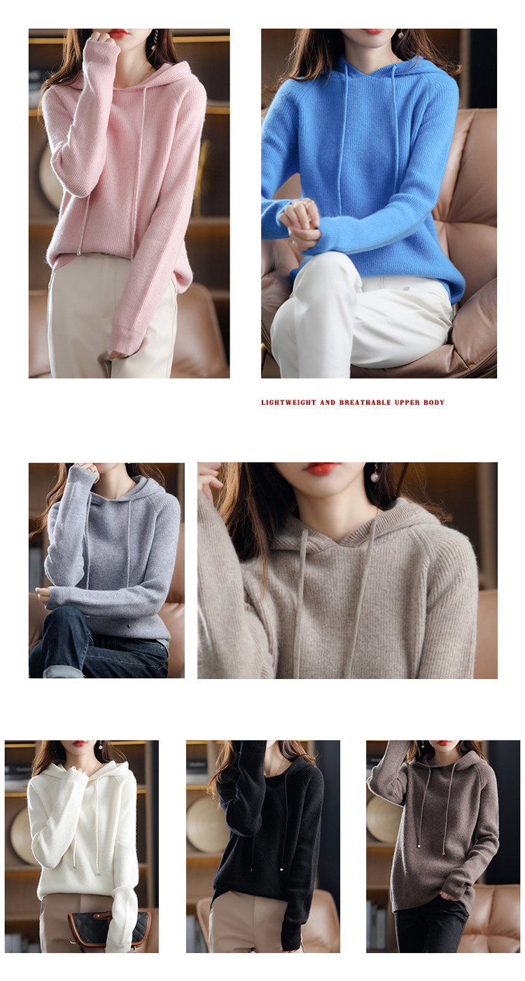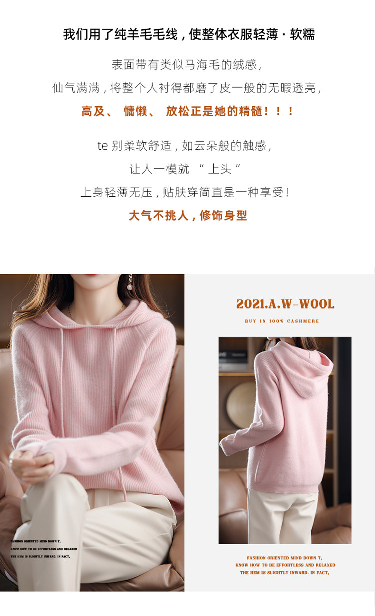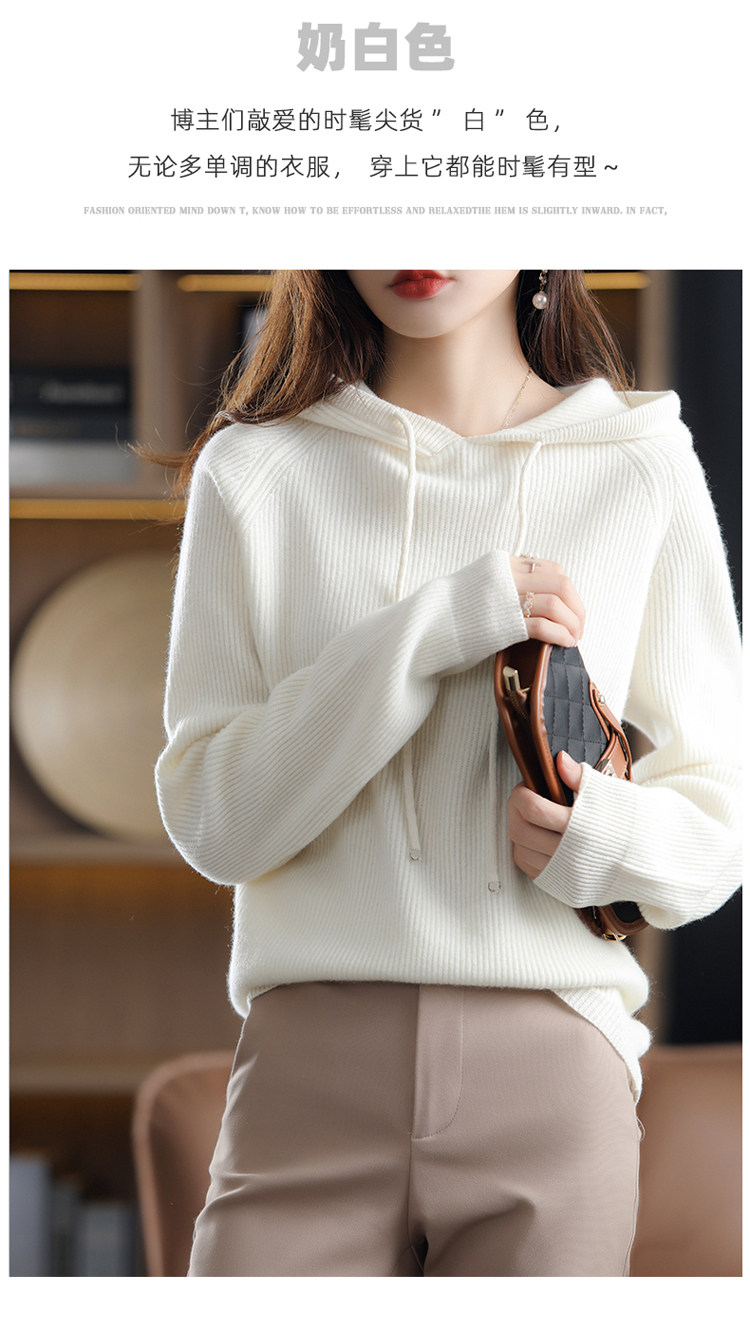Осенне-зимний ленивый утолщенный кашемировый свитер женский однотонный с капюшоном в корейском стиле свободный вязаный нижний свитер из 100% чистой шерсти