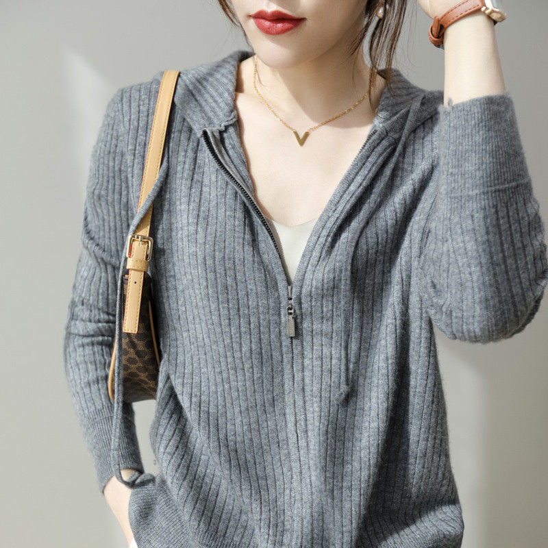 Толстовка с капюшоном, шерстяной кардиган, кашемировый трикотажный свитер с молнией