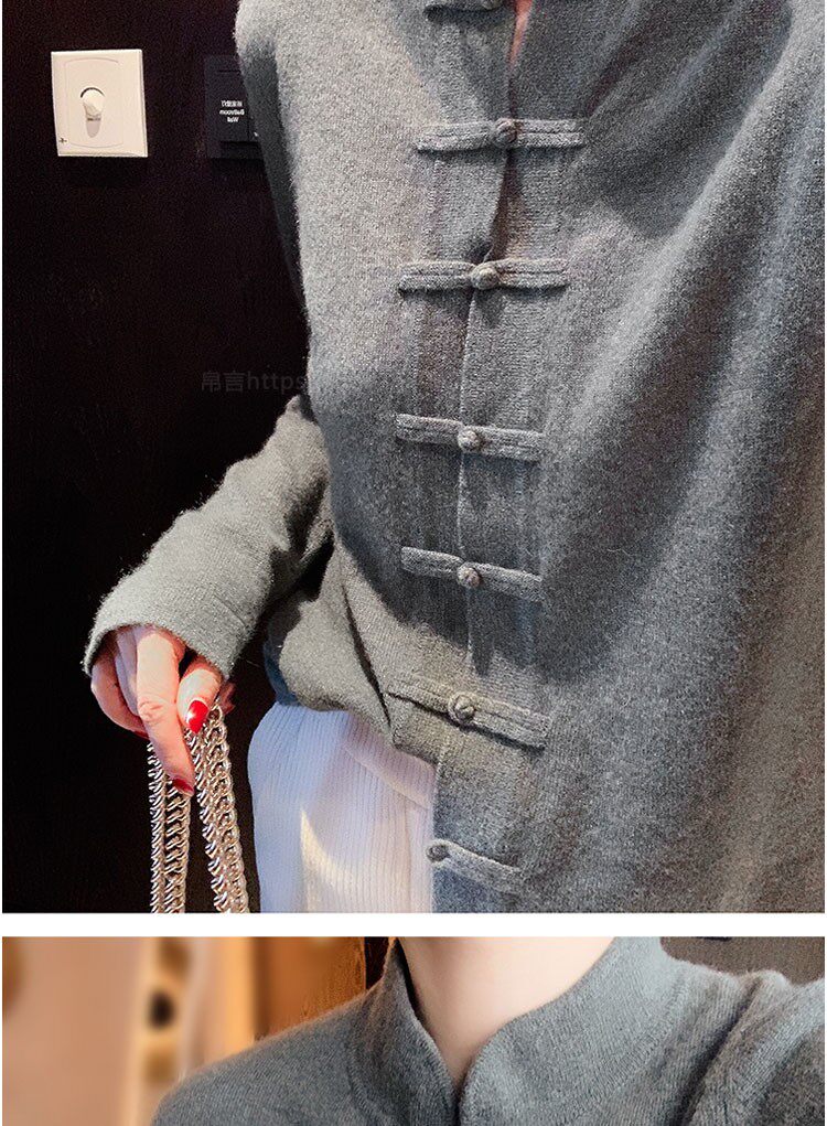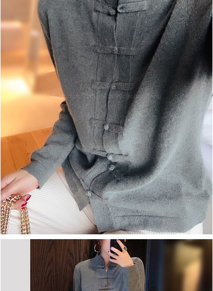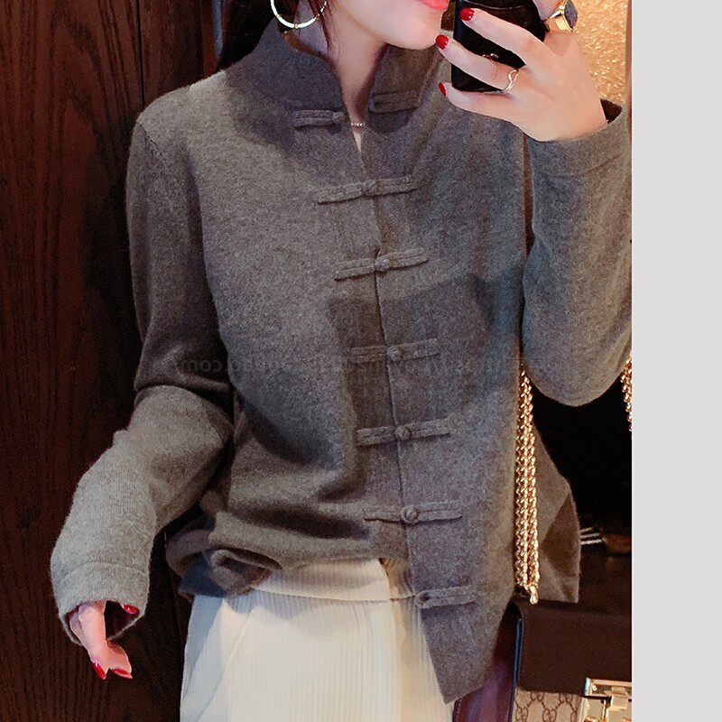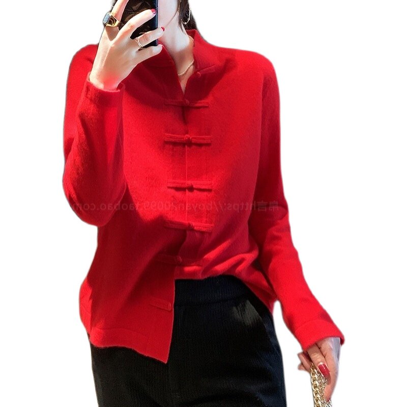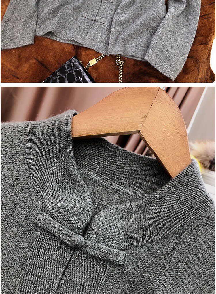 Демисезонный кашемировый ретро трикотажный кардиган, свитер, куртка, свободный крой, китайский стиль