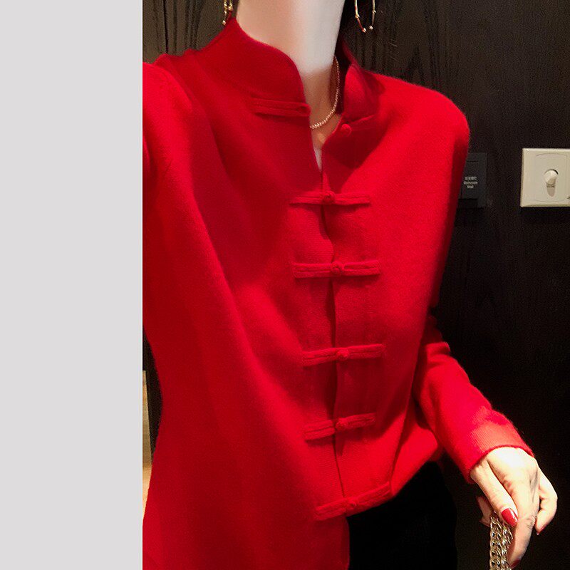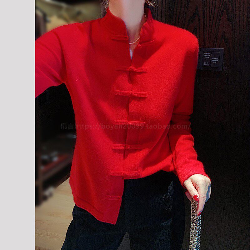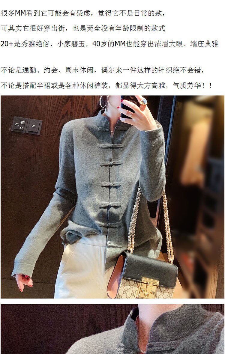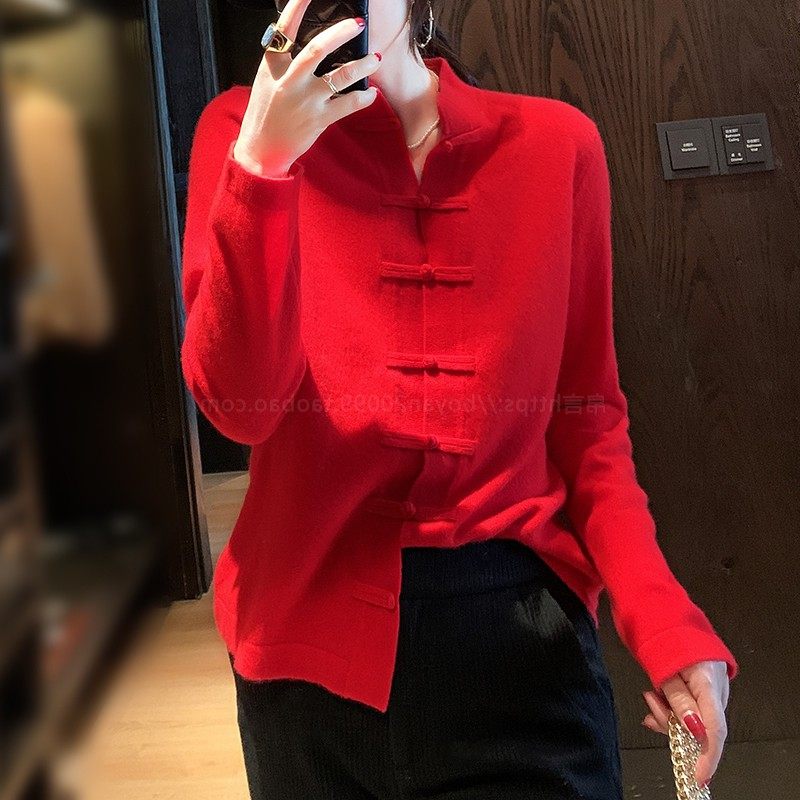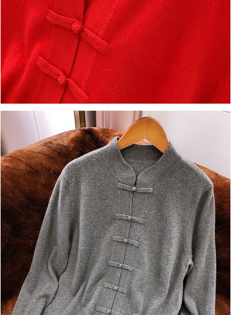 Демисезонный кашемировый ретро трикотажный кардиган, свитер, куртка, свободный крой, китайский стиль