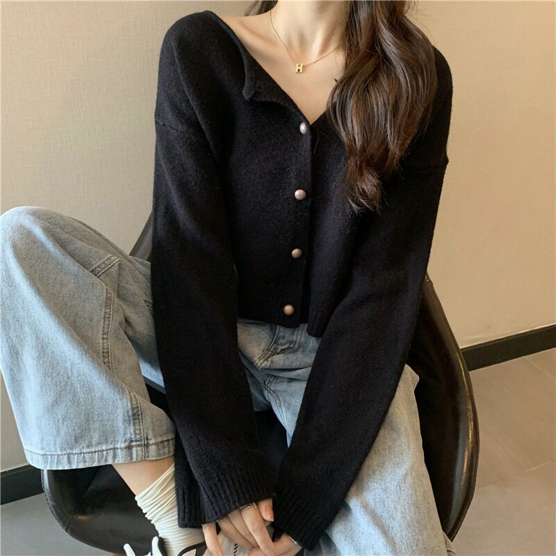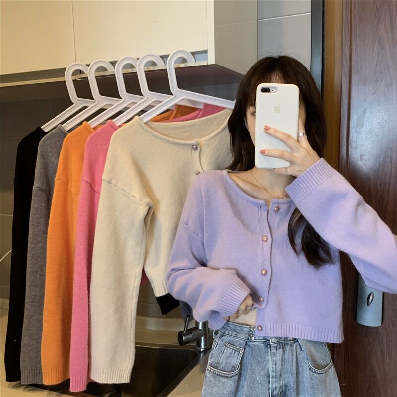 Абрикосовый осенний свитер, куртка, короткий дизайнерский кардиган, коллекция 2023, подходит для подростков, тренд сезона