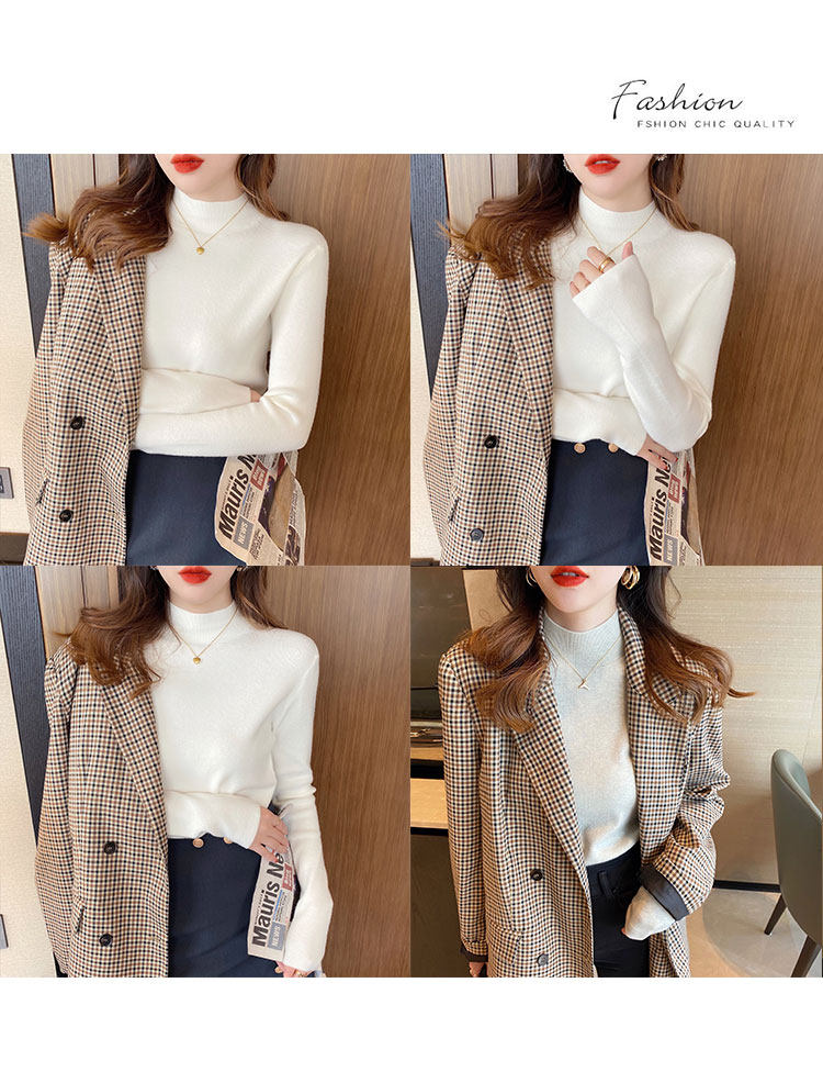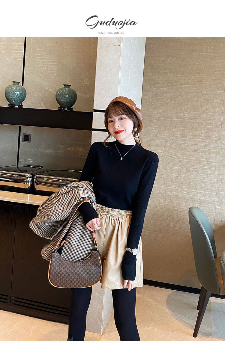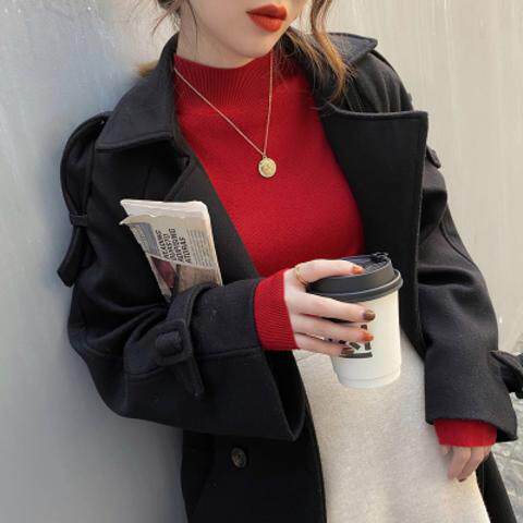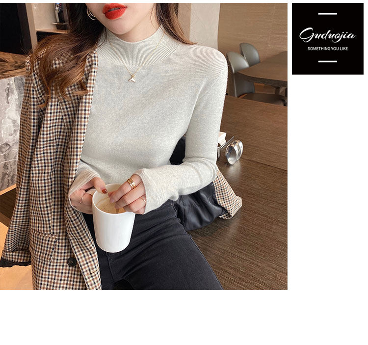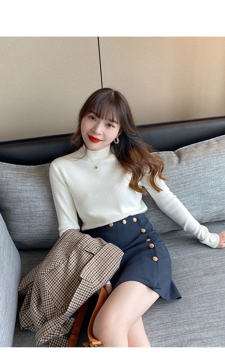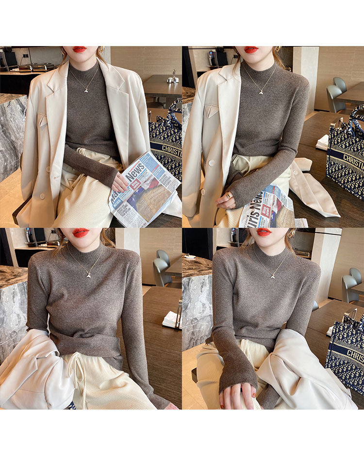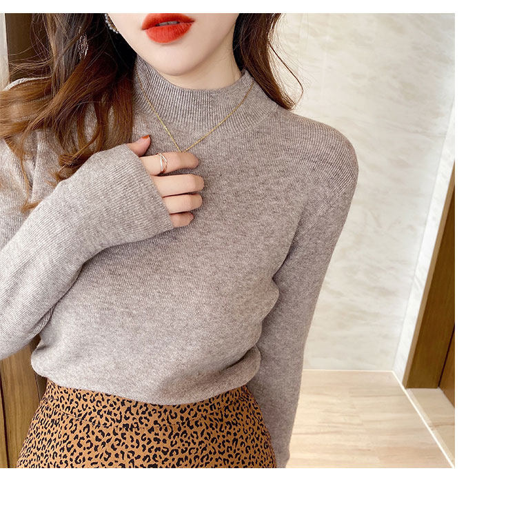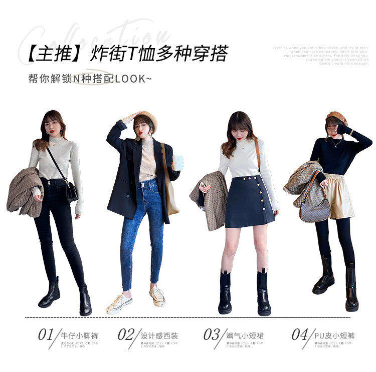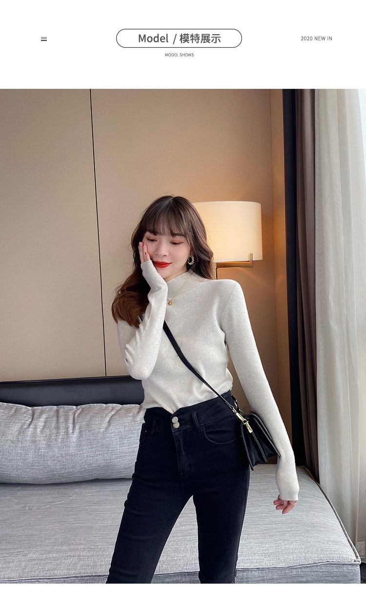 Трикотажный приятный телу осенний демисезонный модный свитер, приталенный лонгслив, в западном стиле, высокий воротник
