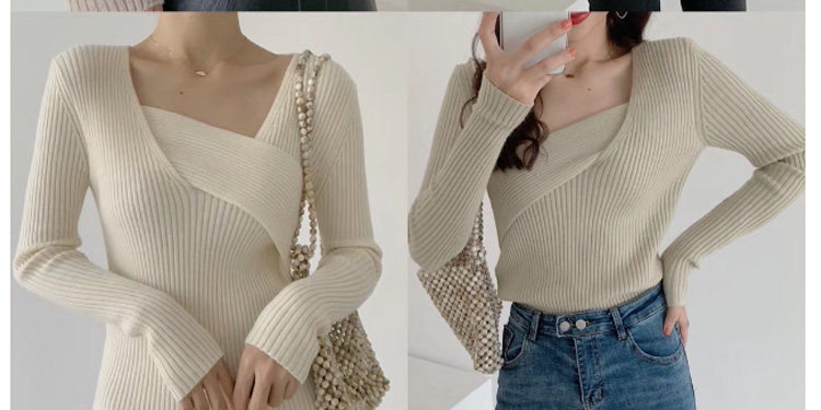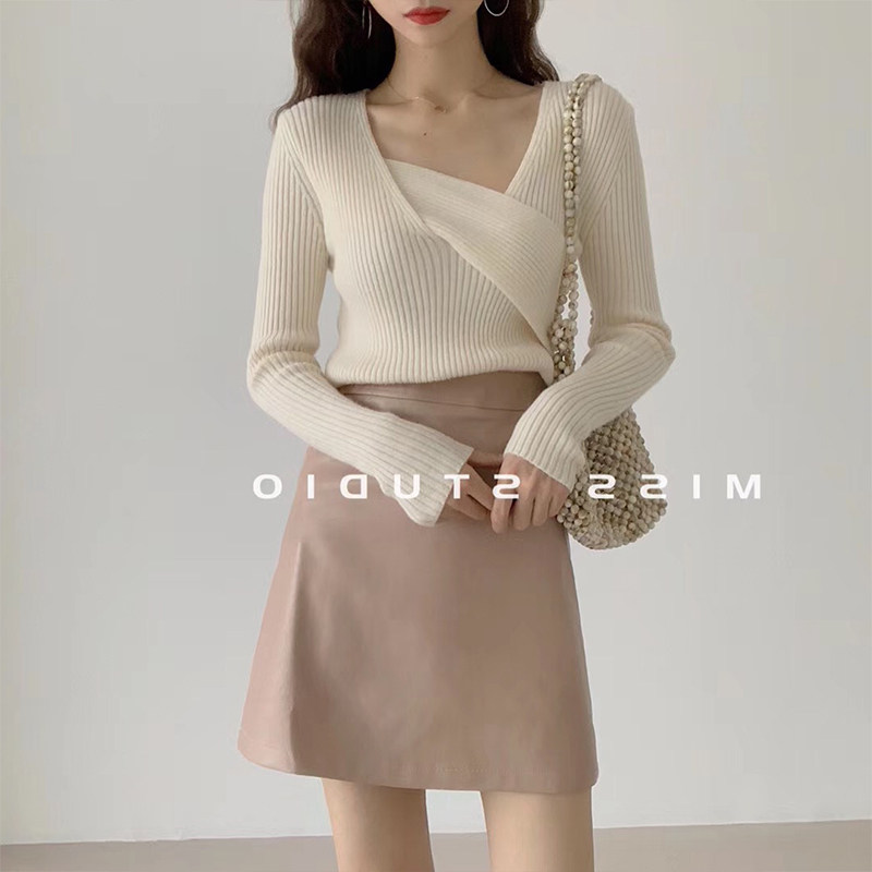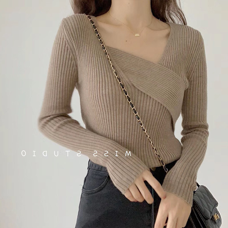 Базовый приятный телу демисезонный трикотажный осенний свитер, изысканный стиль, в западном стиле, французский стиль