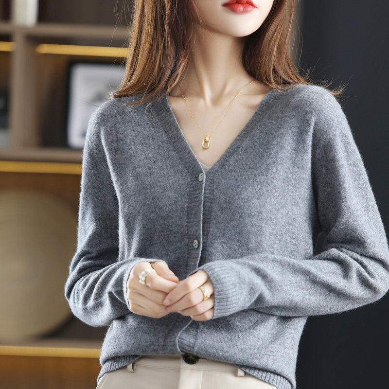 Шерстяной трикотажный кардиган, куртка, лонгслив, красный кашемировый базовый свитер, свободный крой