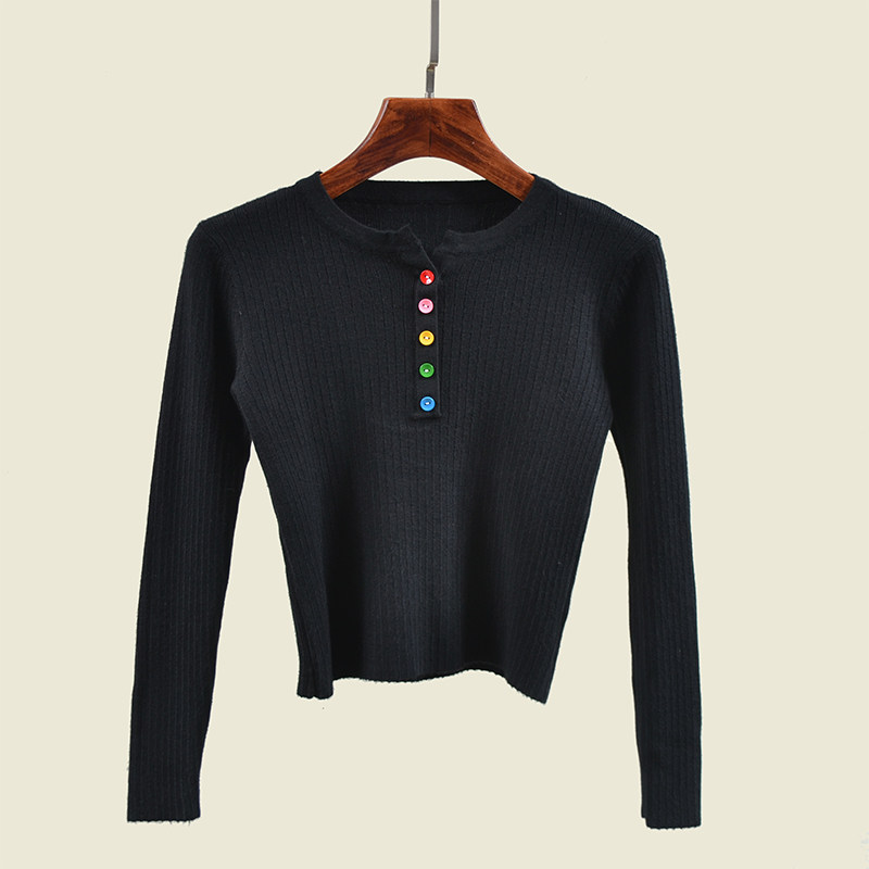 Короткий лонгслив, весенний цветной свитер с круглым воротником, тренд сезона, облегающий крой