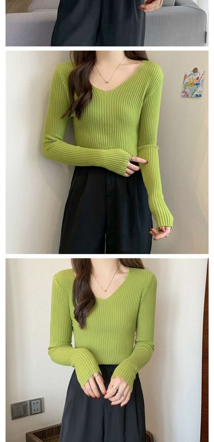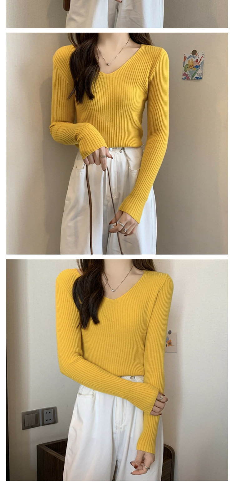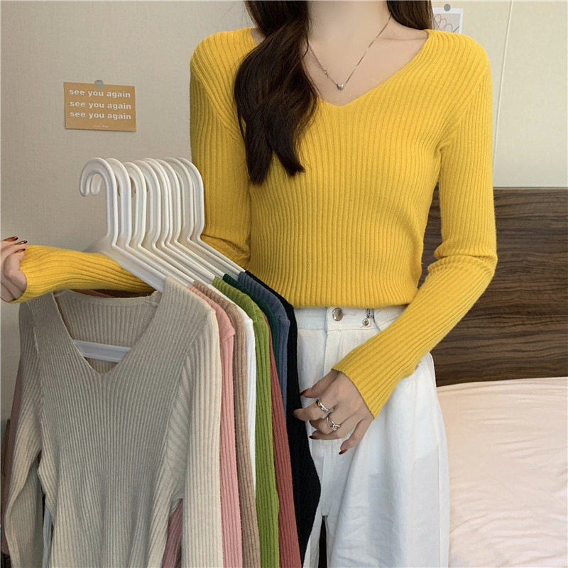 Демисезонный приталенный трикотажный лонгслив, короткий базовый приятный телу свитер, в обтяжку, V-образный вырез, в западном стиле