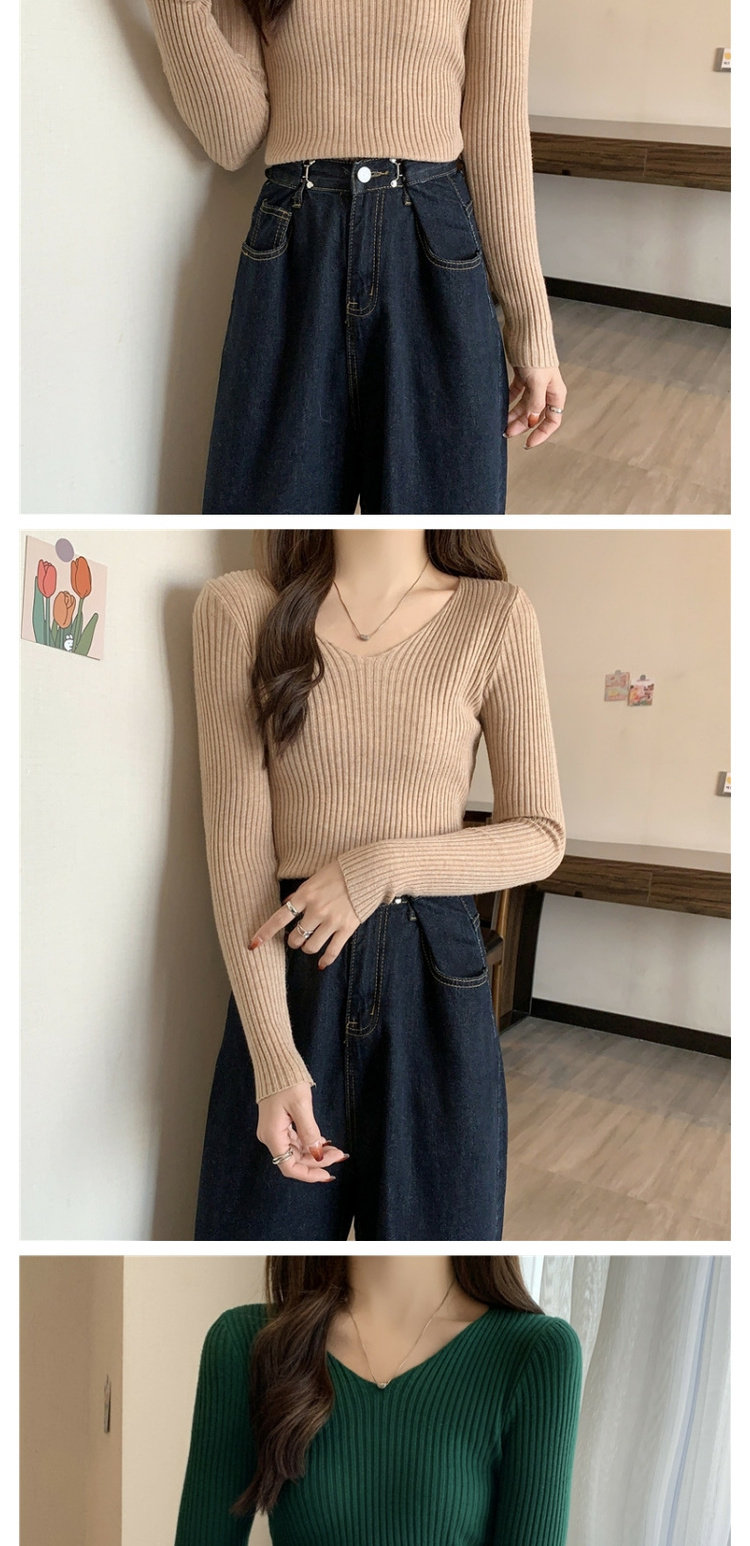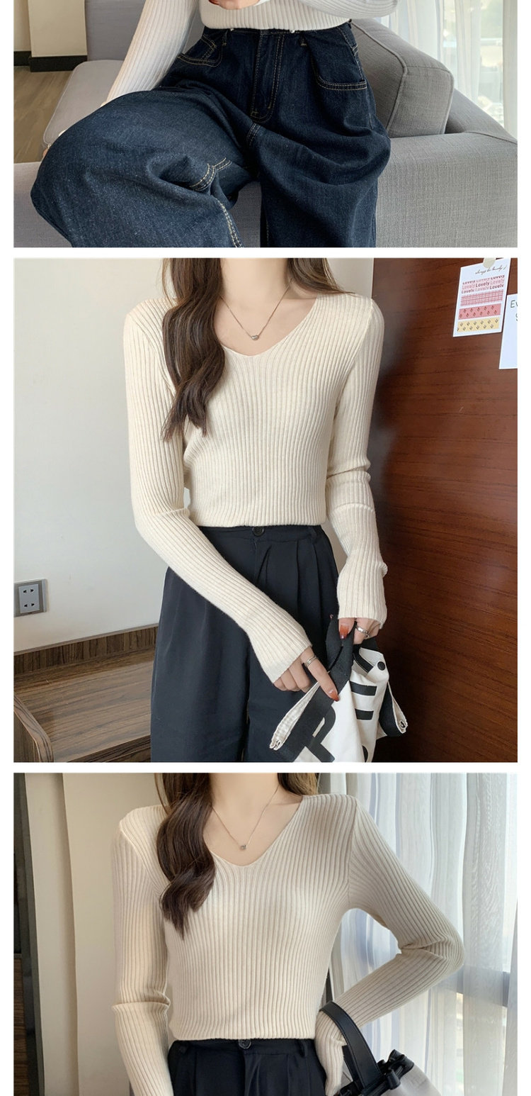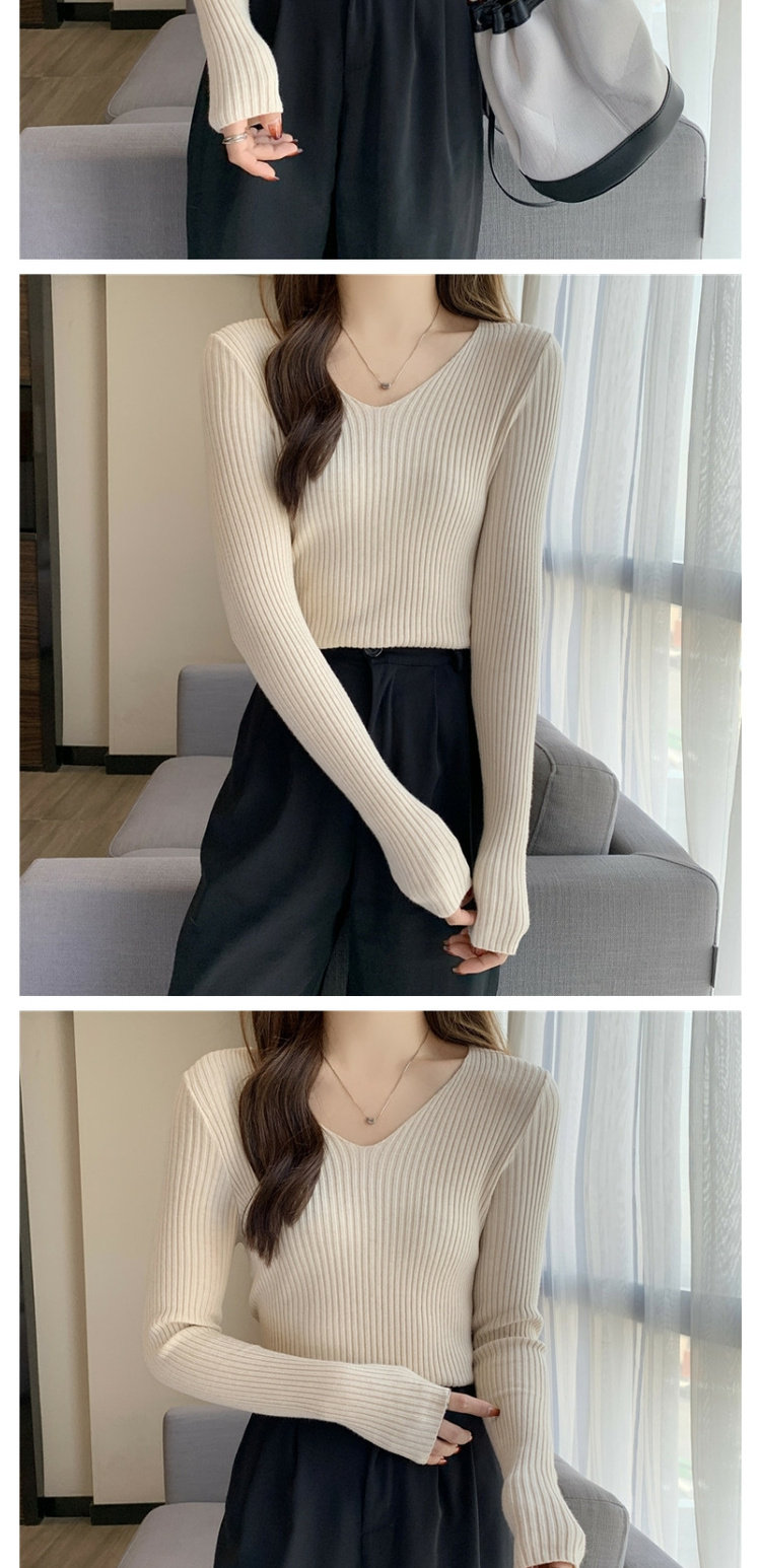 Демисезонный приталенный трикотажный лонгслив, короткий базовый приятный телу свитер, в обтяжку, V-образный вырез, в западном стиле