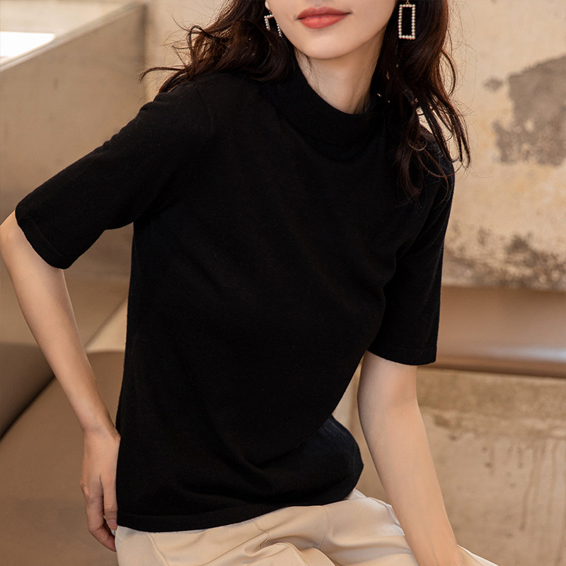 Летний трикотажный короткий шерстяной свитер, короткий рукав, 2022, оверсайз